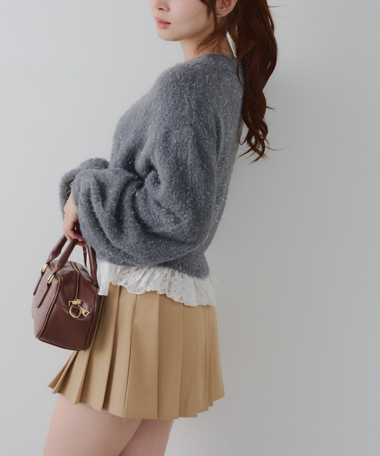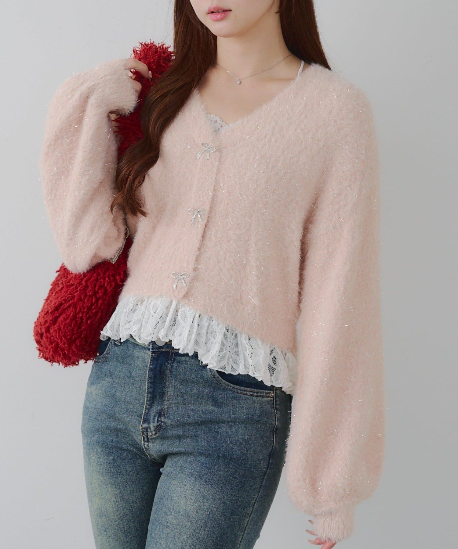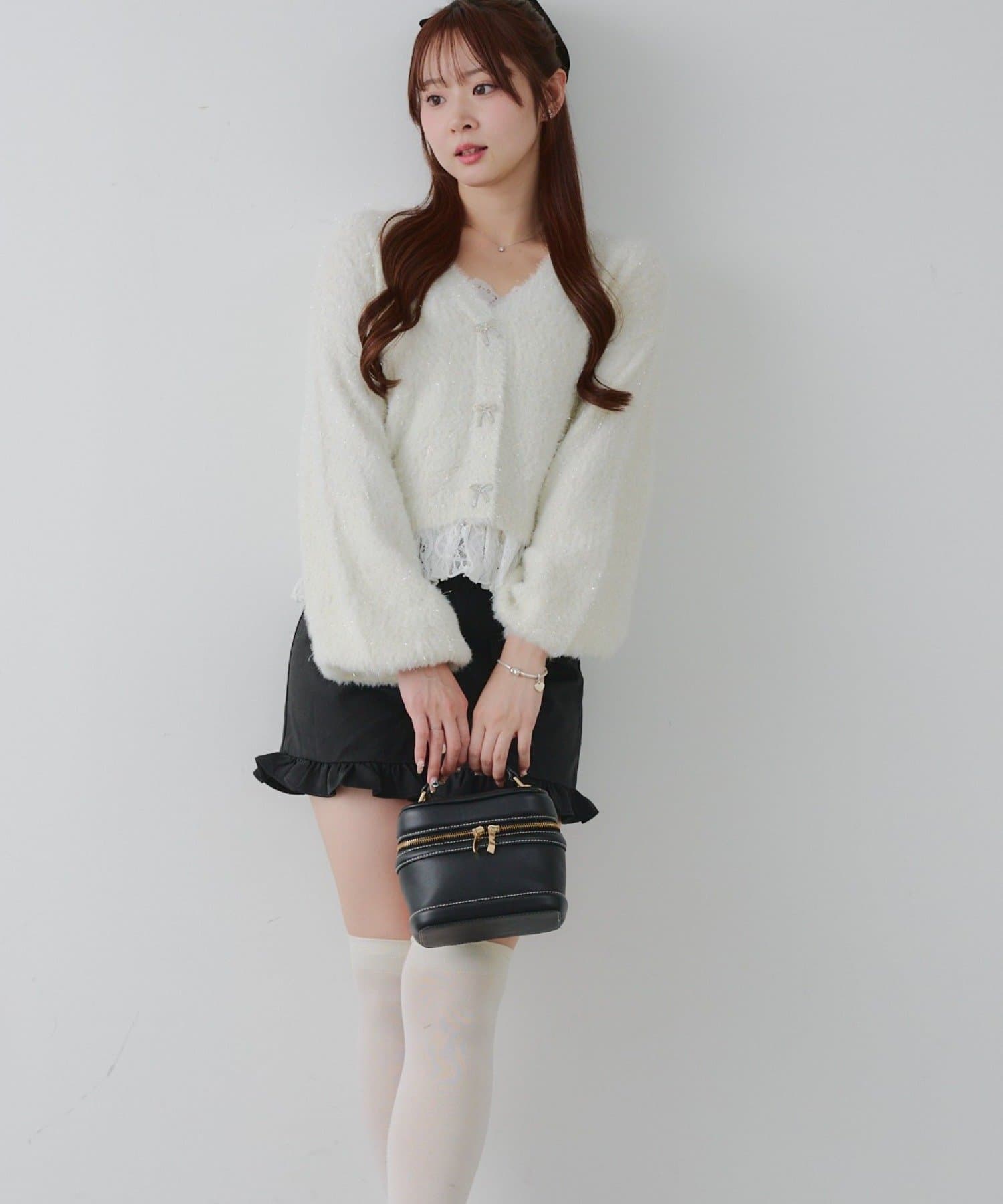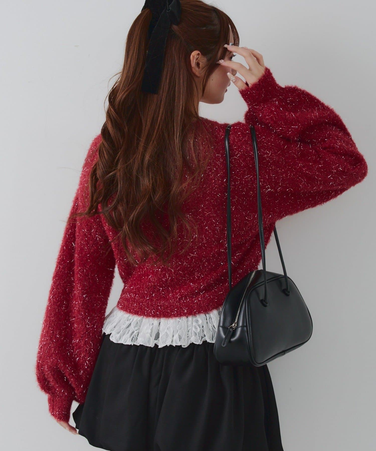 ラメフェザーヤーン裾レース付カーディガン