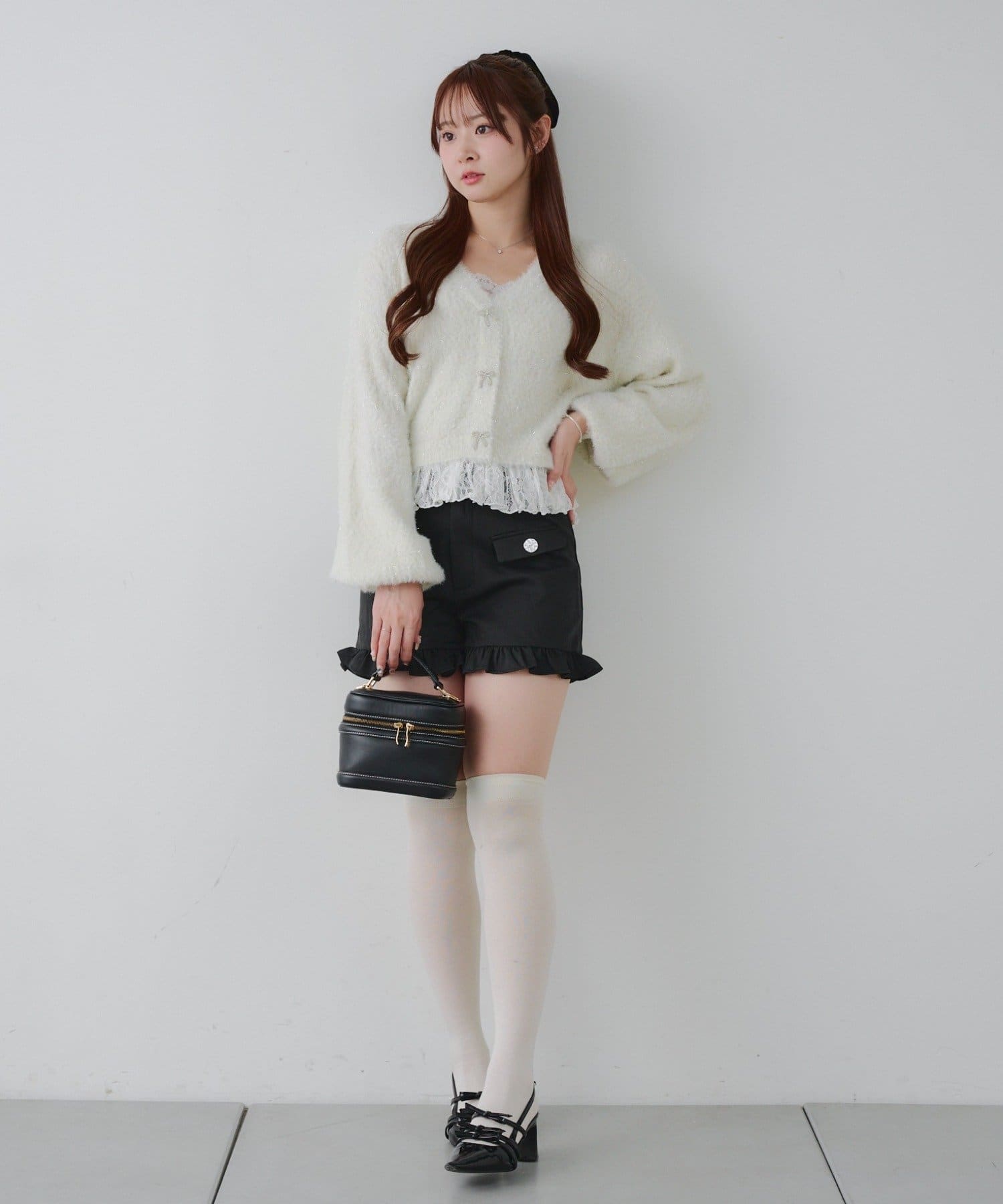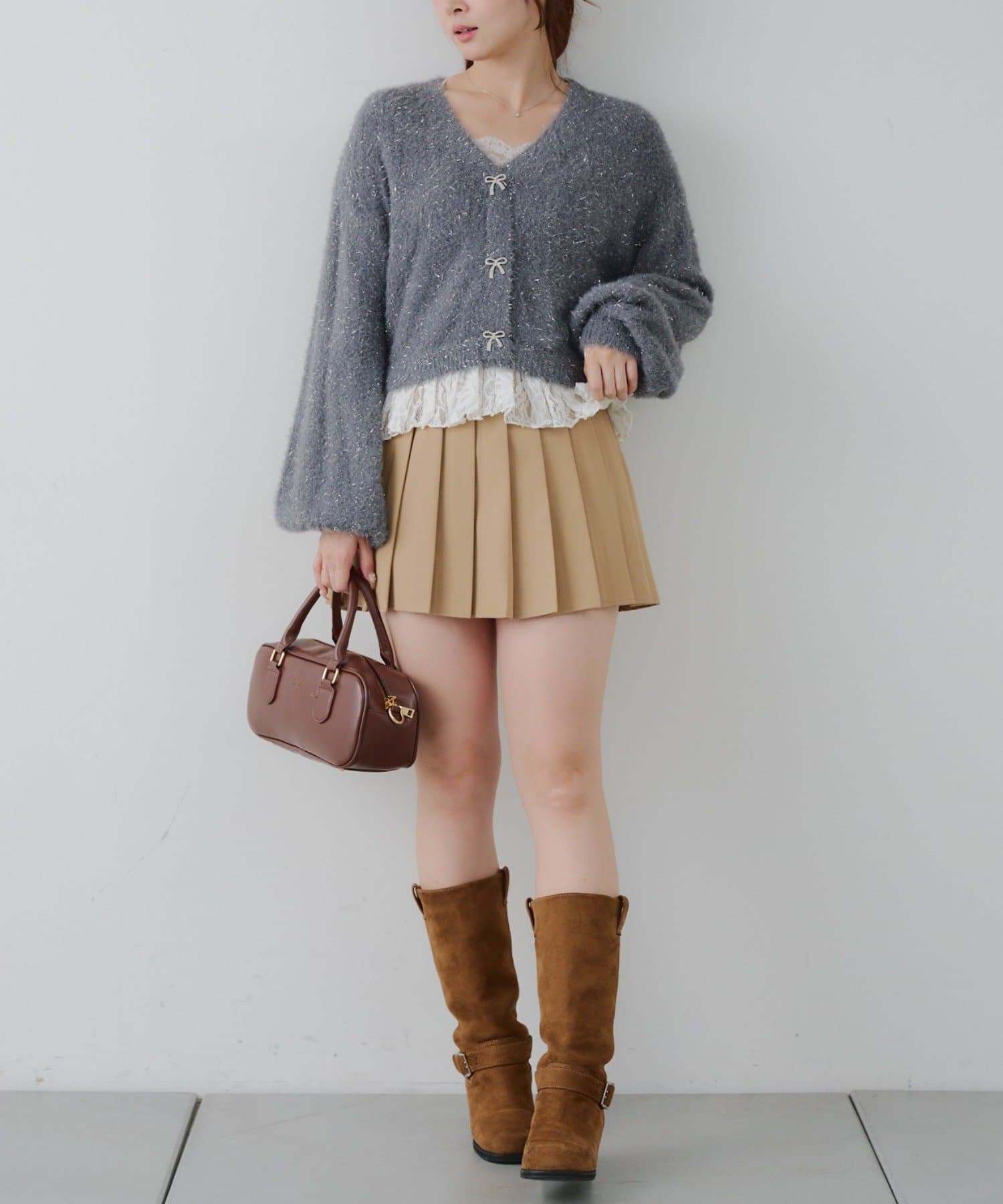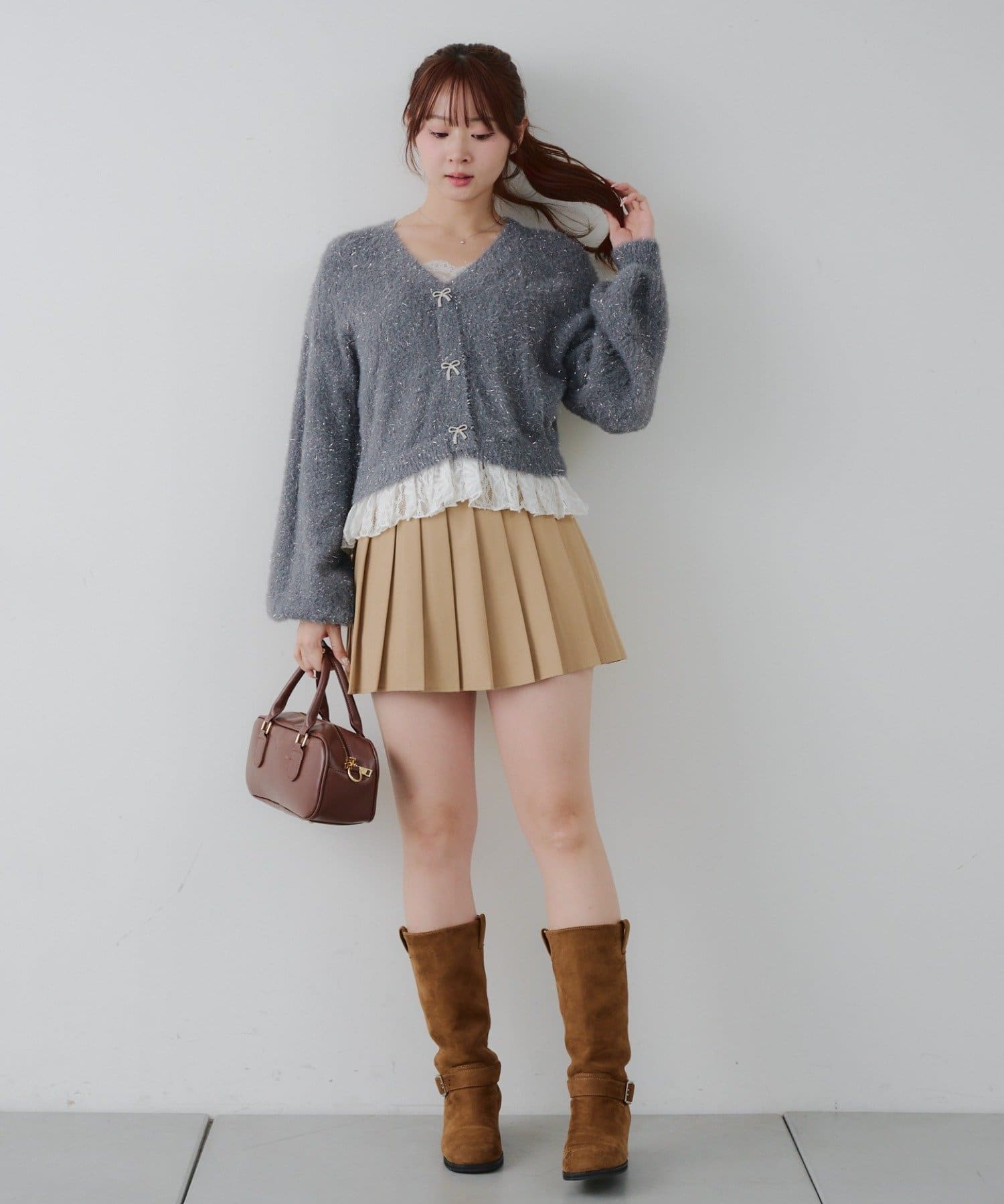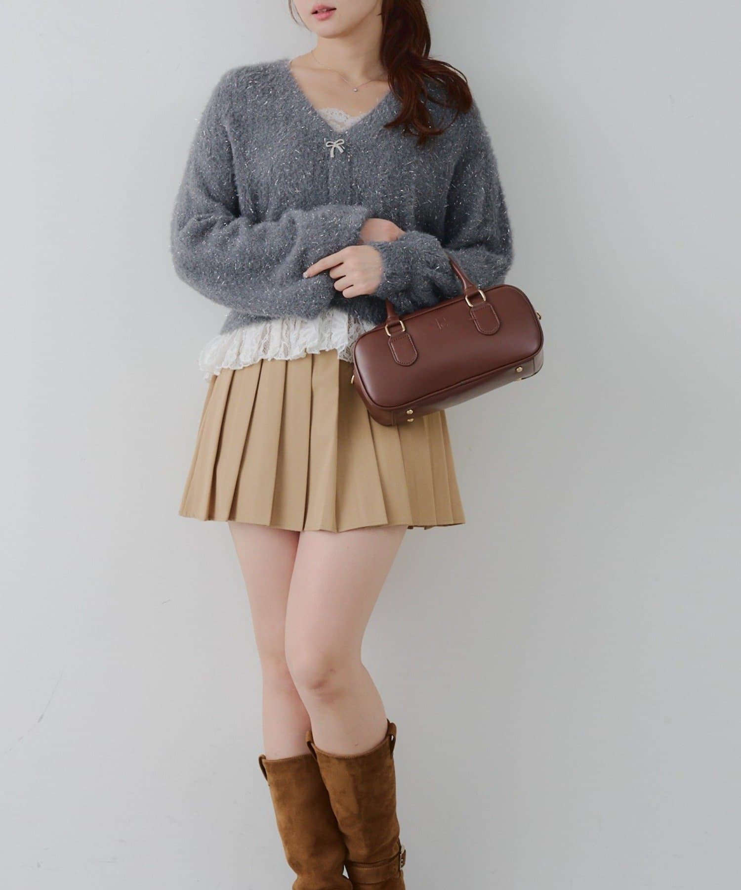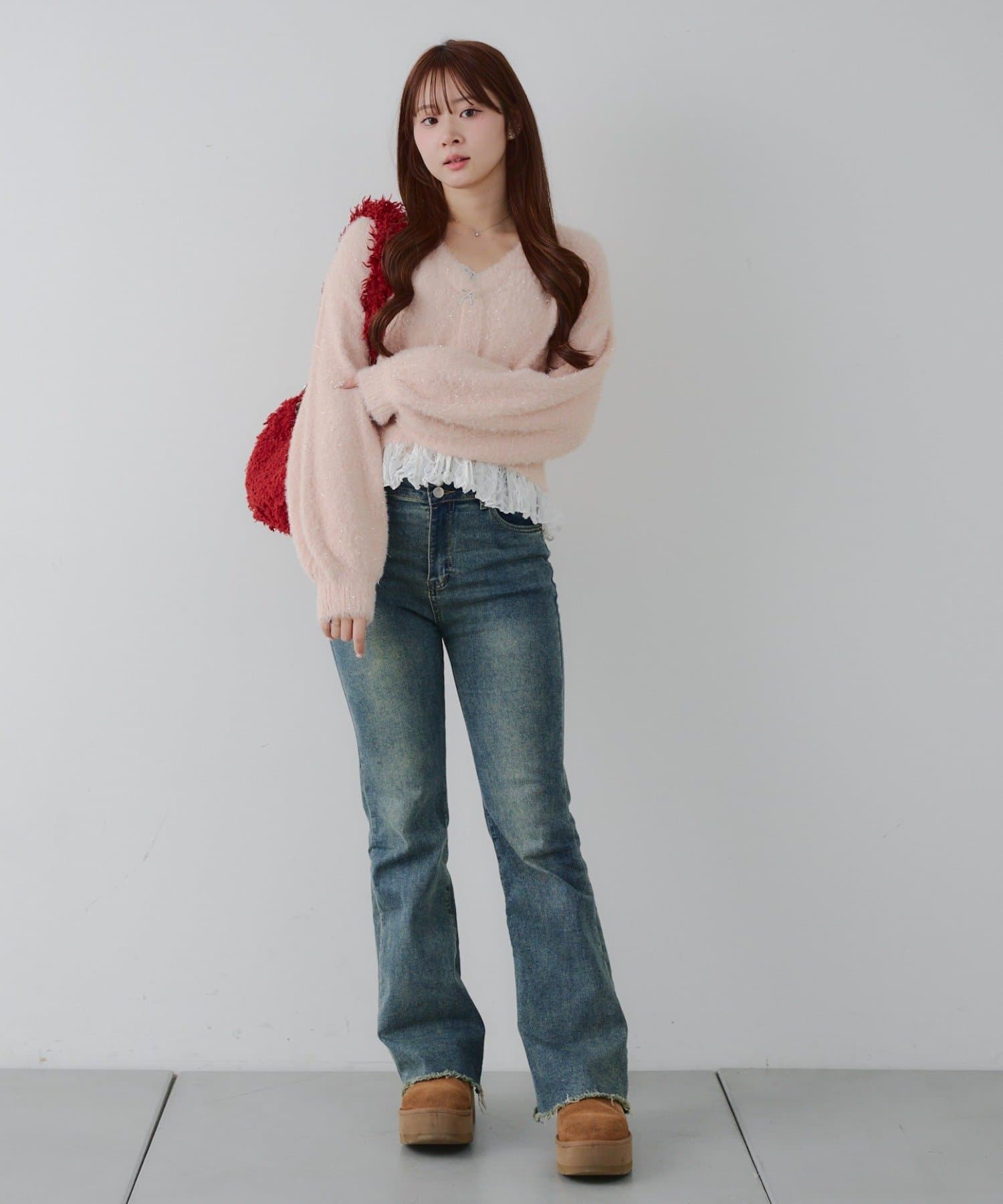 ラメフェザーヤーン裾レース付カーディガン