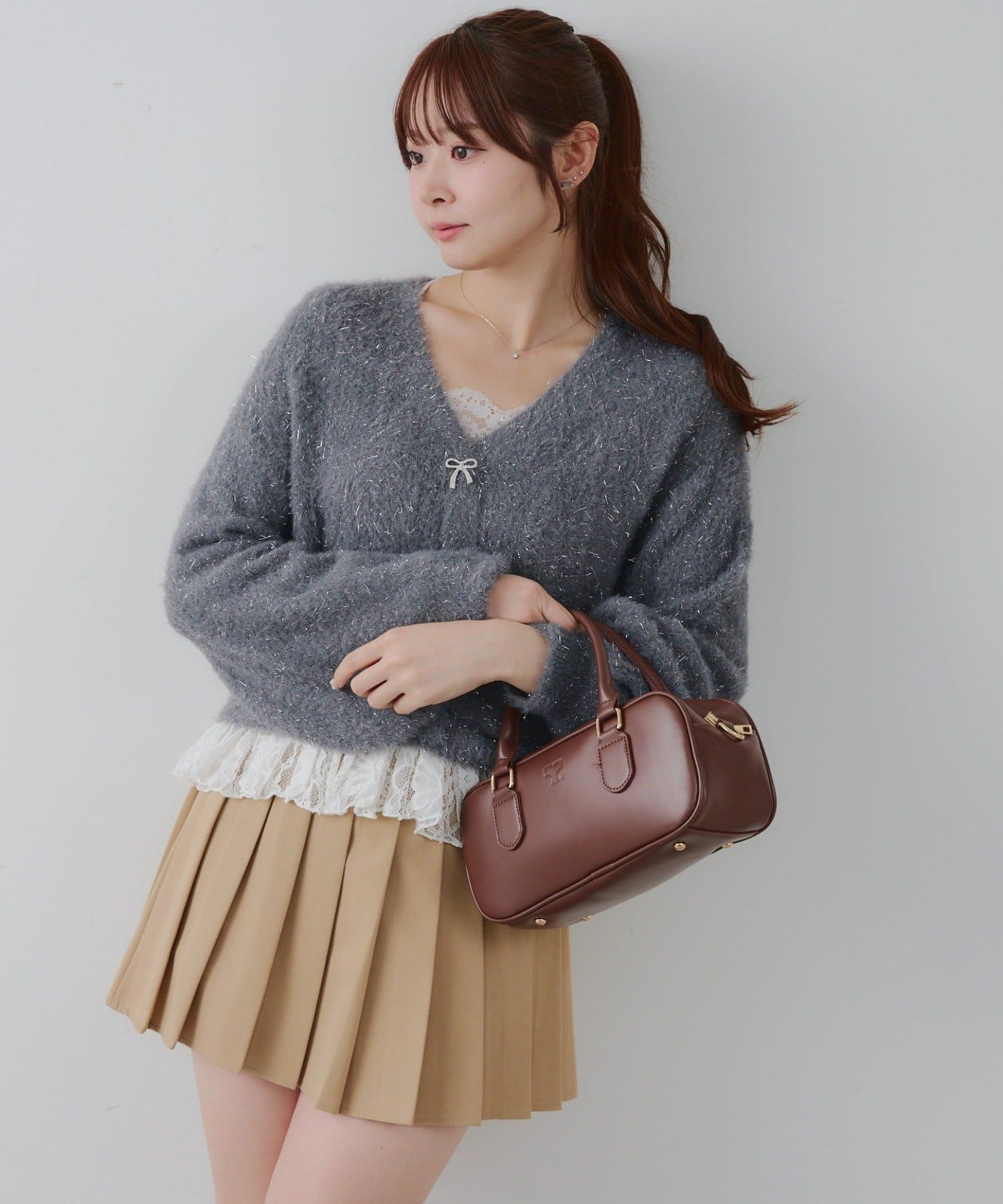 ・ラメフェザーヤーンできらっとした表面感がポイント