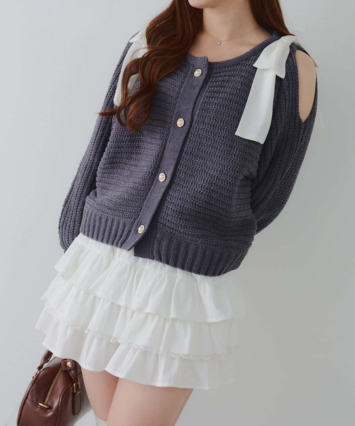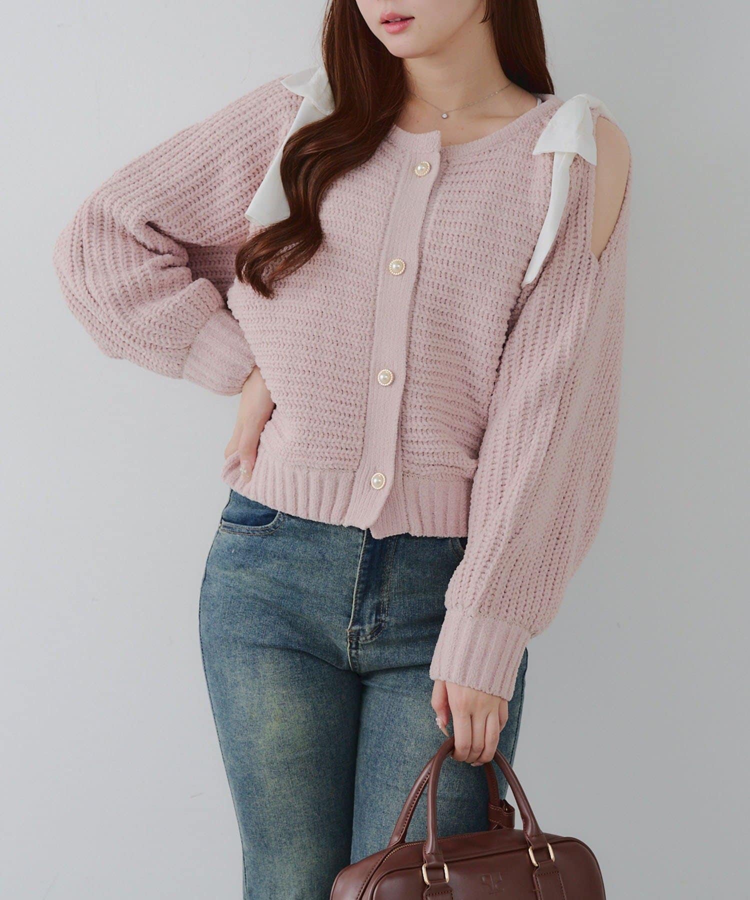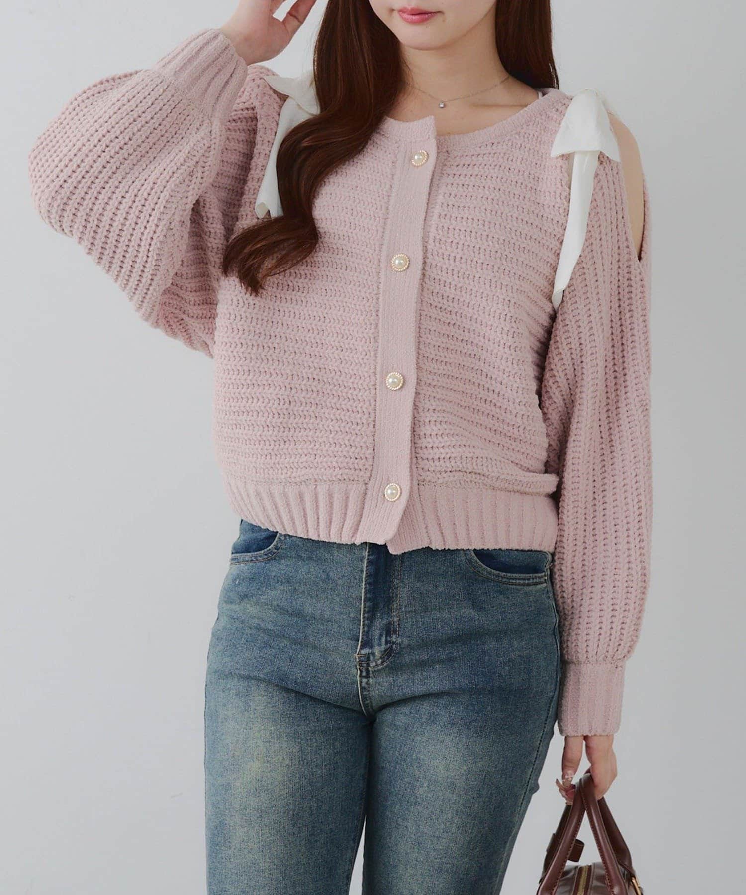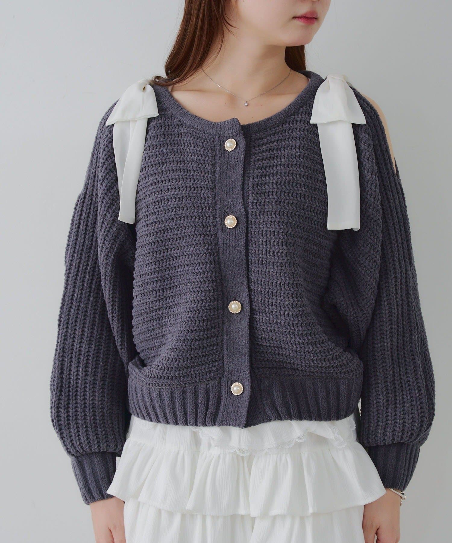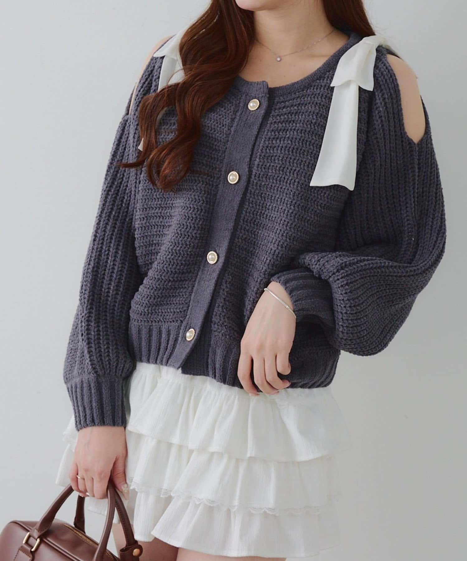 ・肩開きデザインで抜け感を演出できるニットカーディガン