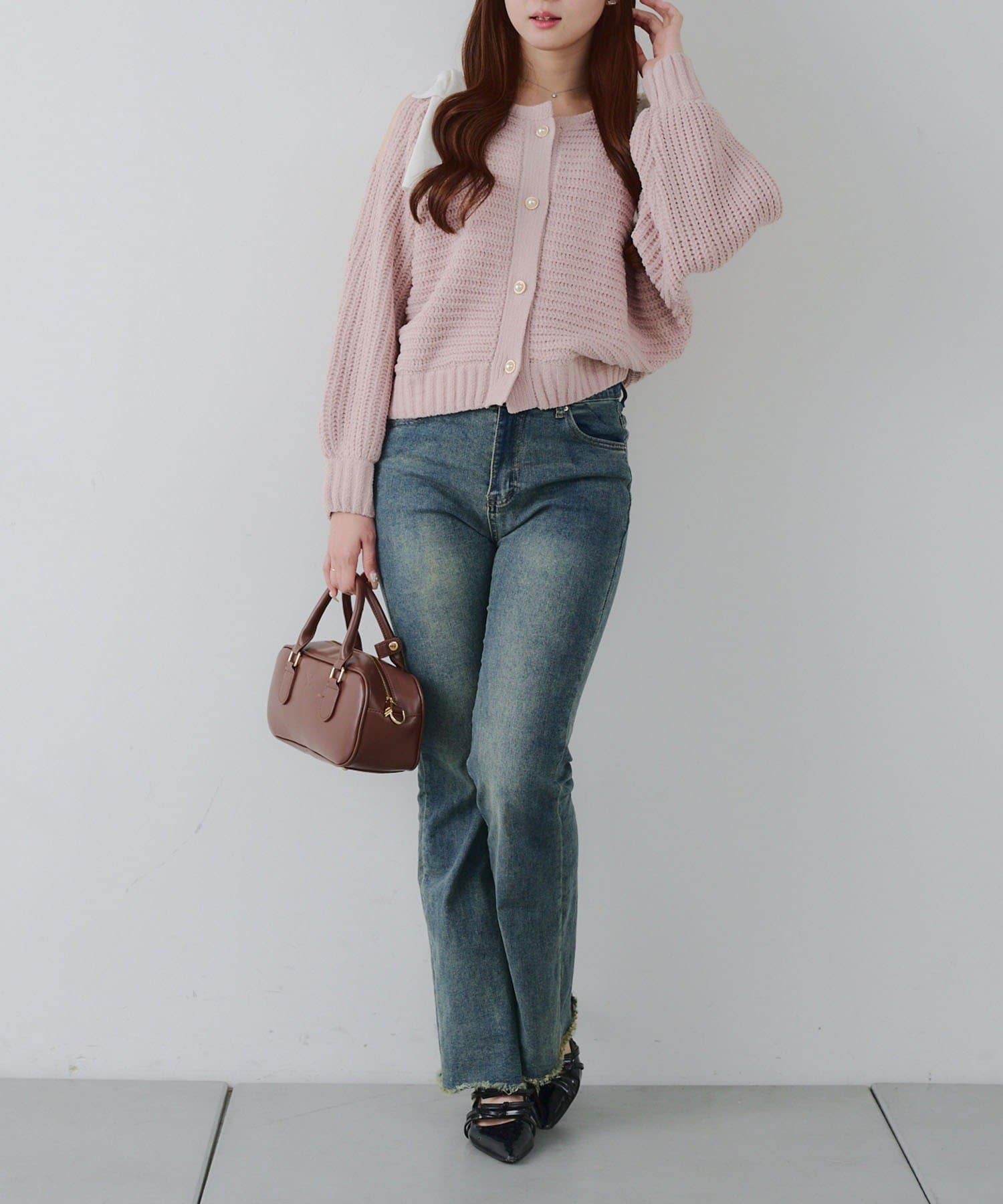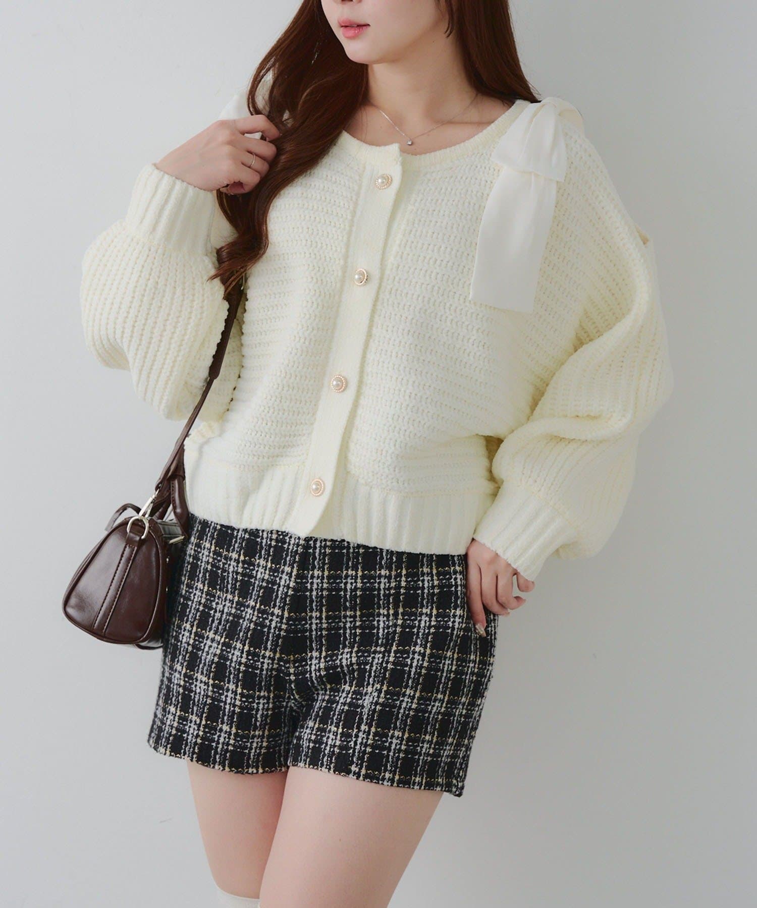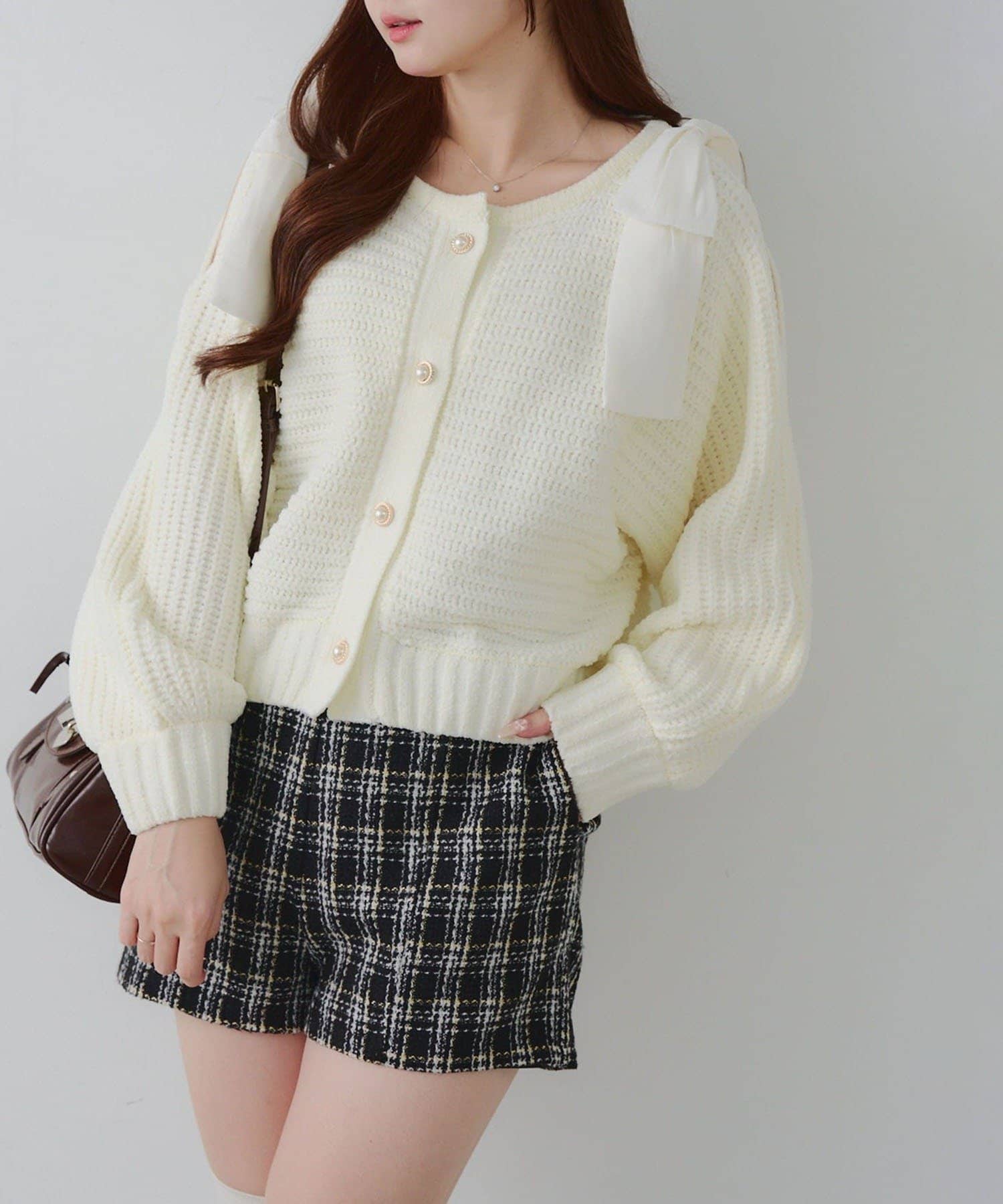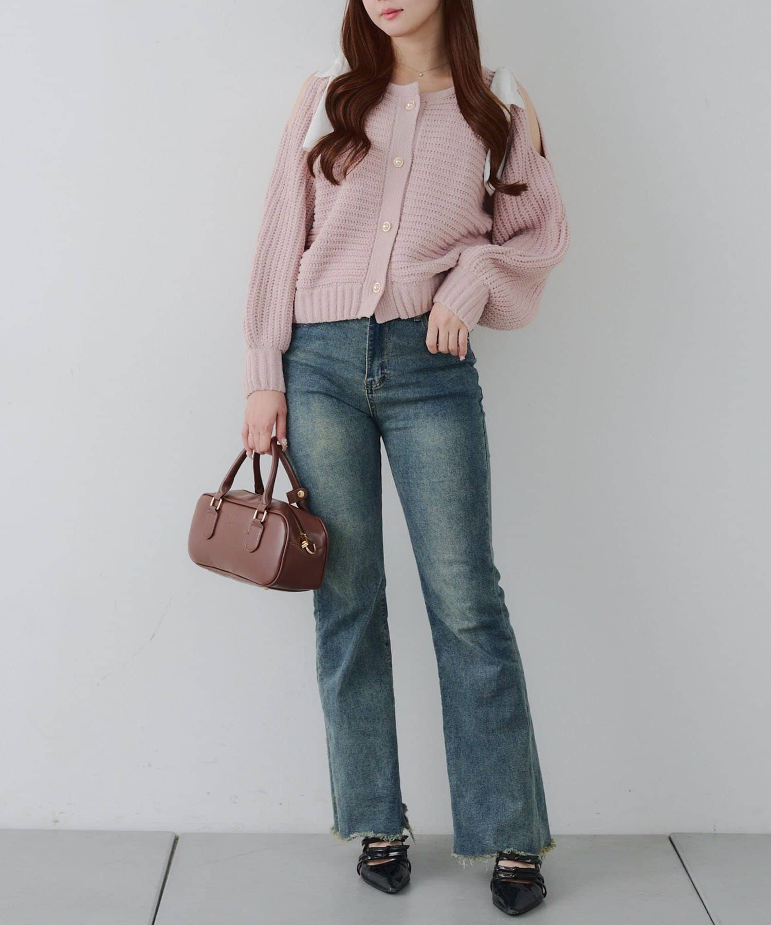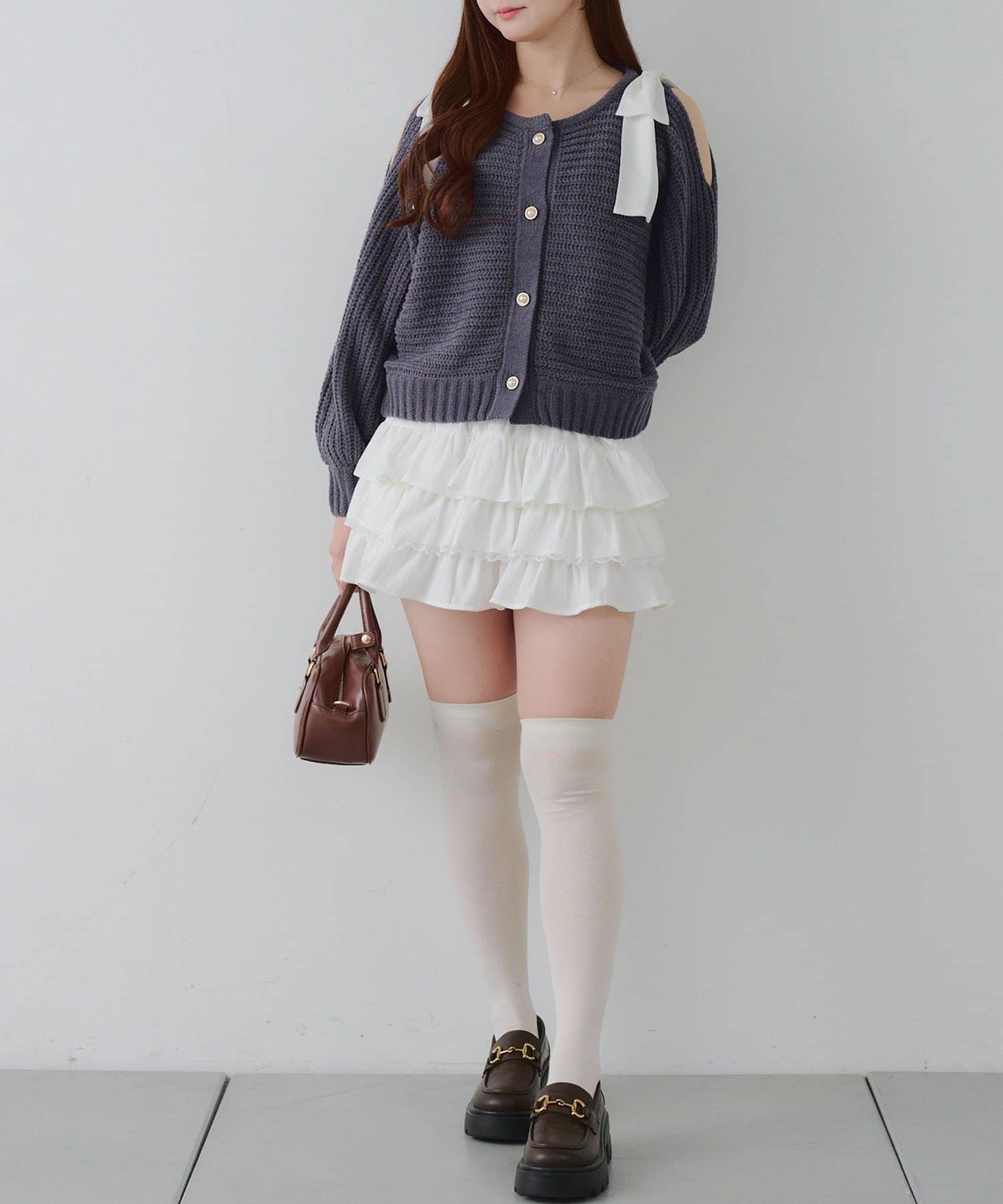 ・肩開きデザインで抜け感を演出できるニットカーディガン