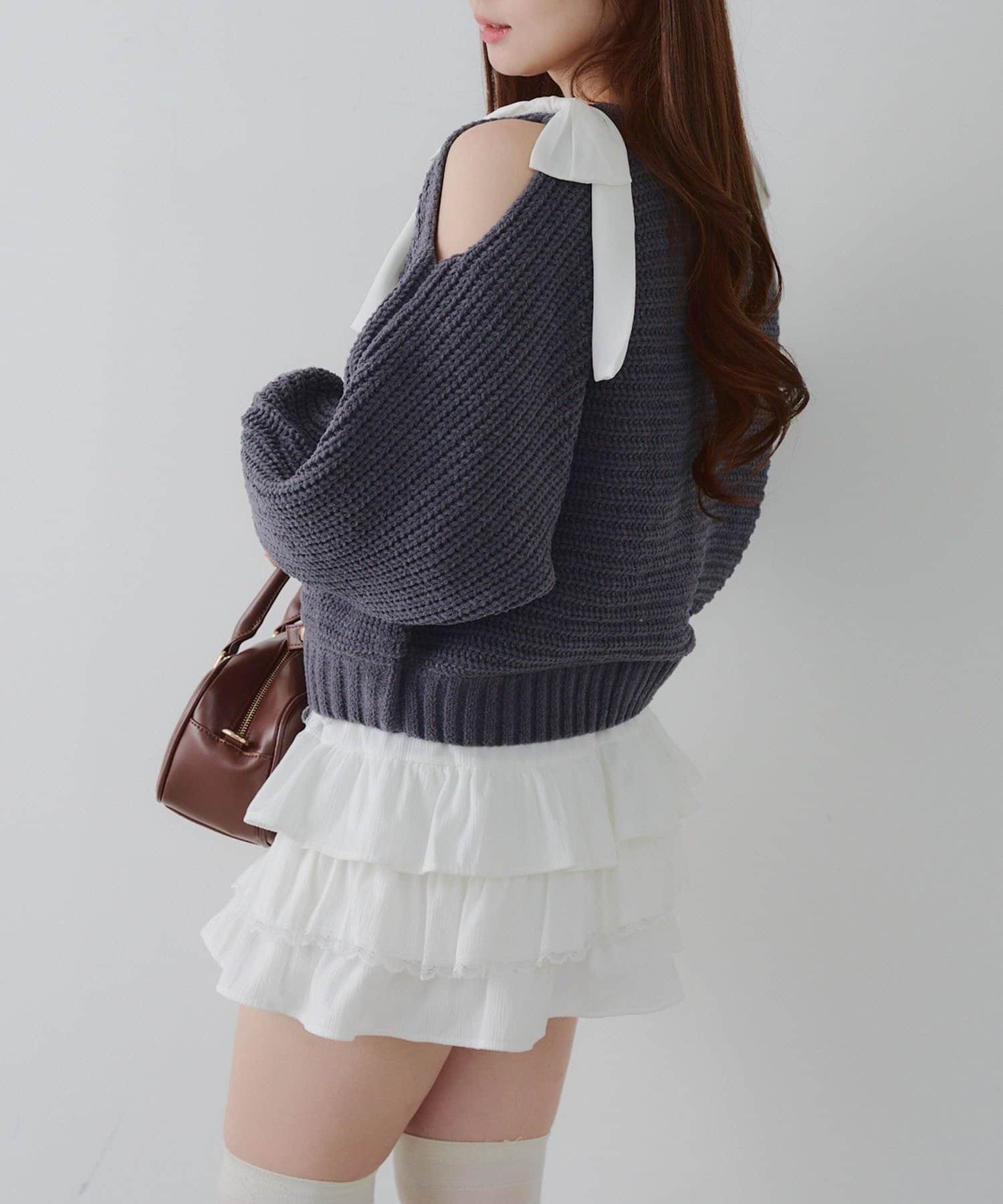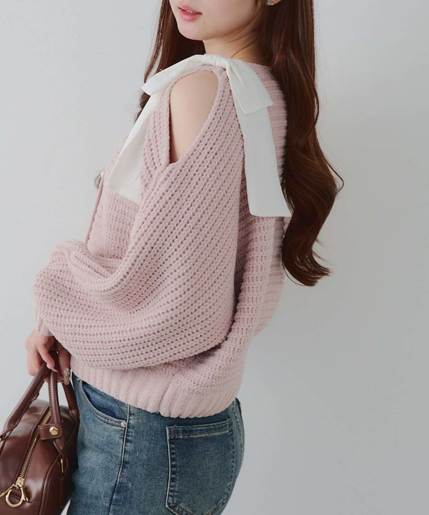TOP > NICE CLAUP / OLIVE des OLIVE OUTLET > レディース > トップス > ニット/セーター > 【RMAF】肩リボンモールプルオーバー