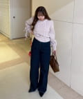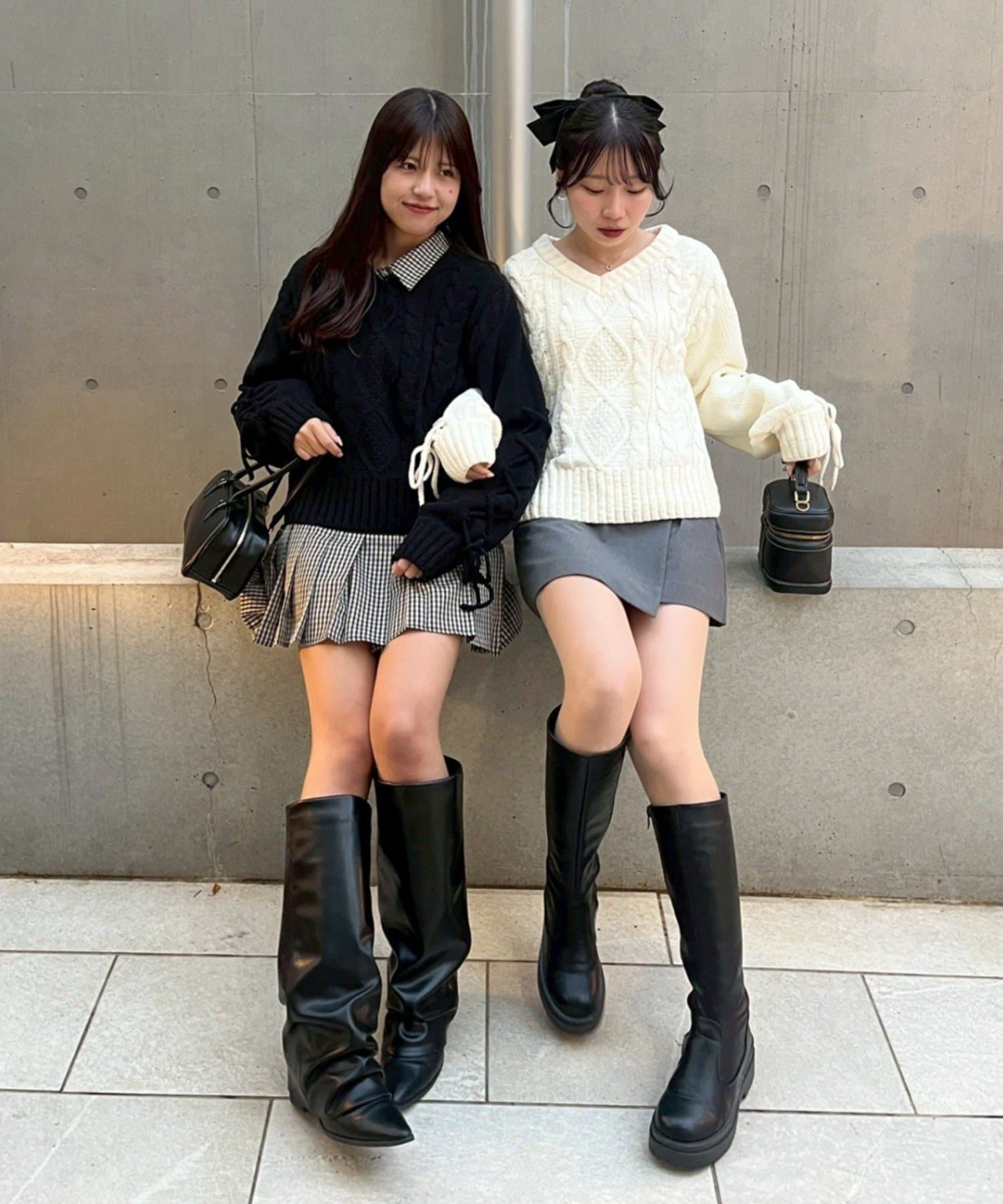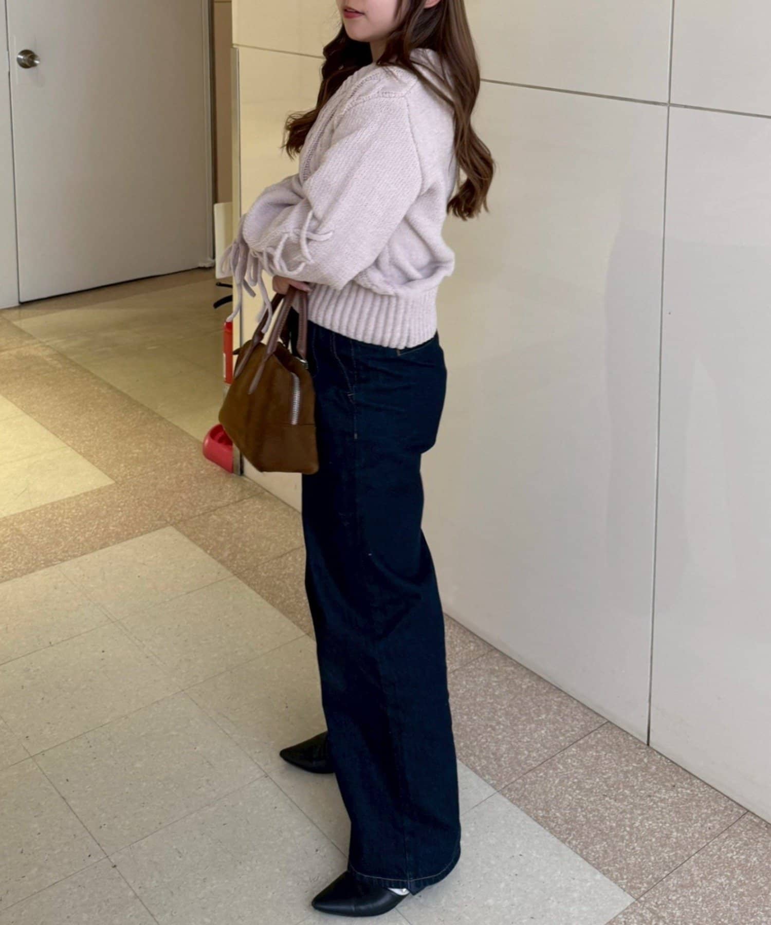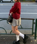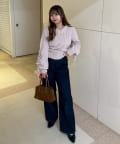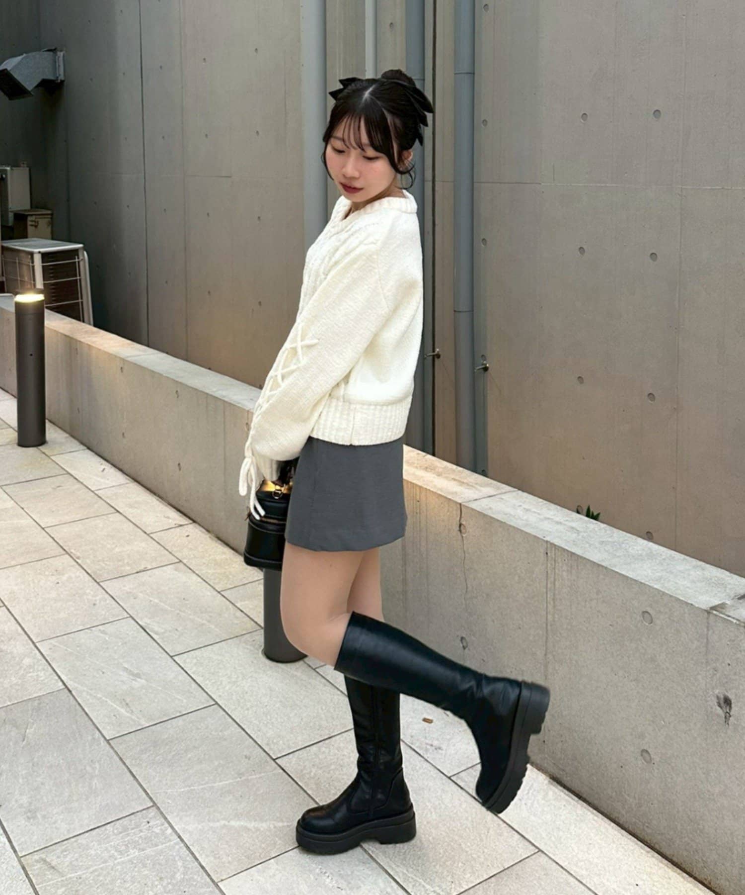 ・デコルテの肌見せが苦手な方は、インナーにハイネックのメロウトップスを選ぶのが◎