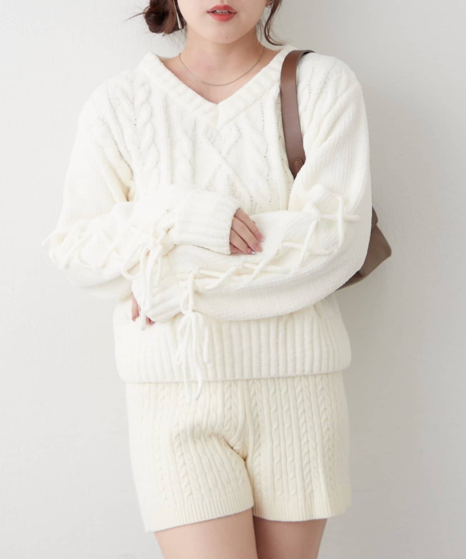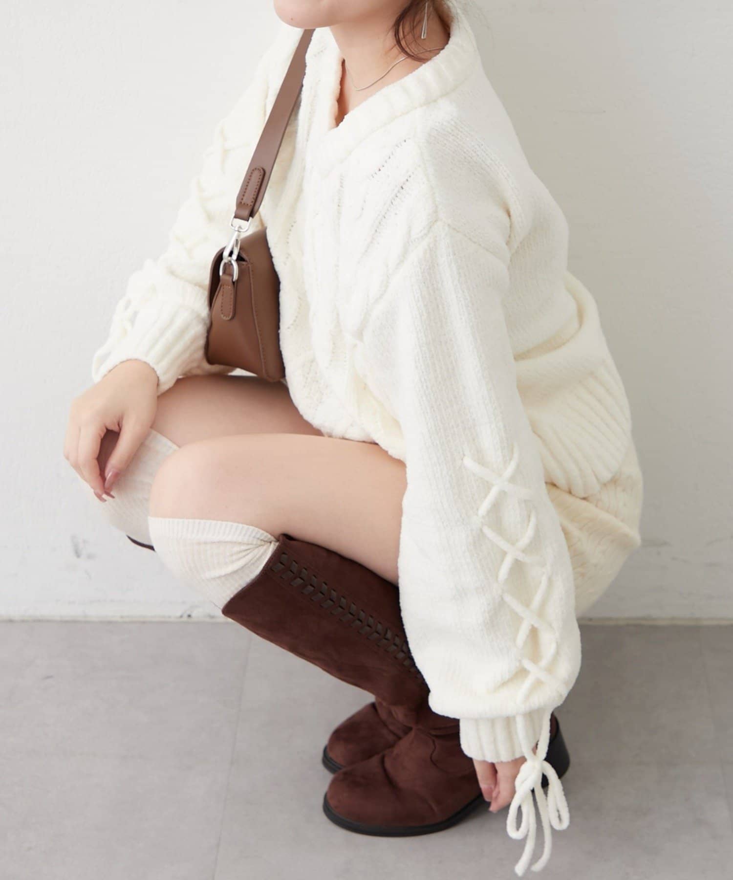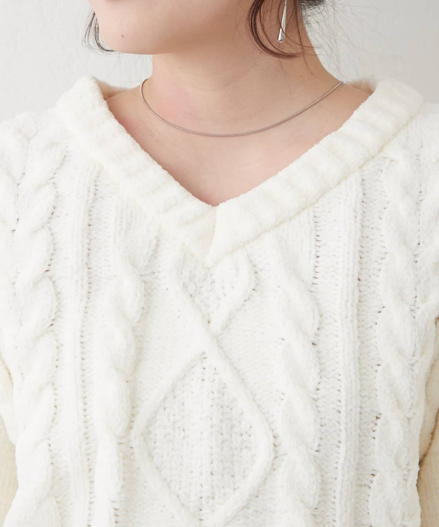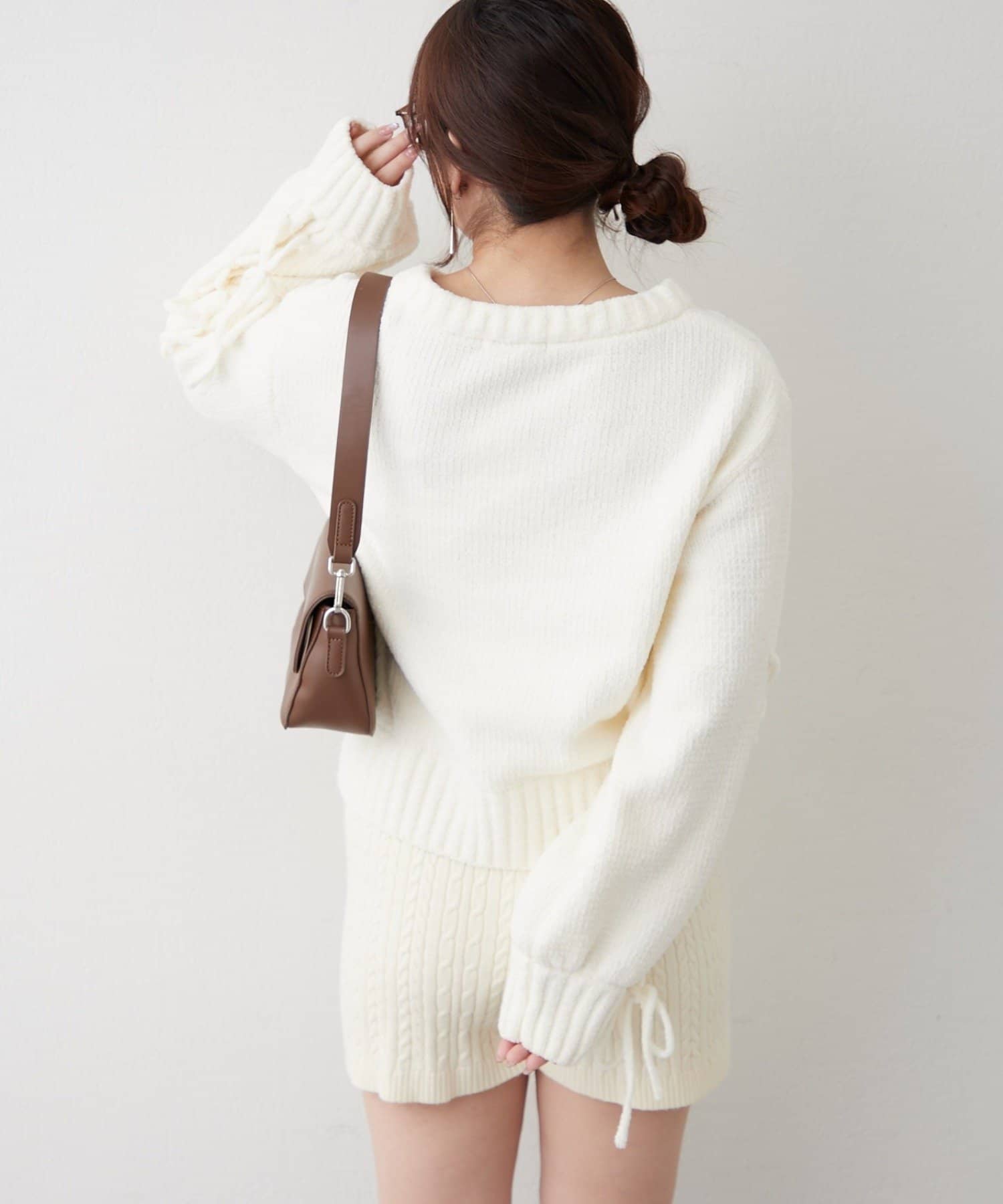 ・もちもちとした質感が魅力のモールヤーンニットプルオーバー