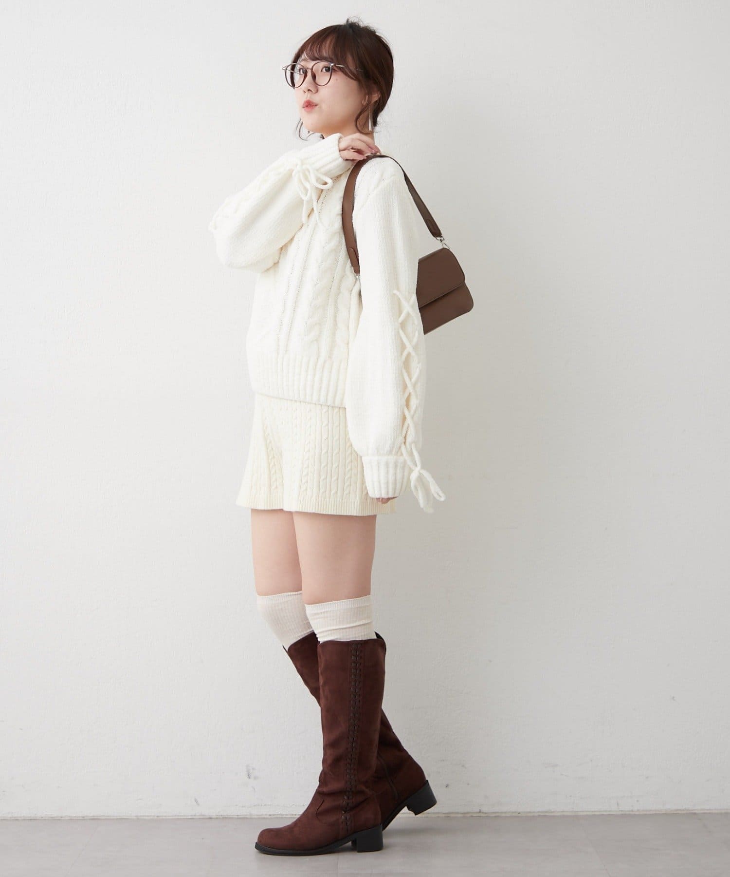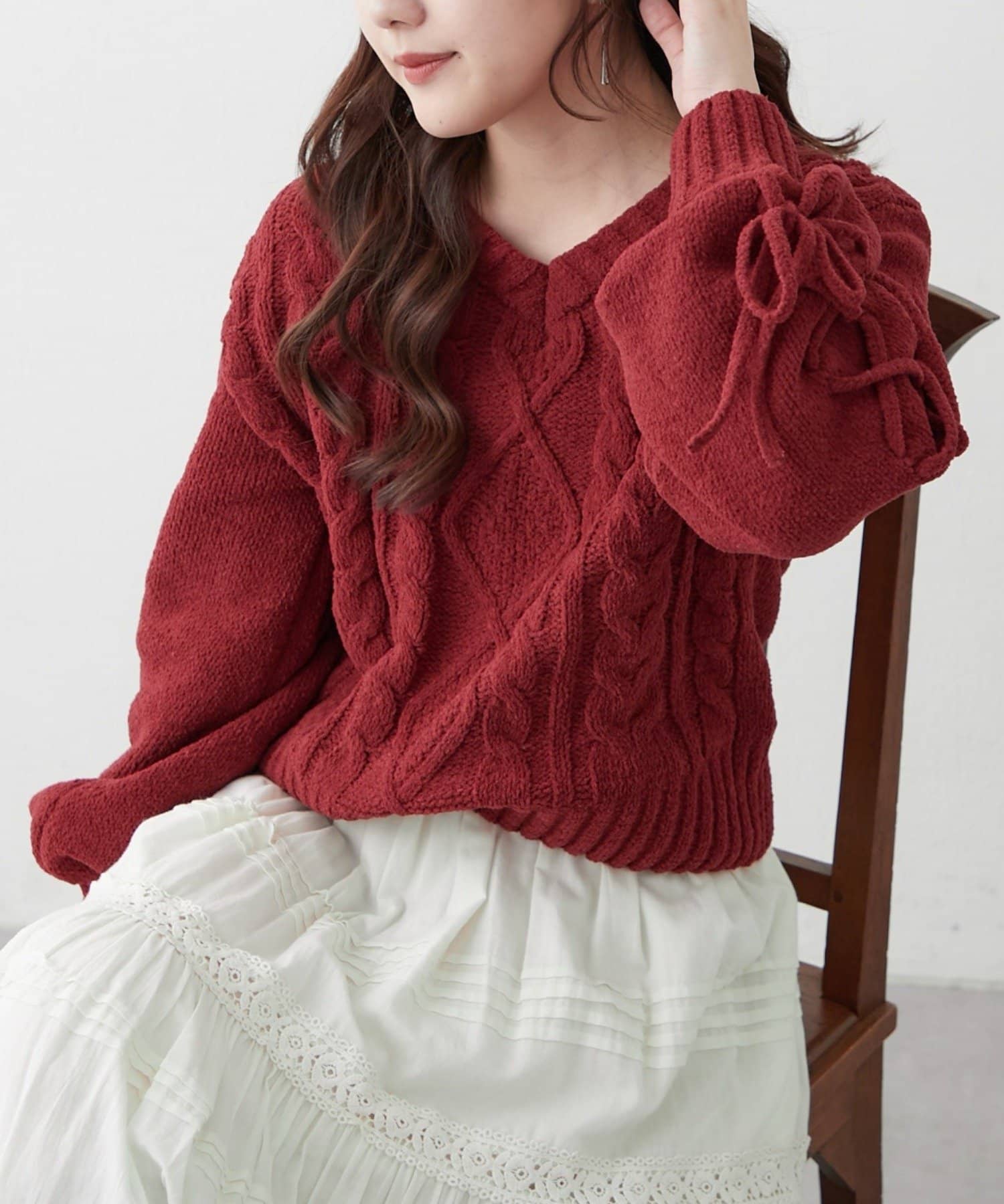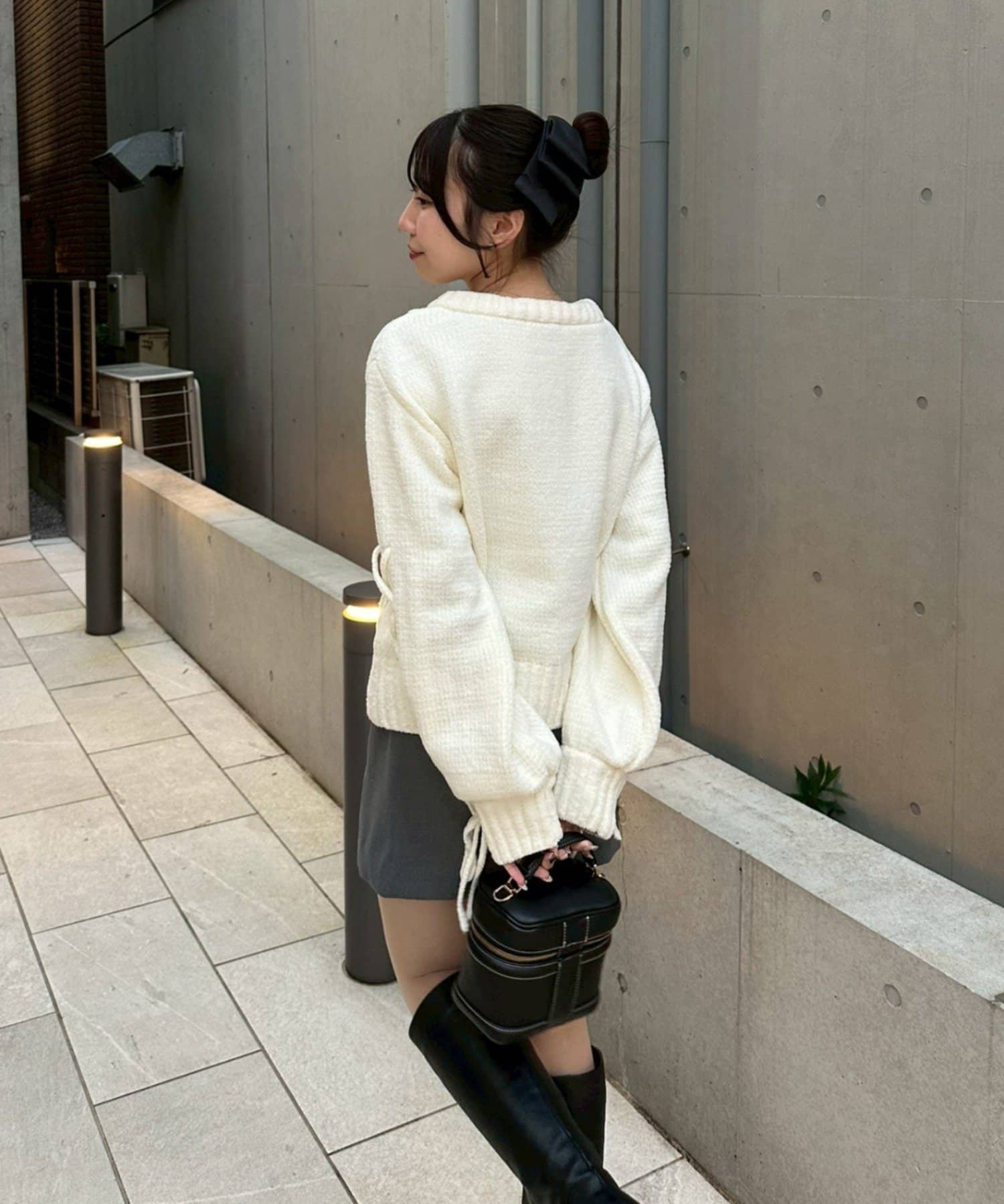 ・もちもちとした質感が魅力のモールヤーンニットプルオーバー