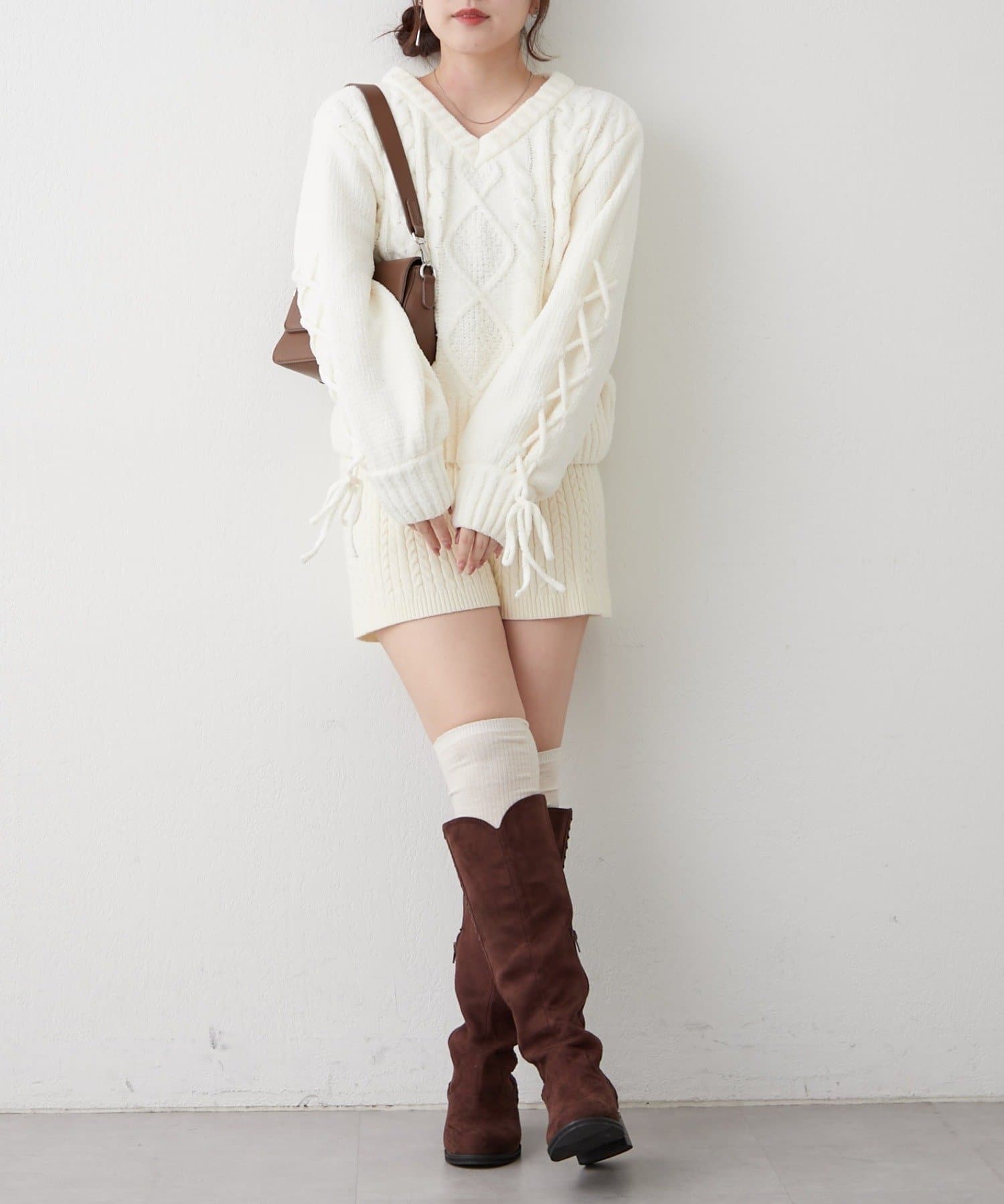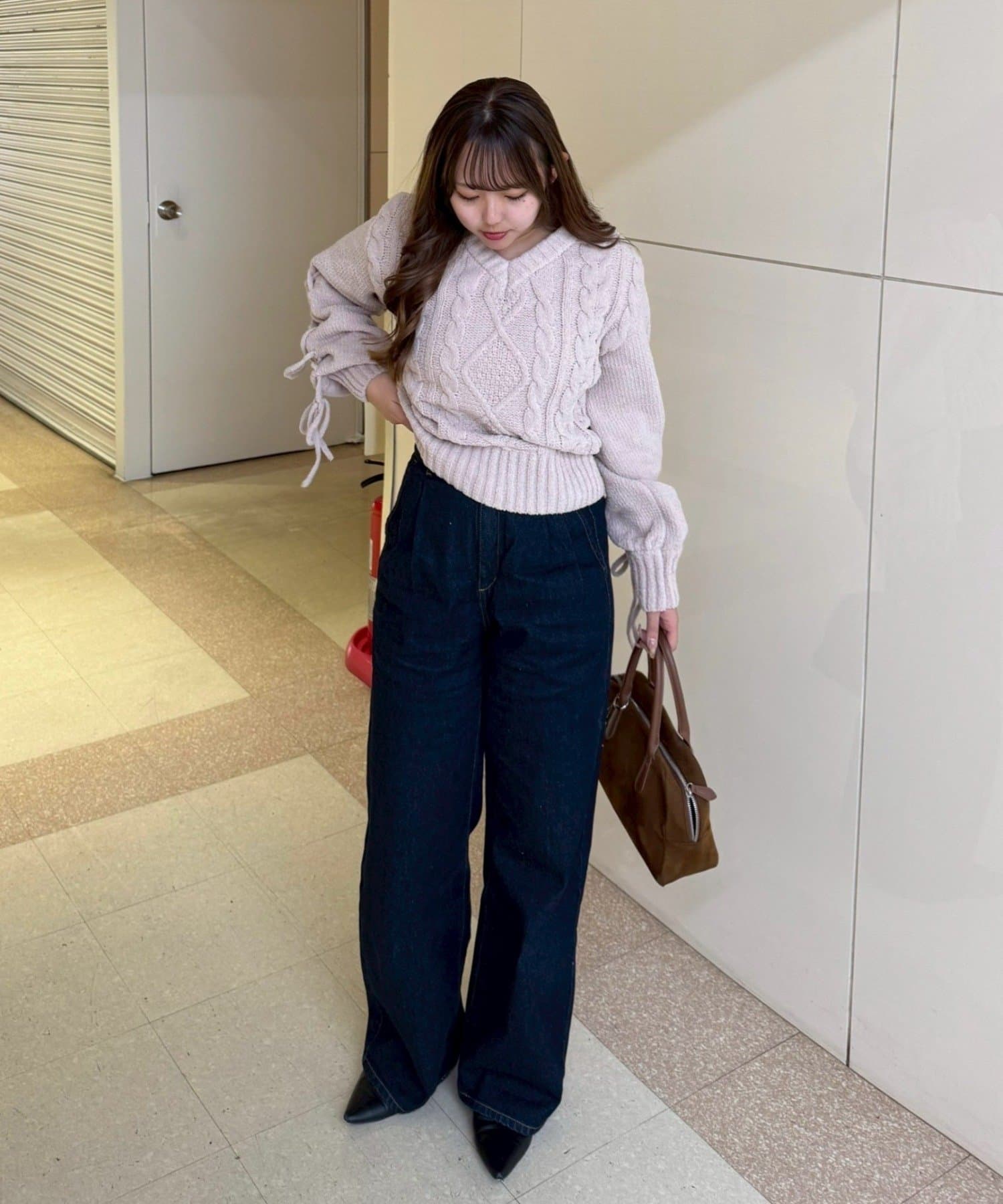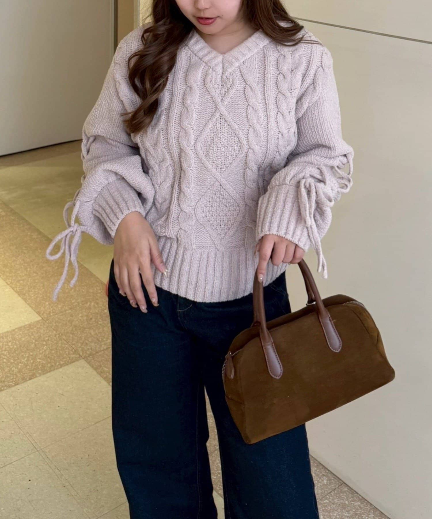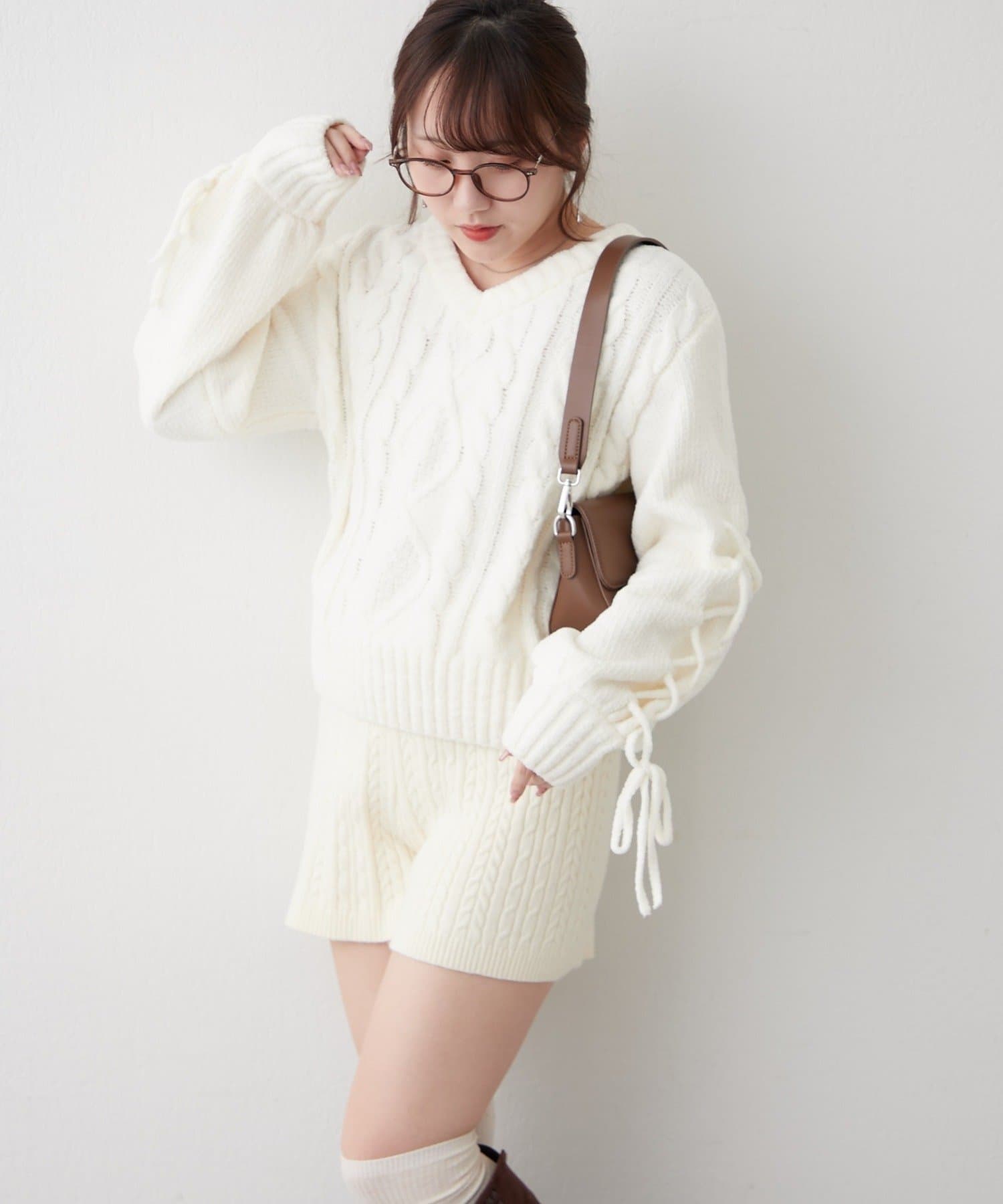 ・もちもちとした質感が魅力のモールヤーンニットプルオーバー