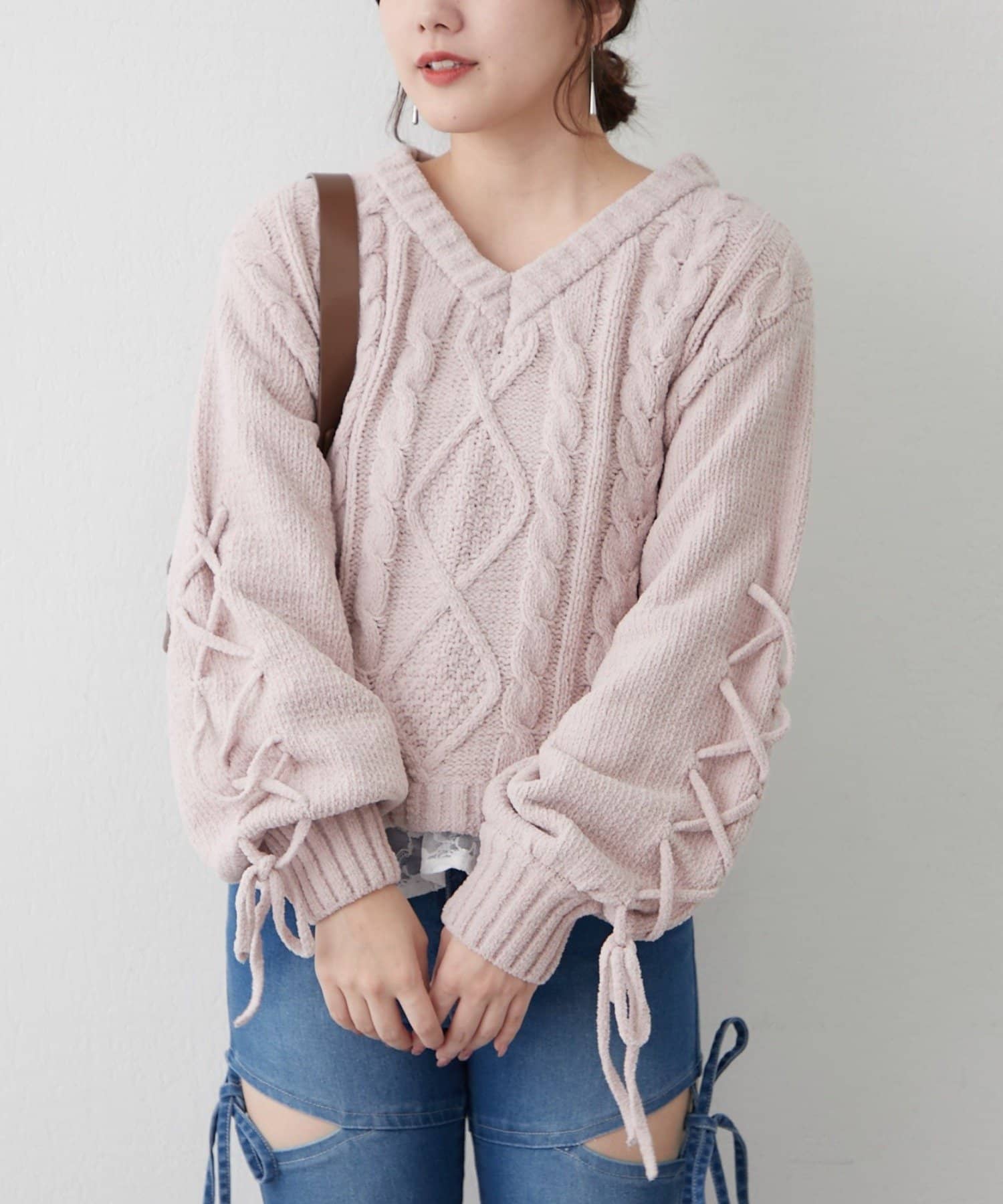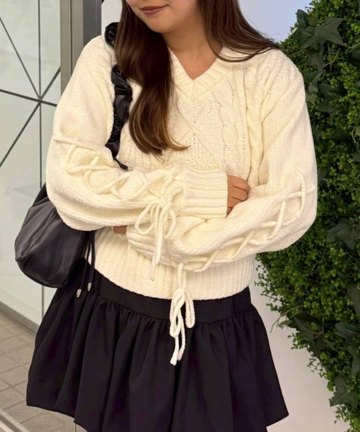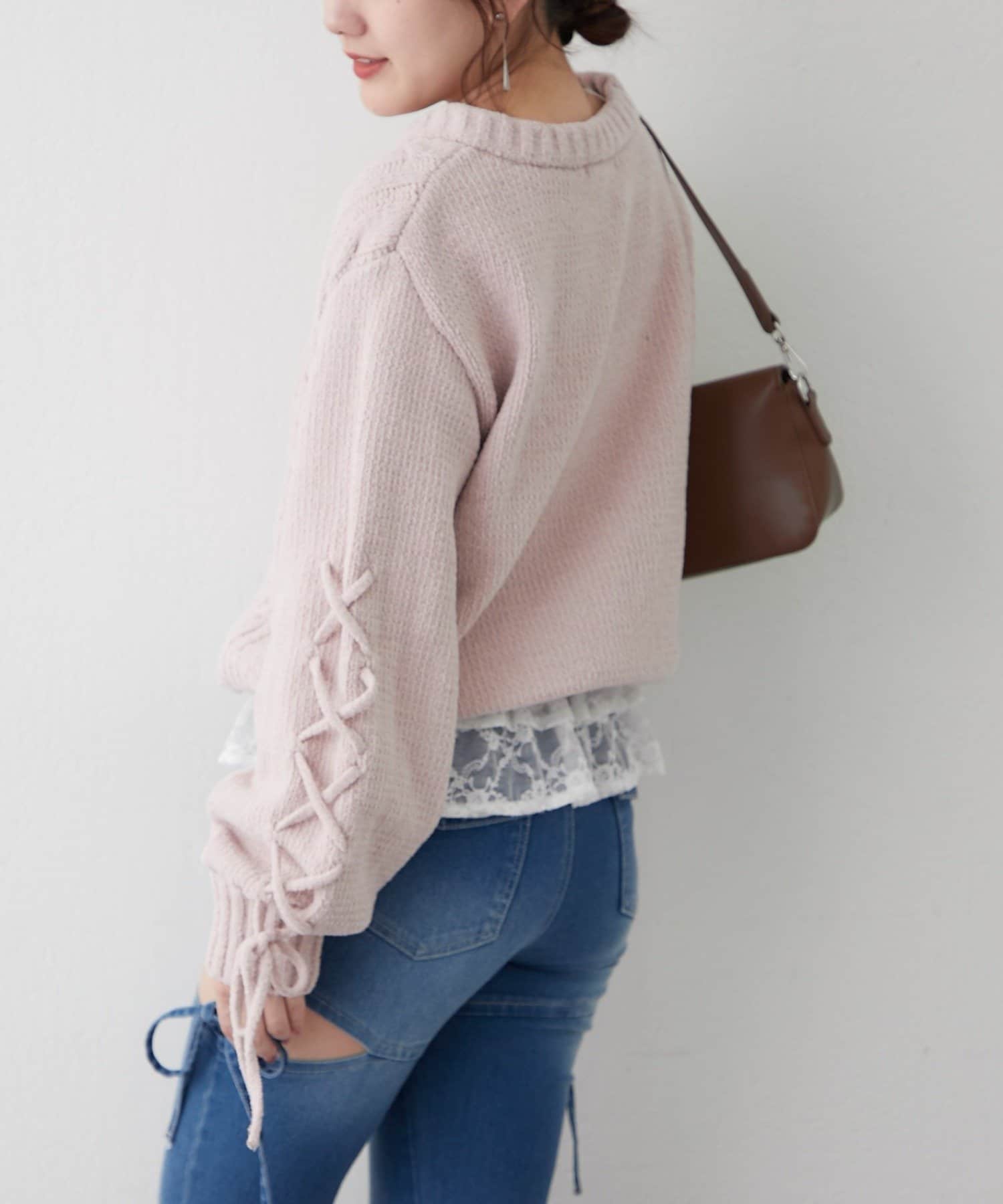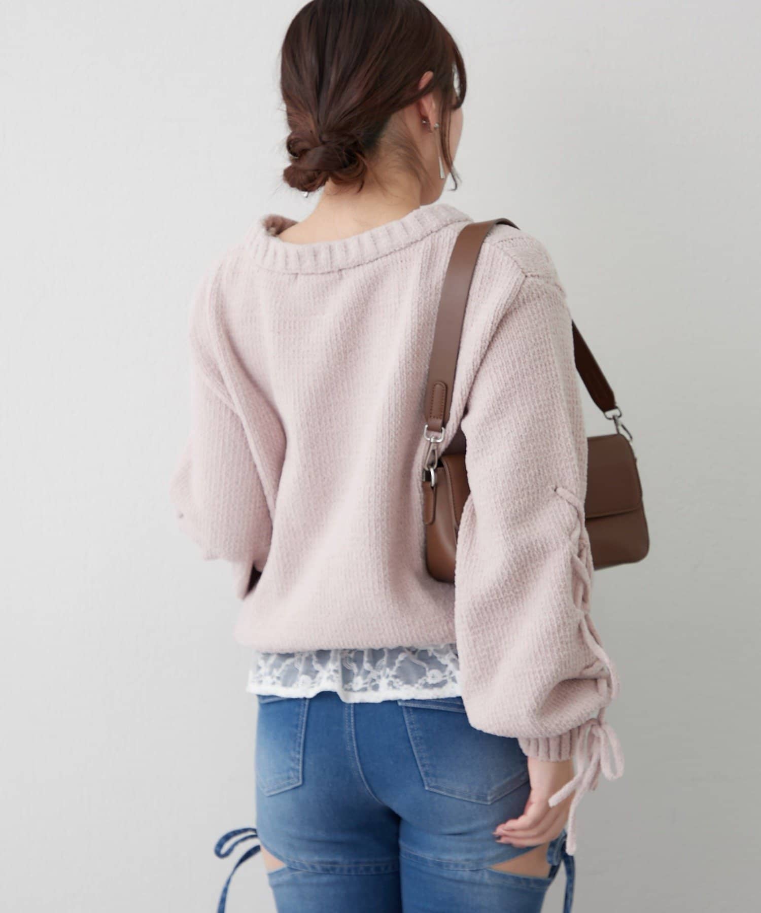 ・袖のレースアップデザインで手元まで可愛い仕上がり♪