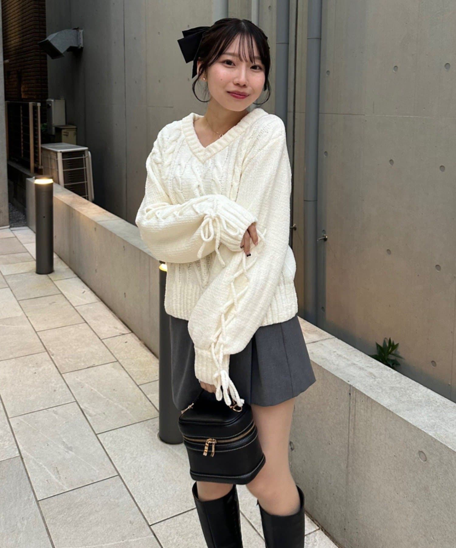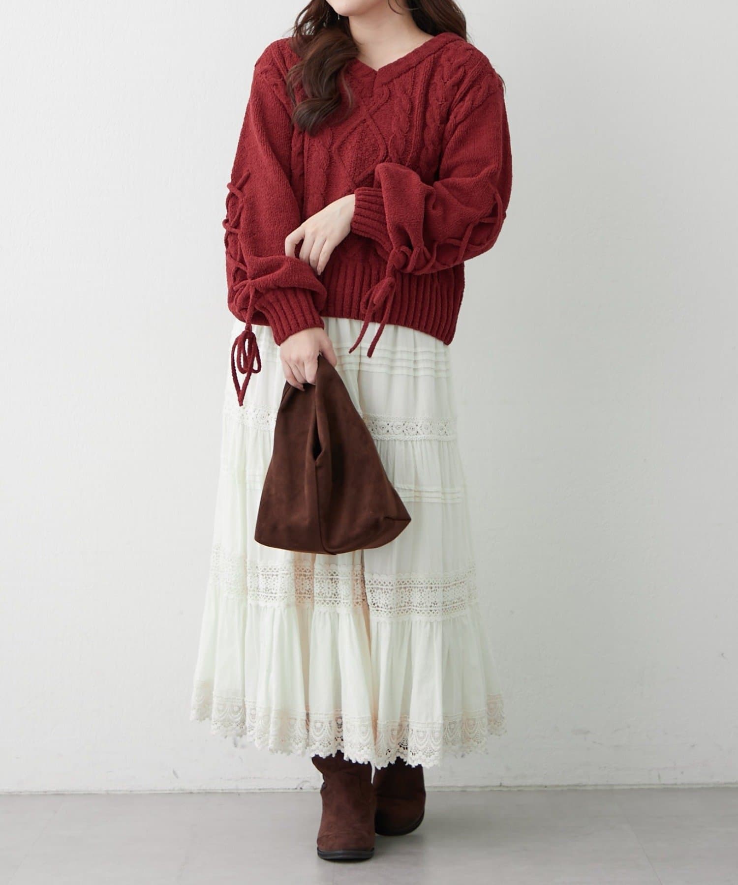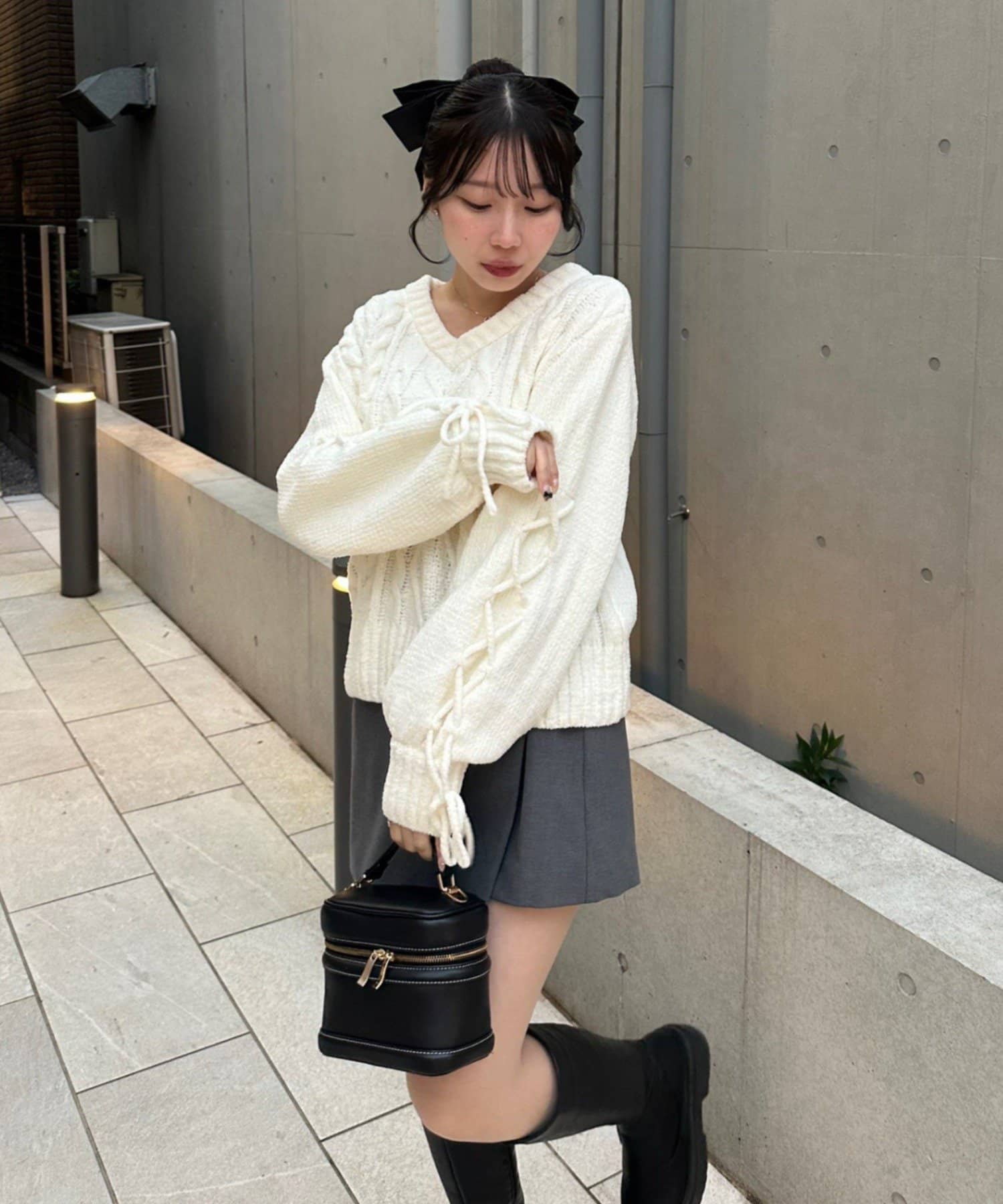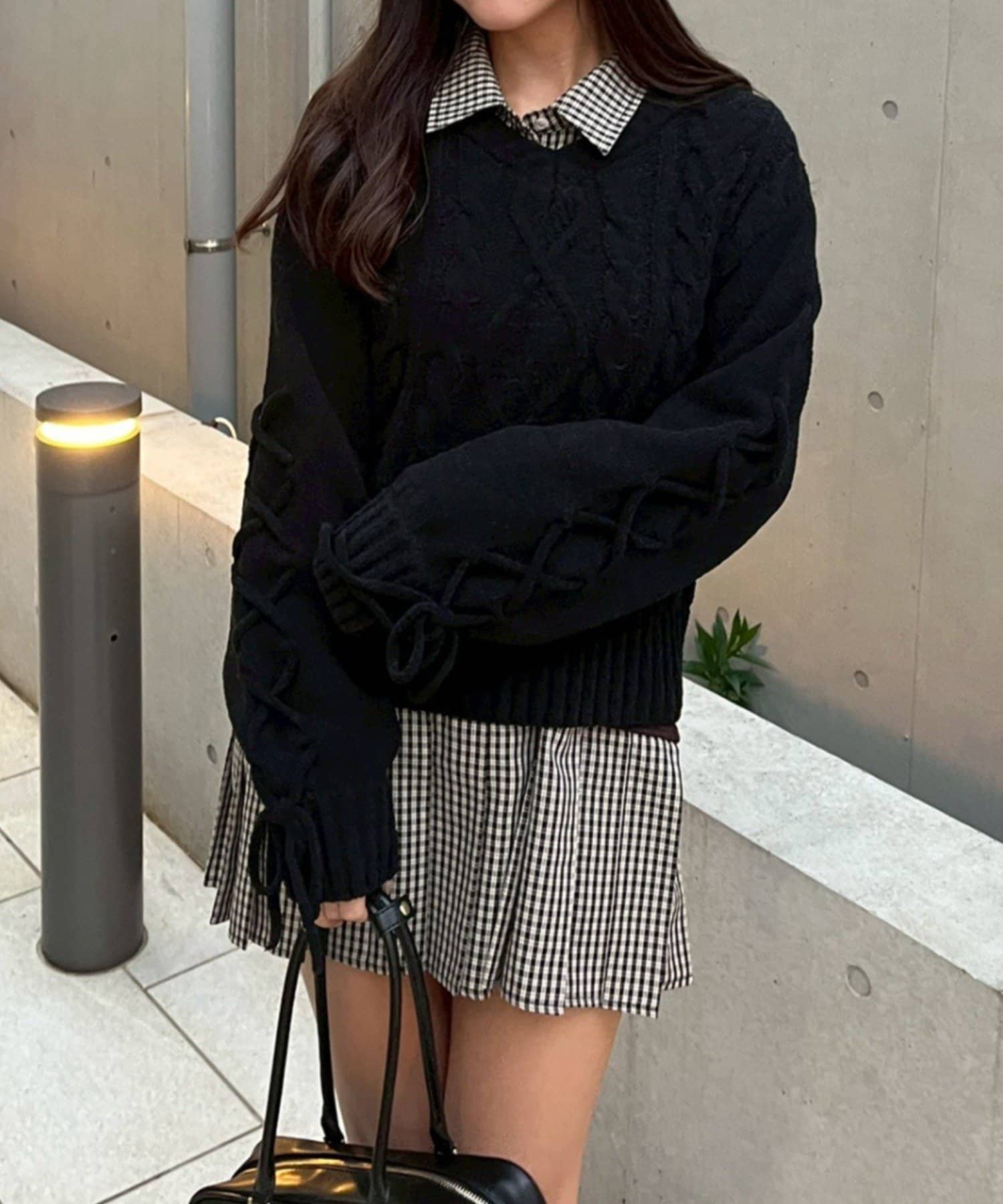 ・袖のレースアップデザインで手元まで可愛い仕上がり♪