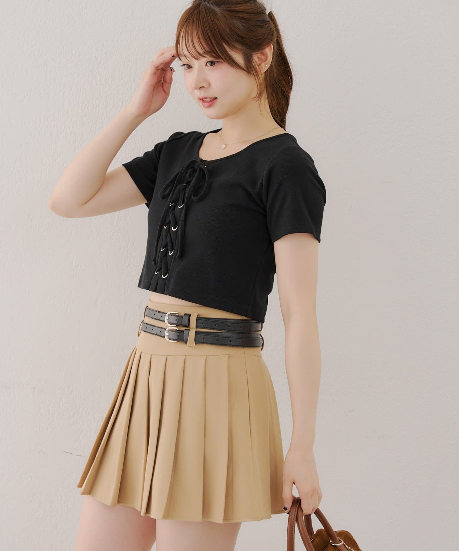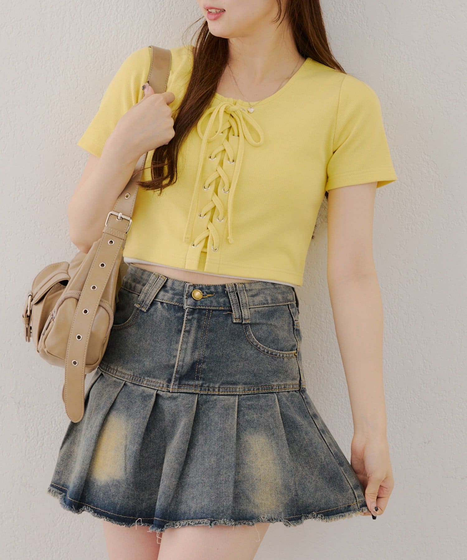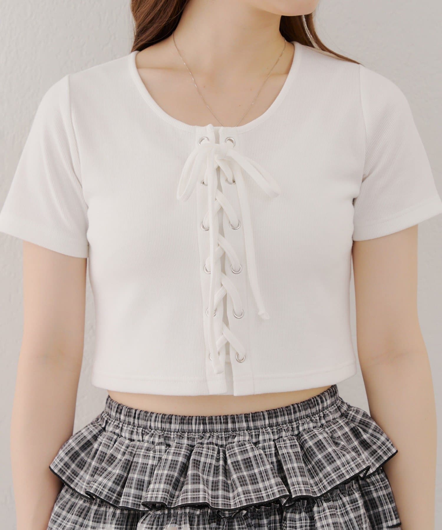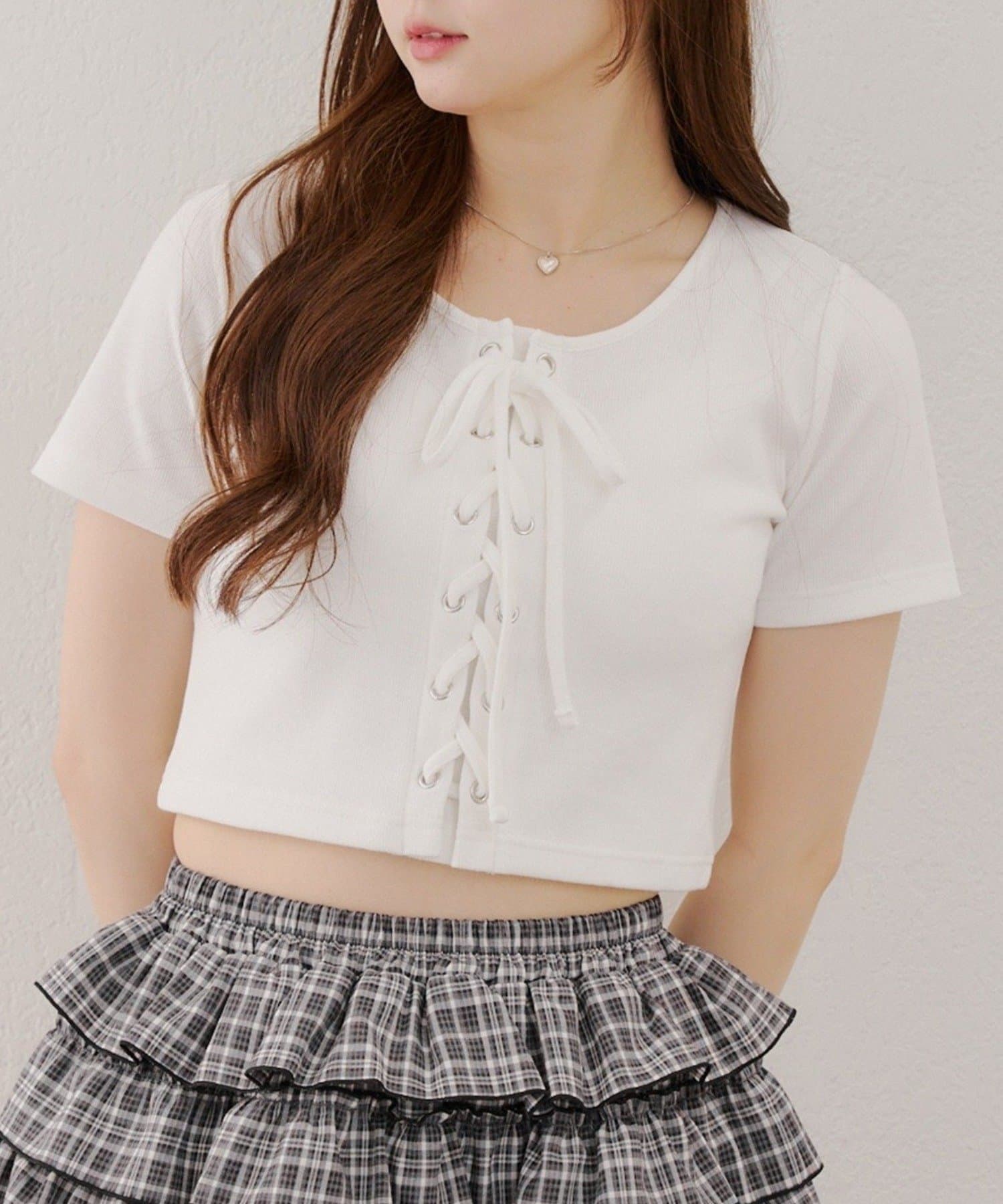 ・レースアップデザインが可愛いトレンド感満載のトップス