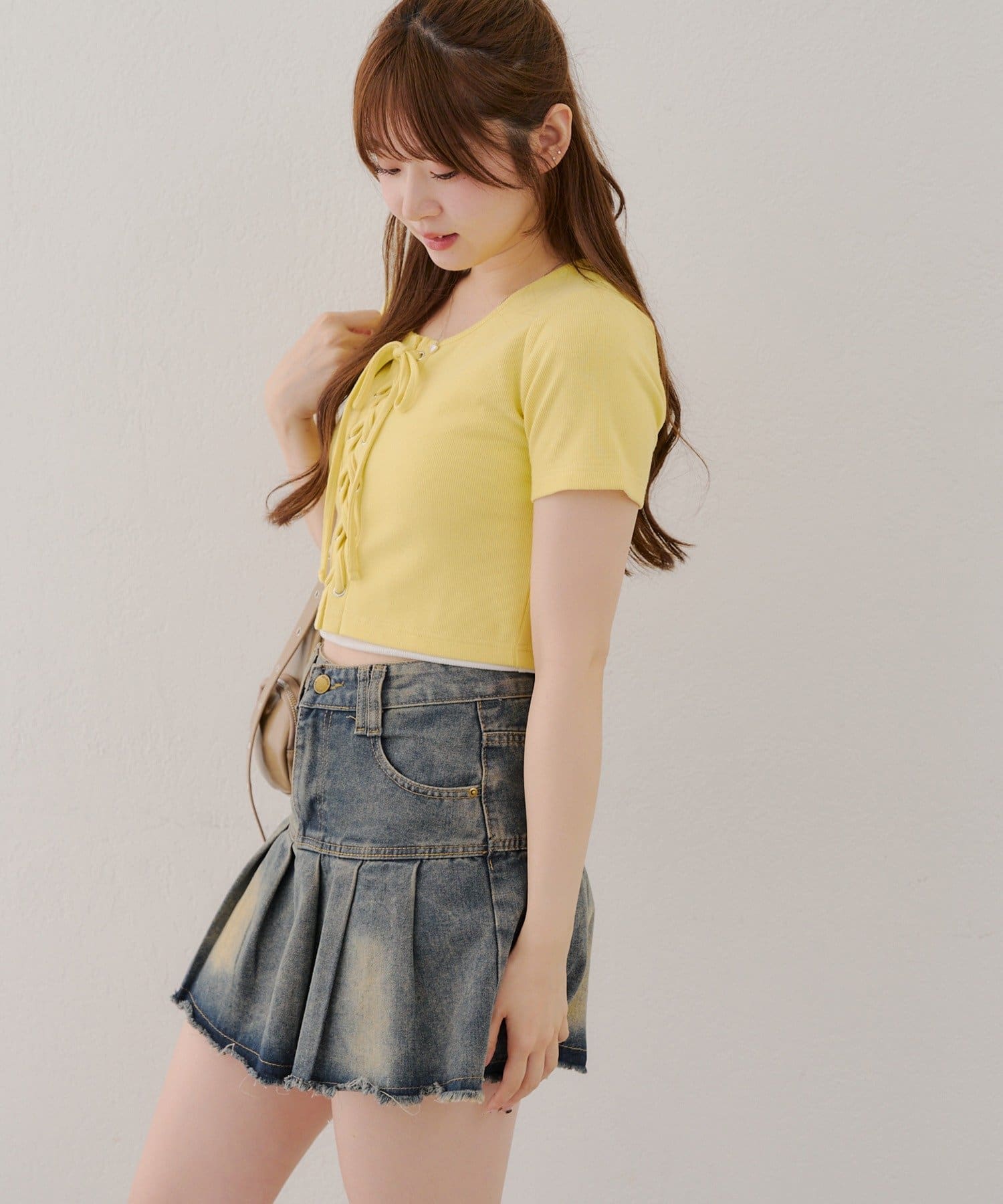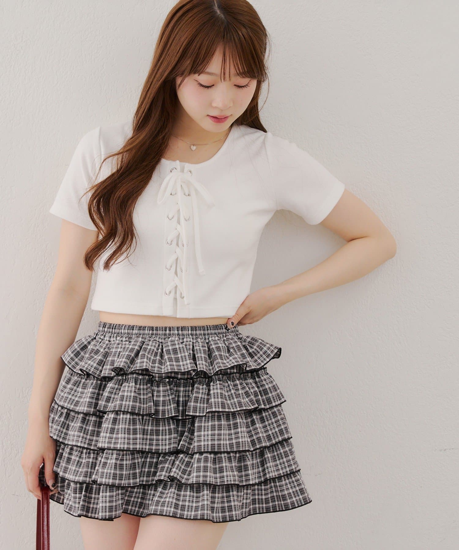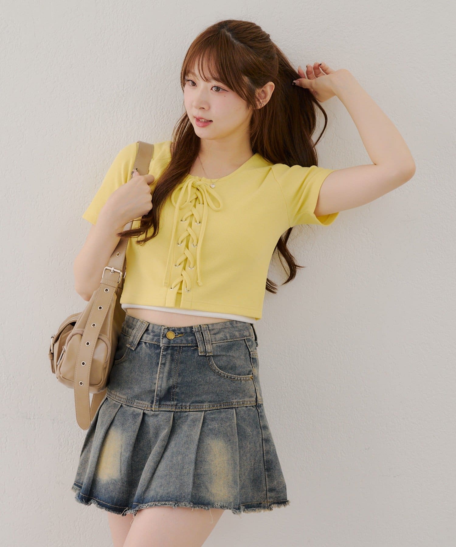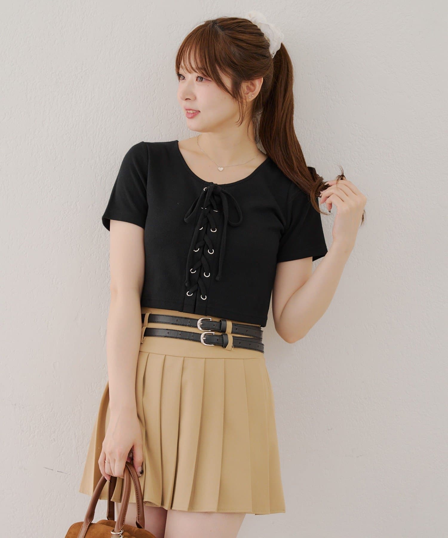 ・レースアップデザインが可愛いトレンド感満載のトップス