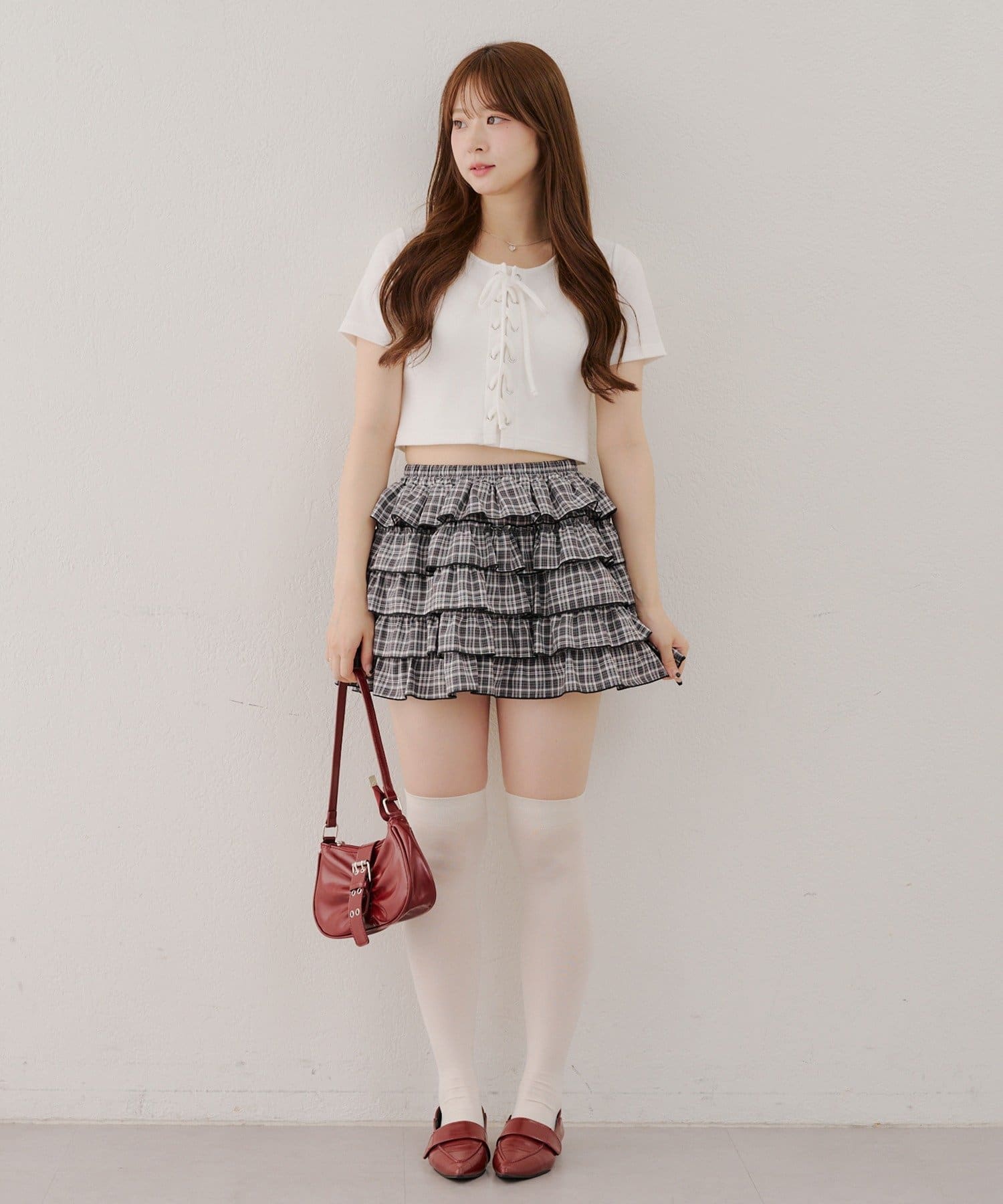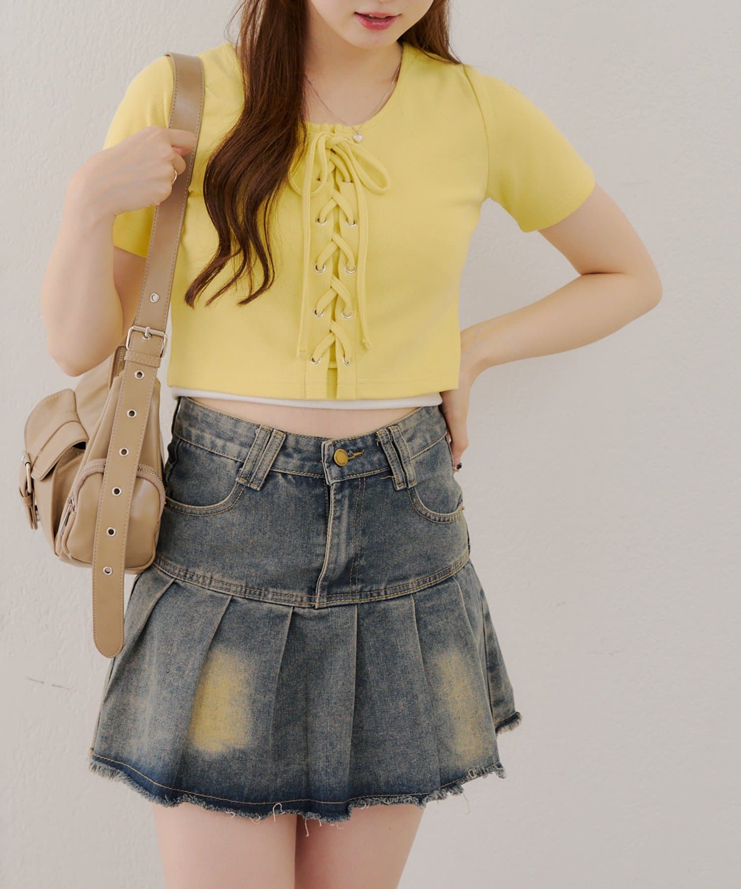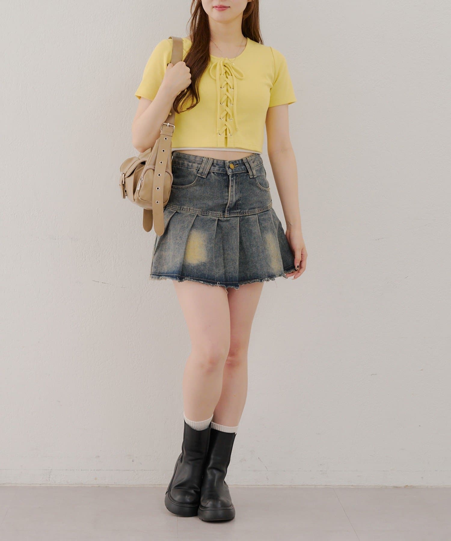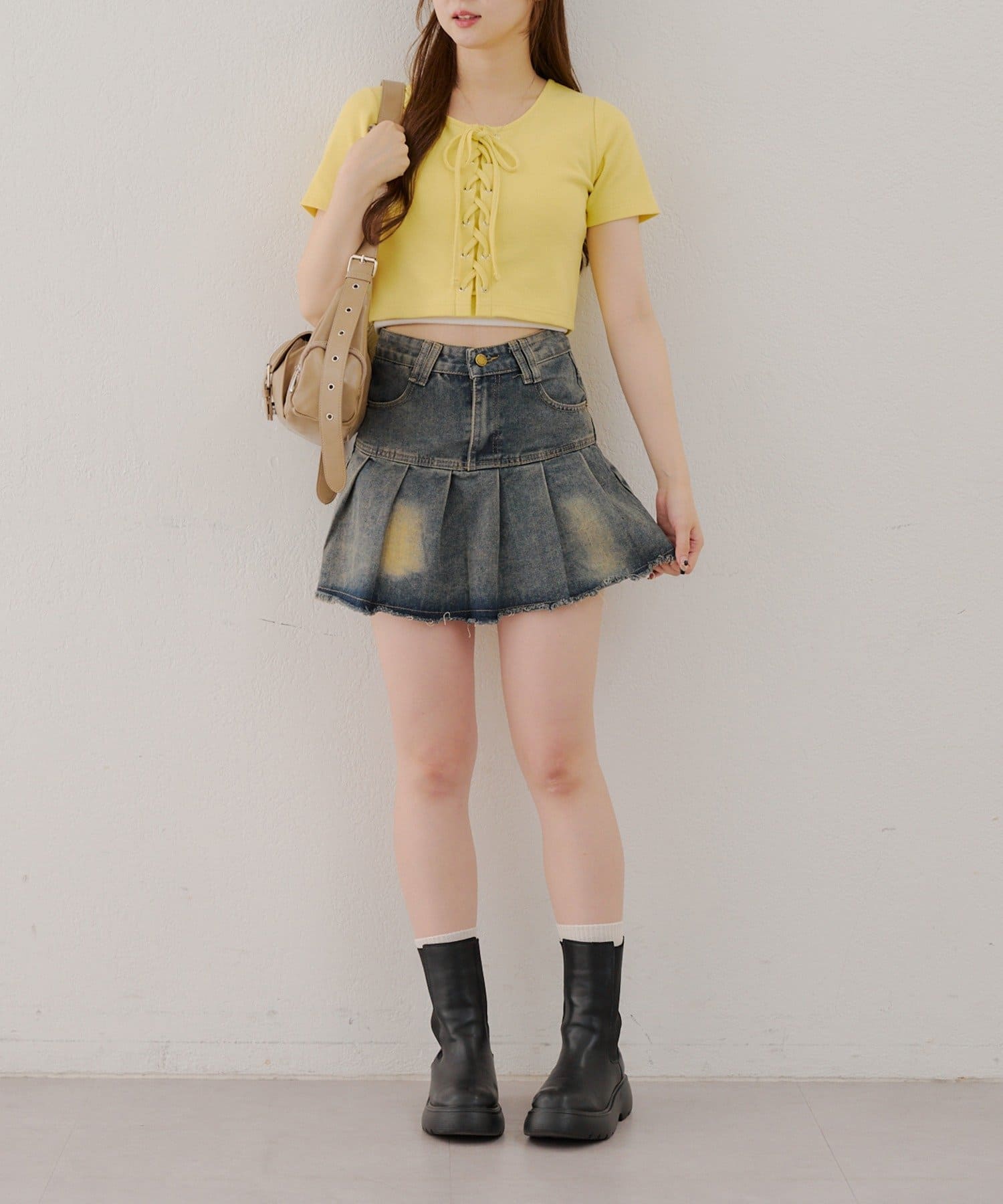 ・レースアップデザインが可愛いトレンド感満載のトップス