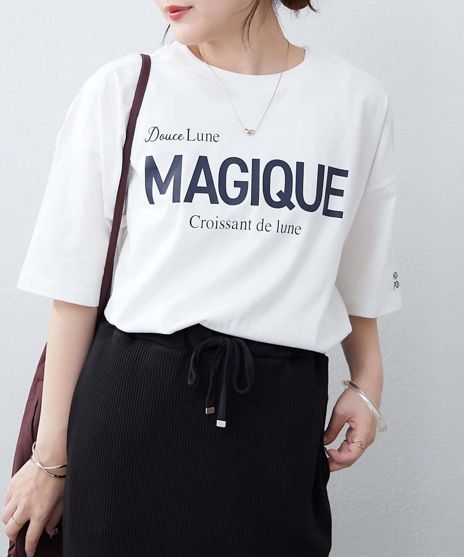 ・フロントだけでなく袖口や後ろにもロゴプリントが施されたTシャツ