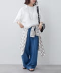 ・カーブパンツを合わせてトレンドライクなシンプルコーデに。