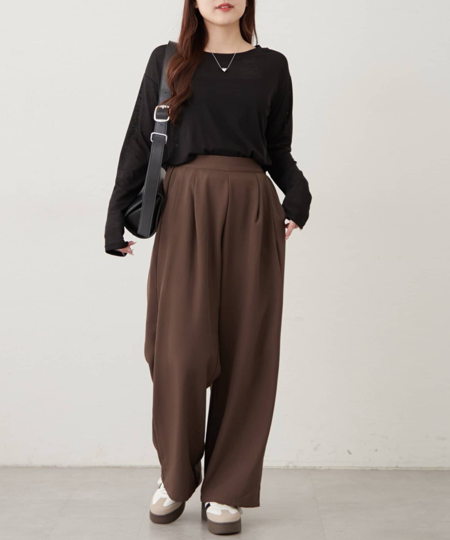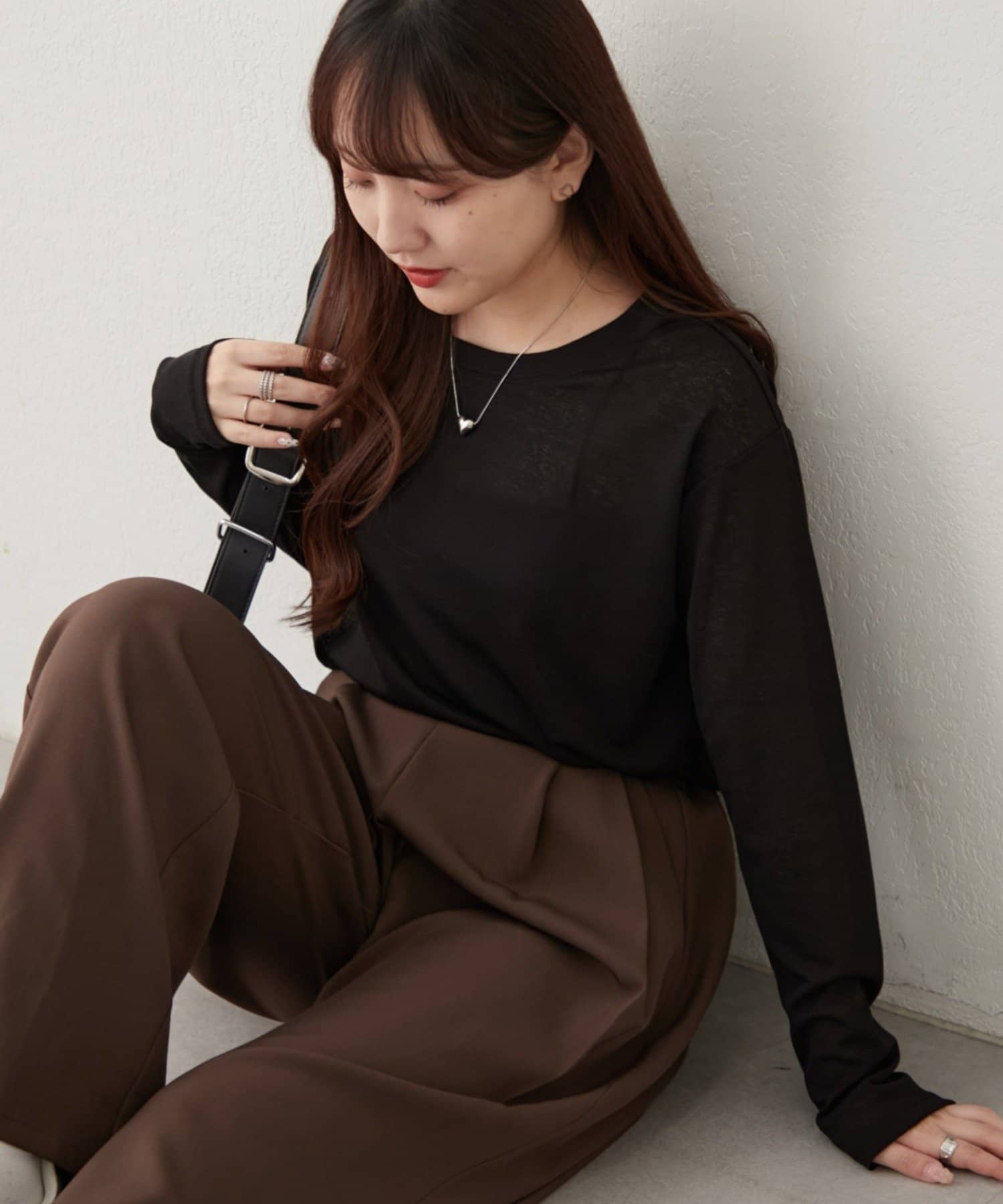 ・ほどよいゆとりあるシルエットで一枚あると着回しの幅が広がるトップス