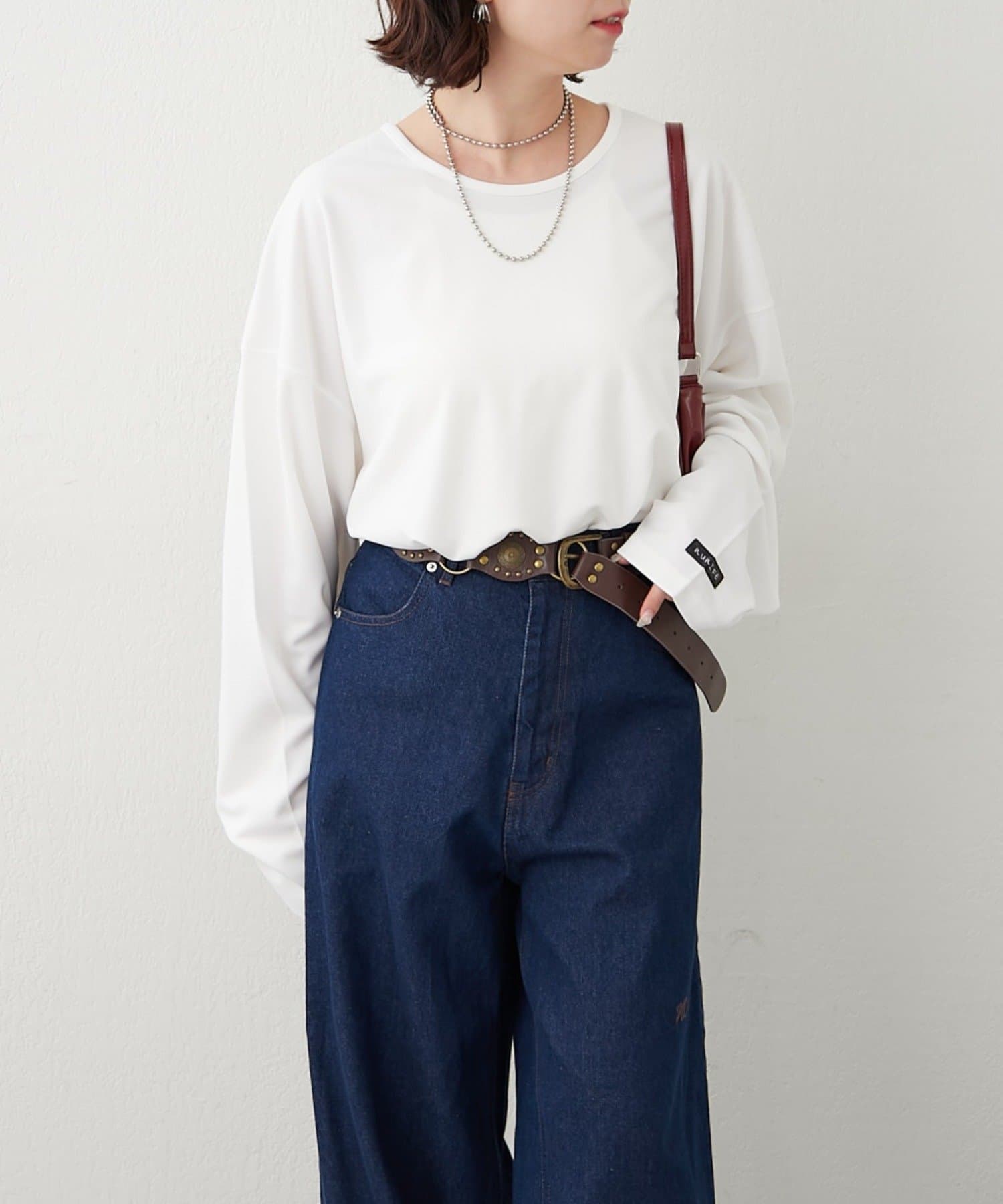 ・ドライタッチなカットソー素材でカジュアルながらキレイ見えするトップス