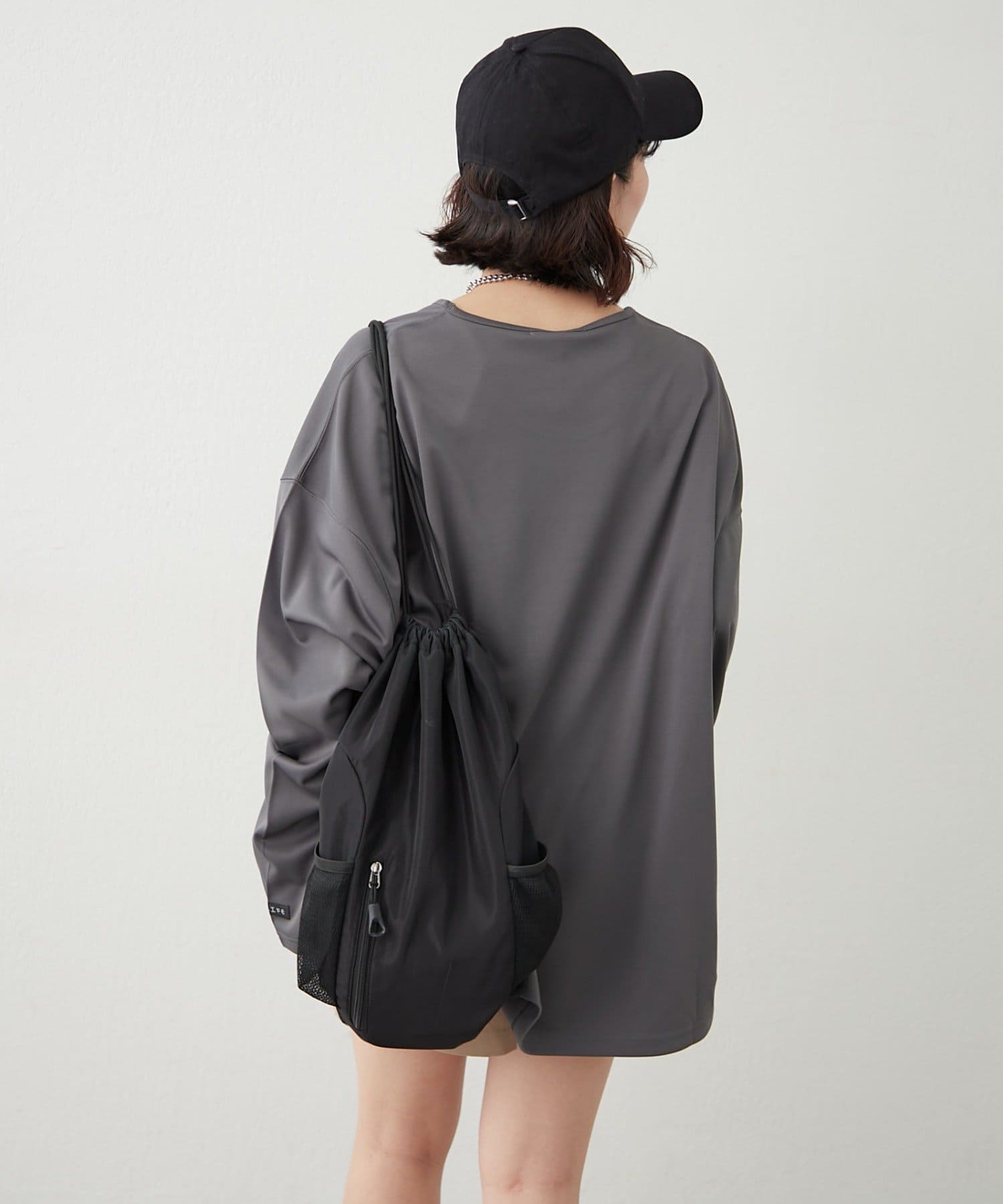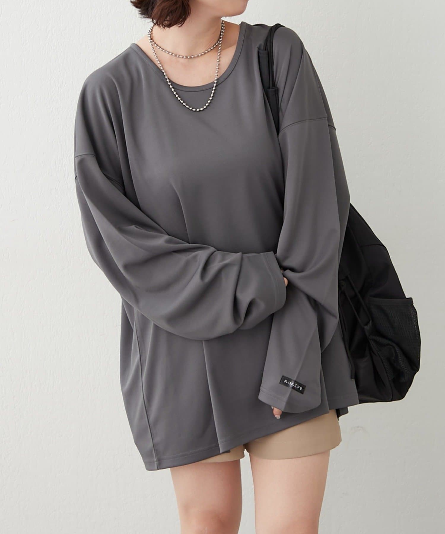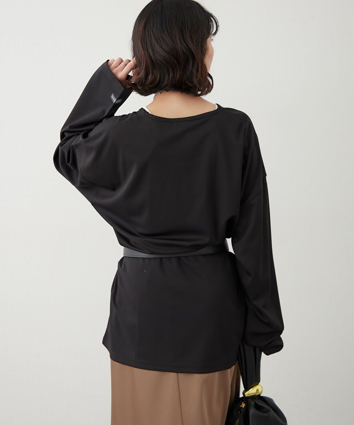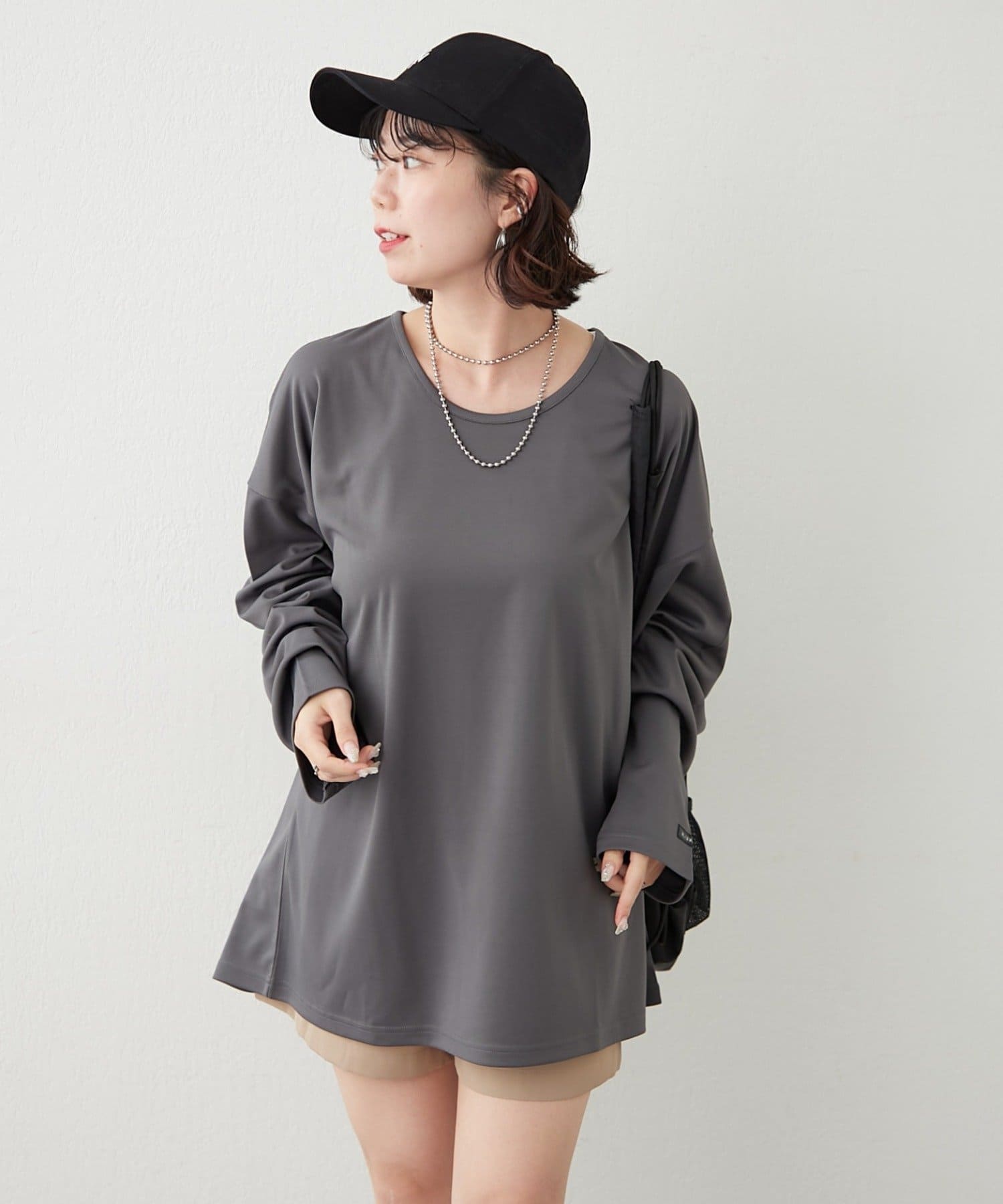 ・一枚着トップスとしてはもちろん、長めの丈感なのでニットやカーディガンにレイヤードしてチラ見せするスタイリングもおすすめです