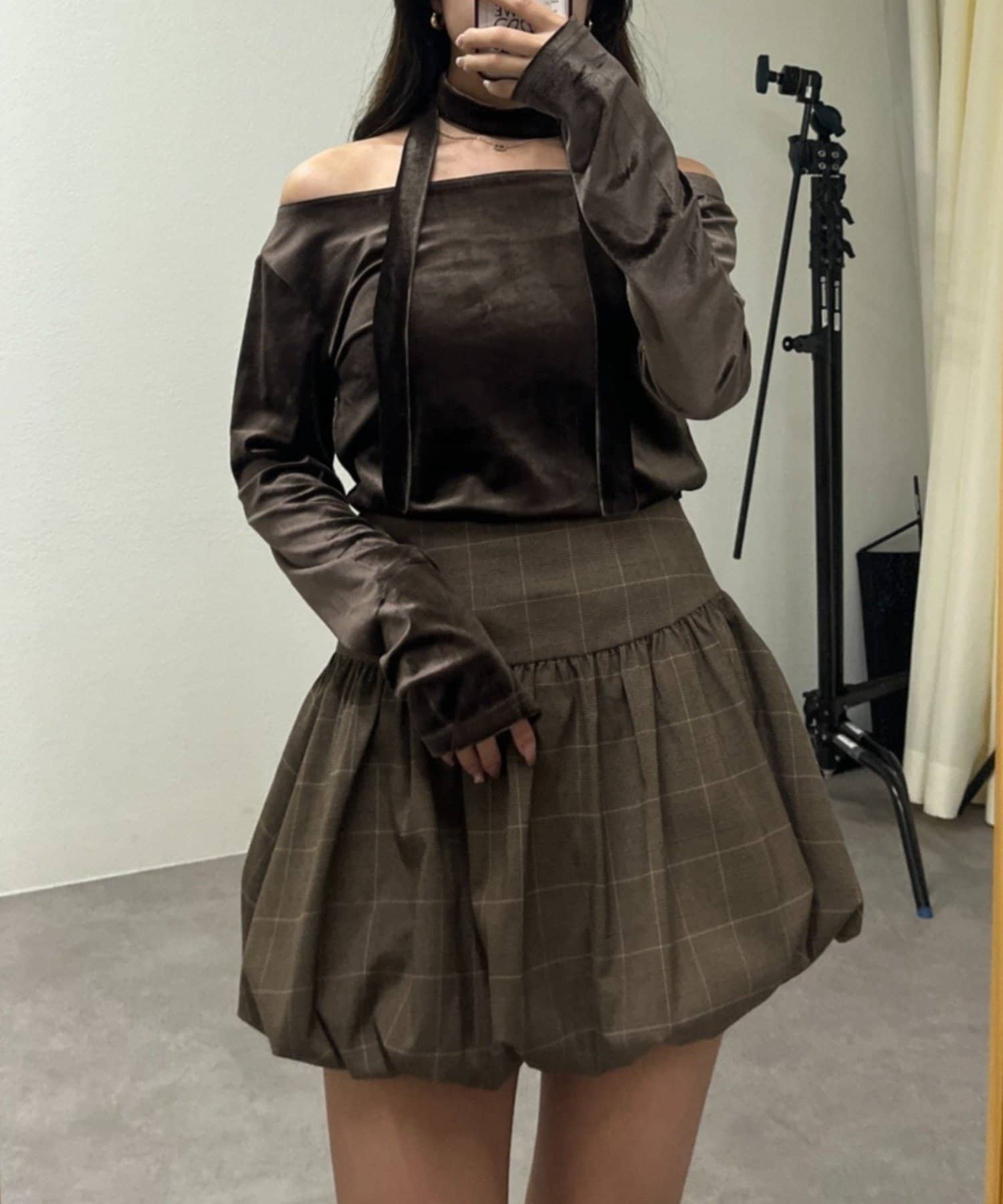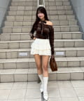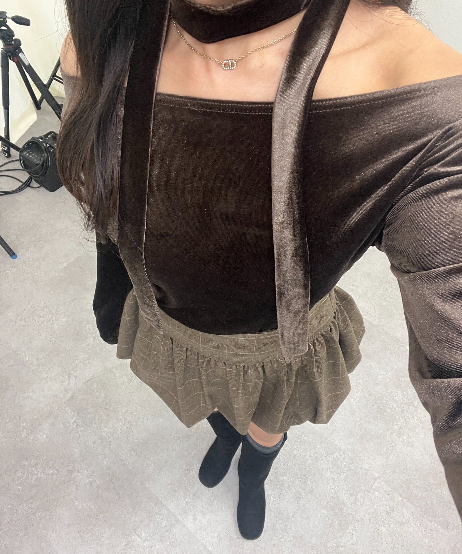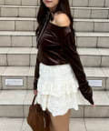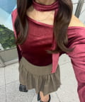 TOP > Remind me and forever > レディース > トップス > Tシャツ/カットソー > 【ゆず@reve.perle_セレクト】ベロア&ニットソーの2素材!オフショルトップス【新色追加!】