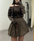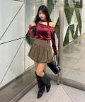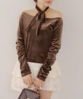 • Remind me and forever(リマインドミーアンドフォーエバー) 【ゆず@reve.perle_セレクト】ベロア&ニットソーの2素材!オフショルトップス【新色追加!】