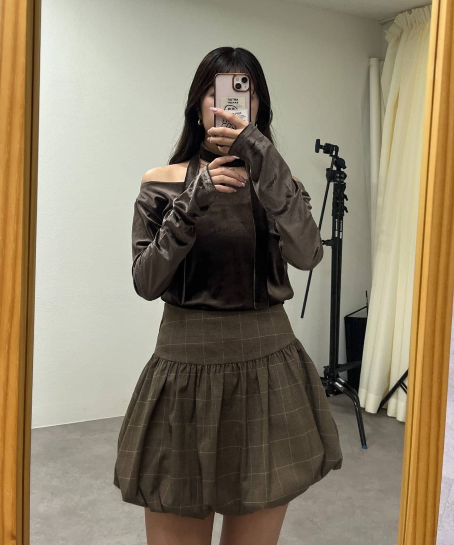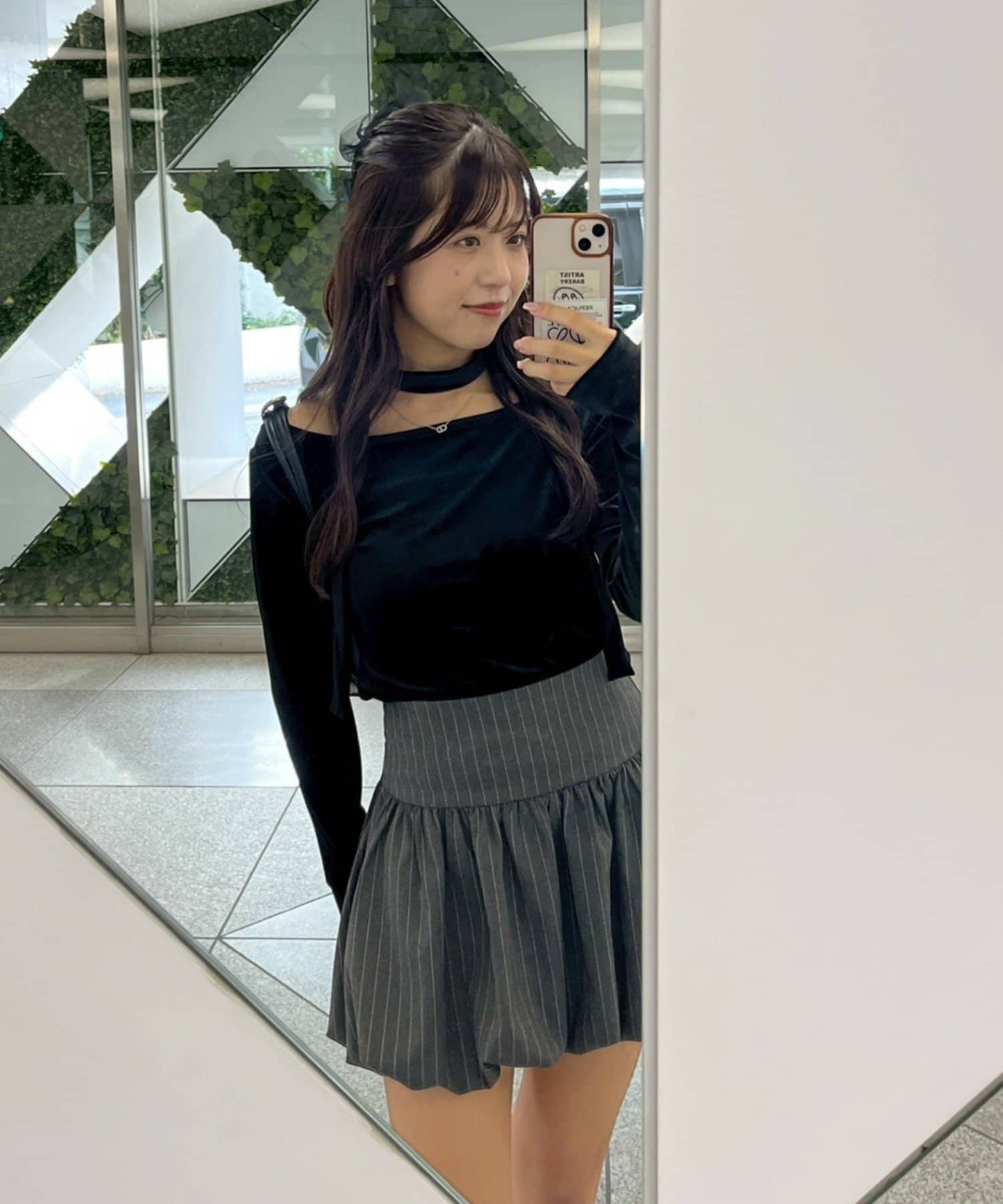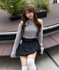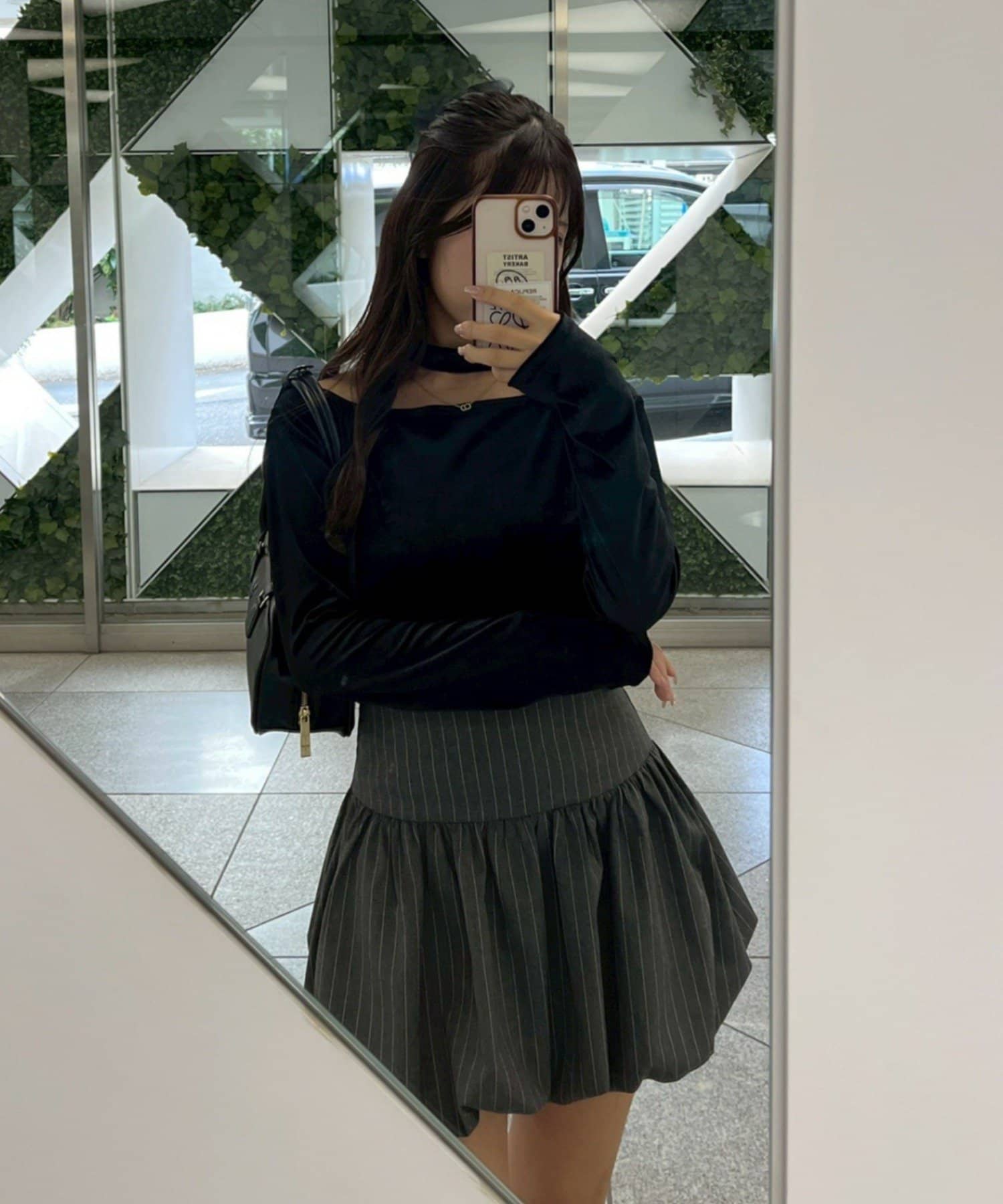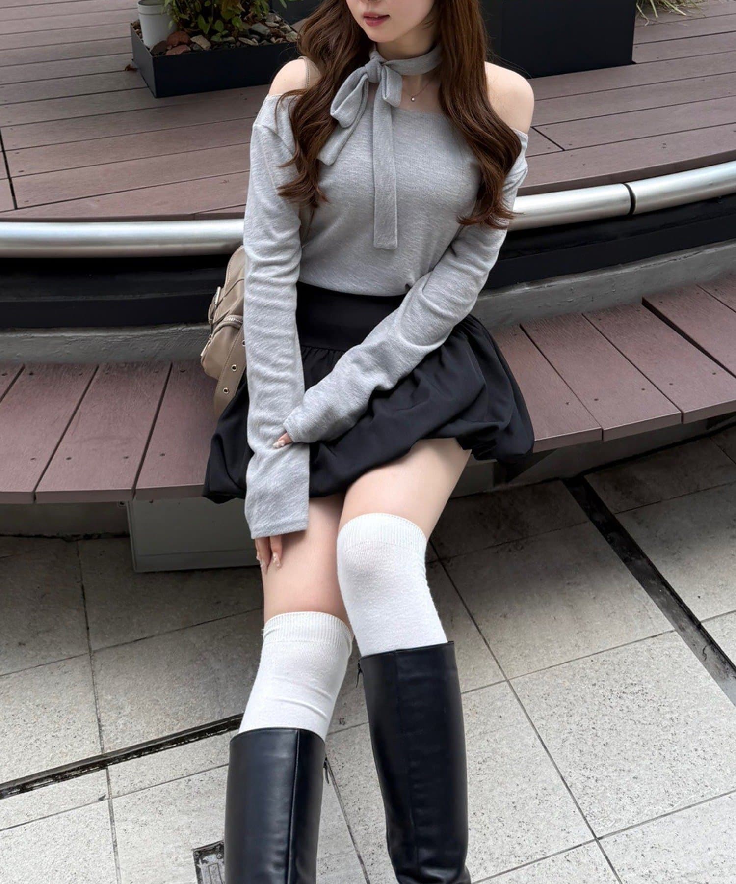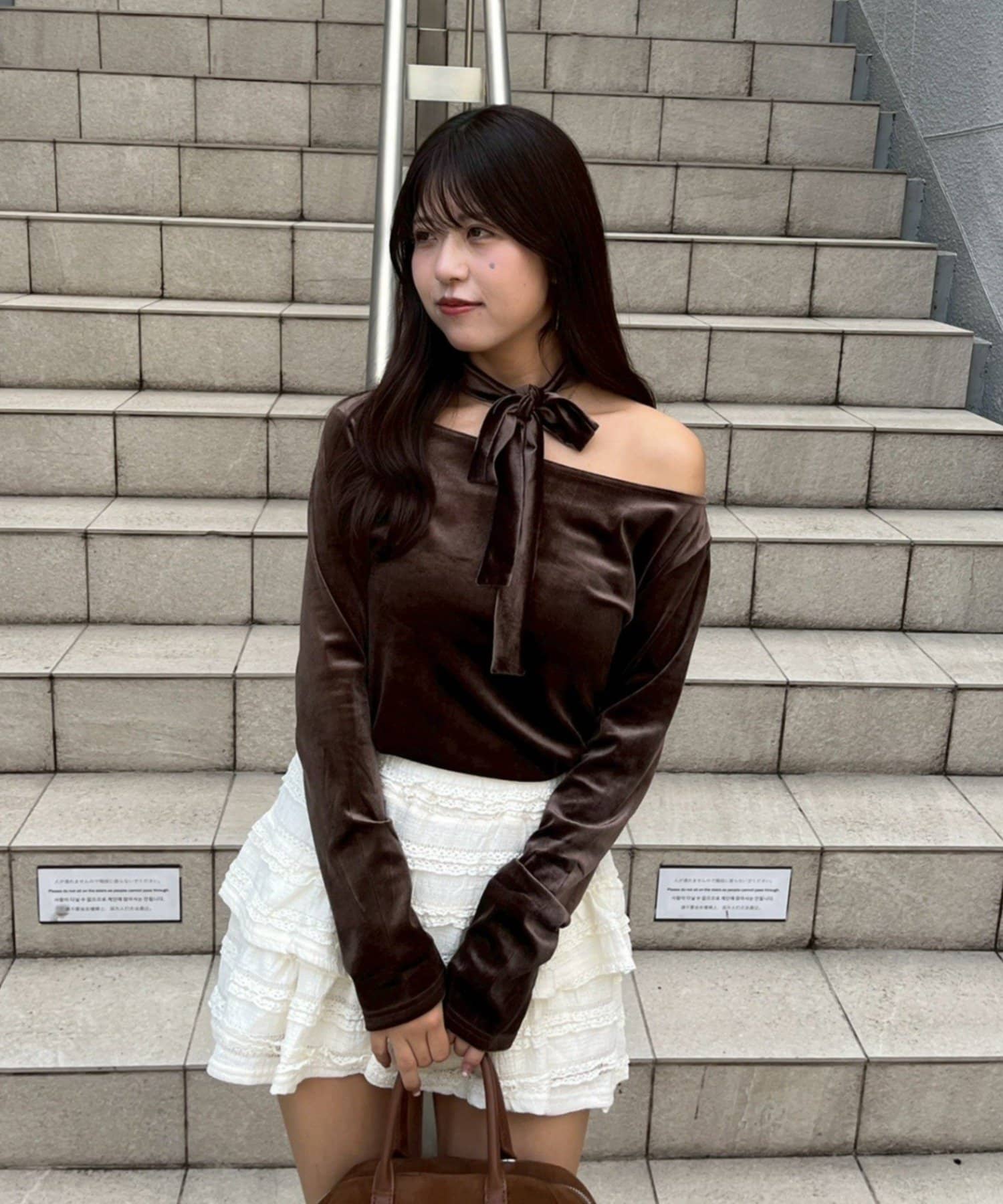 着用感:骨格ナチュラルのコンプレックスである首周りの骨感を綺麗にカバーしてくれます!サラッと落ち着いたシルエットだけどチョーカー付きでデザイン性のあるトップスです!