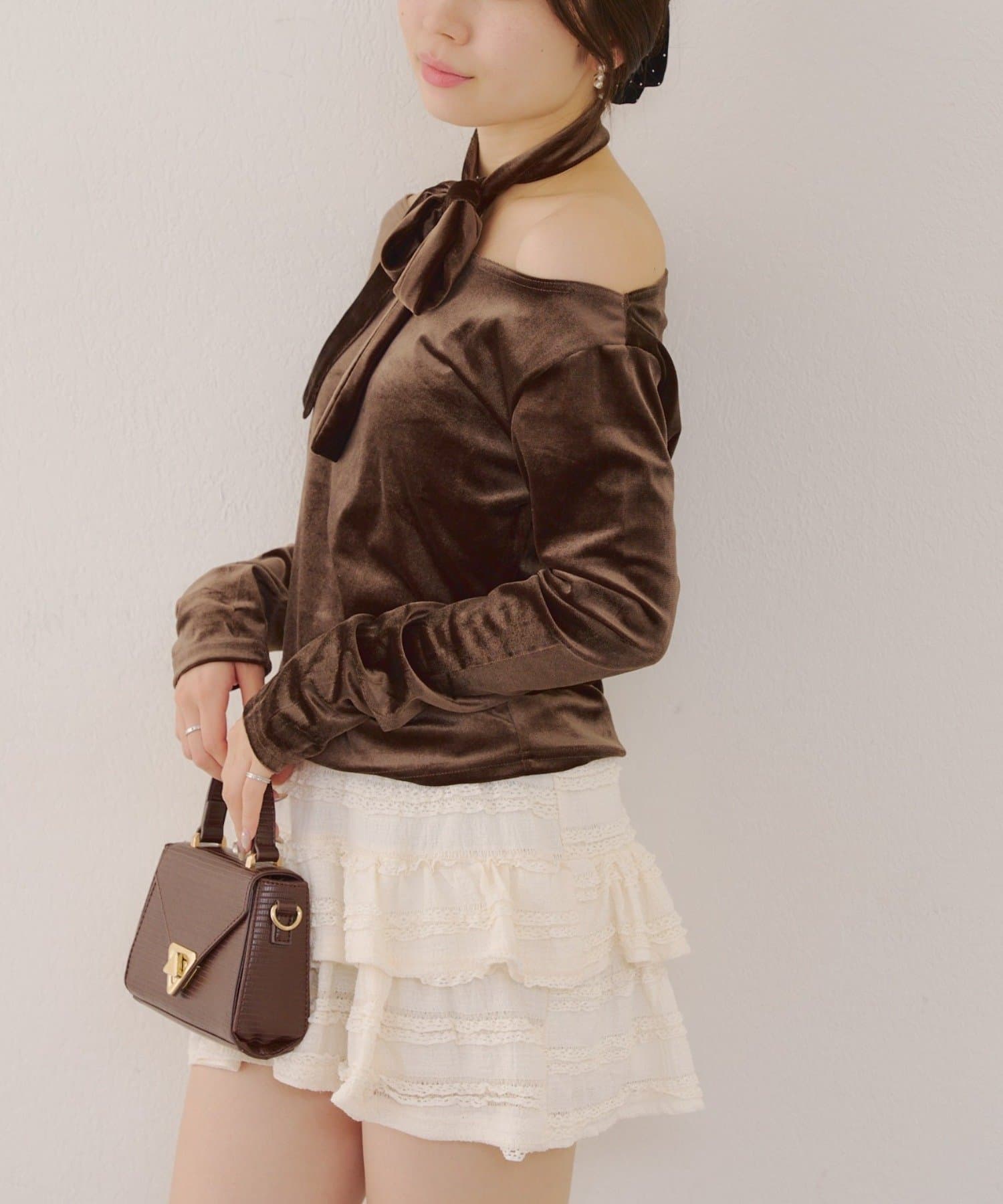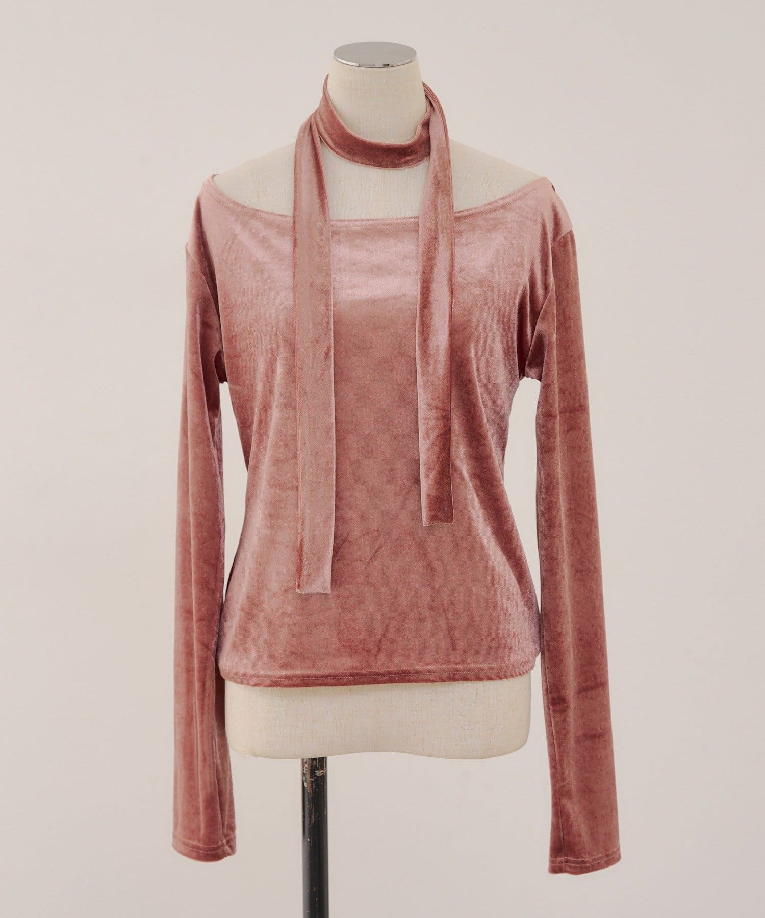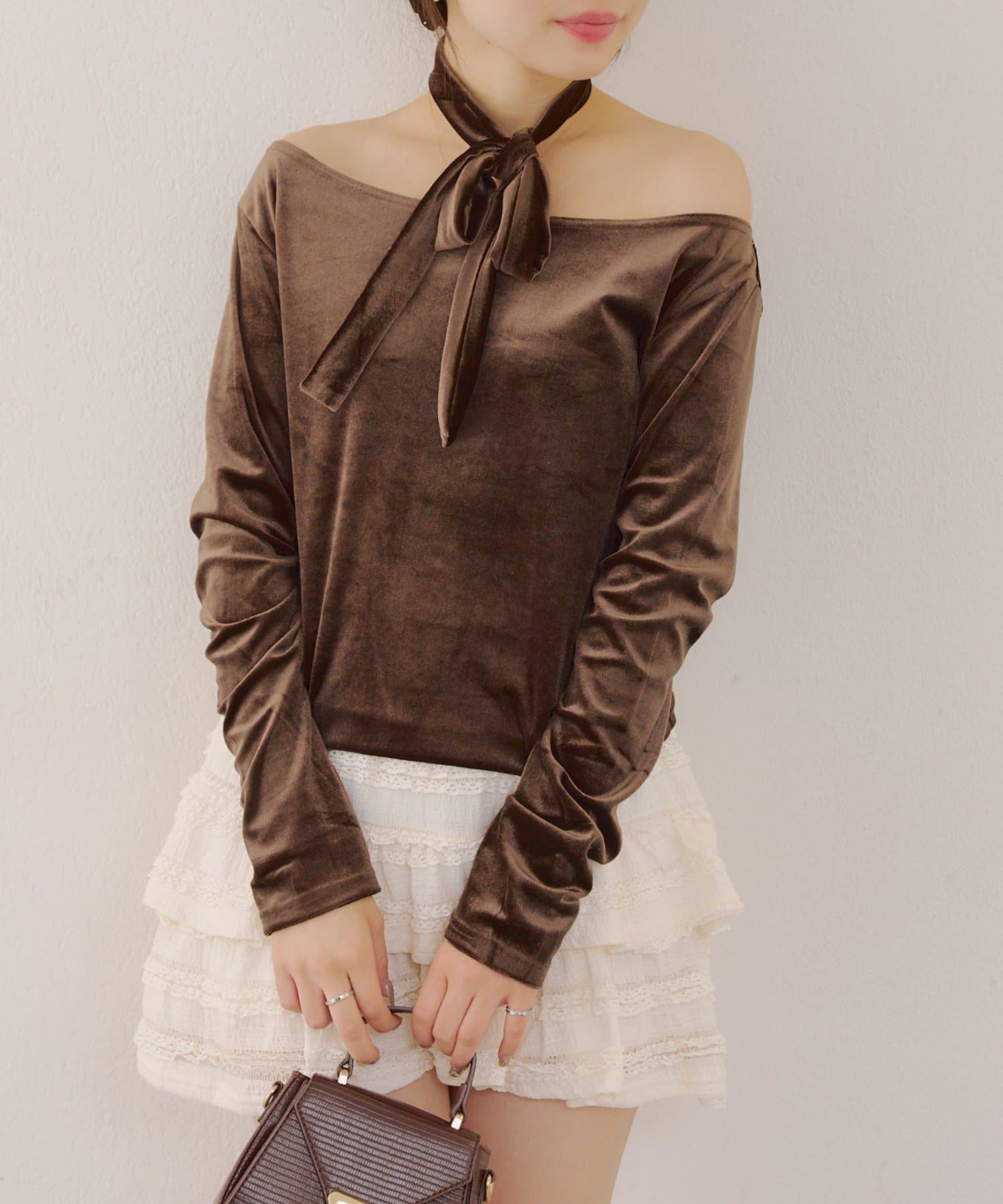 【ゆず@reve.perle_セレクト】ベロア&ニットソーの2素材!オフショルトップス【新色追加!】