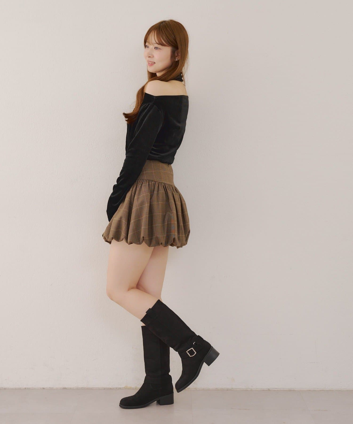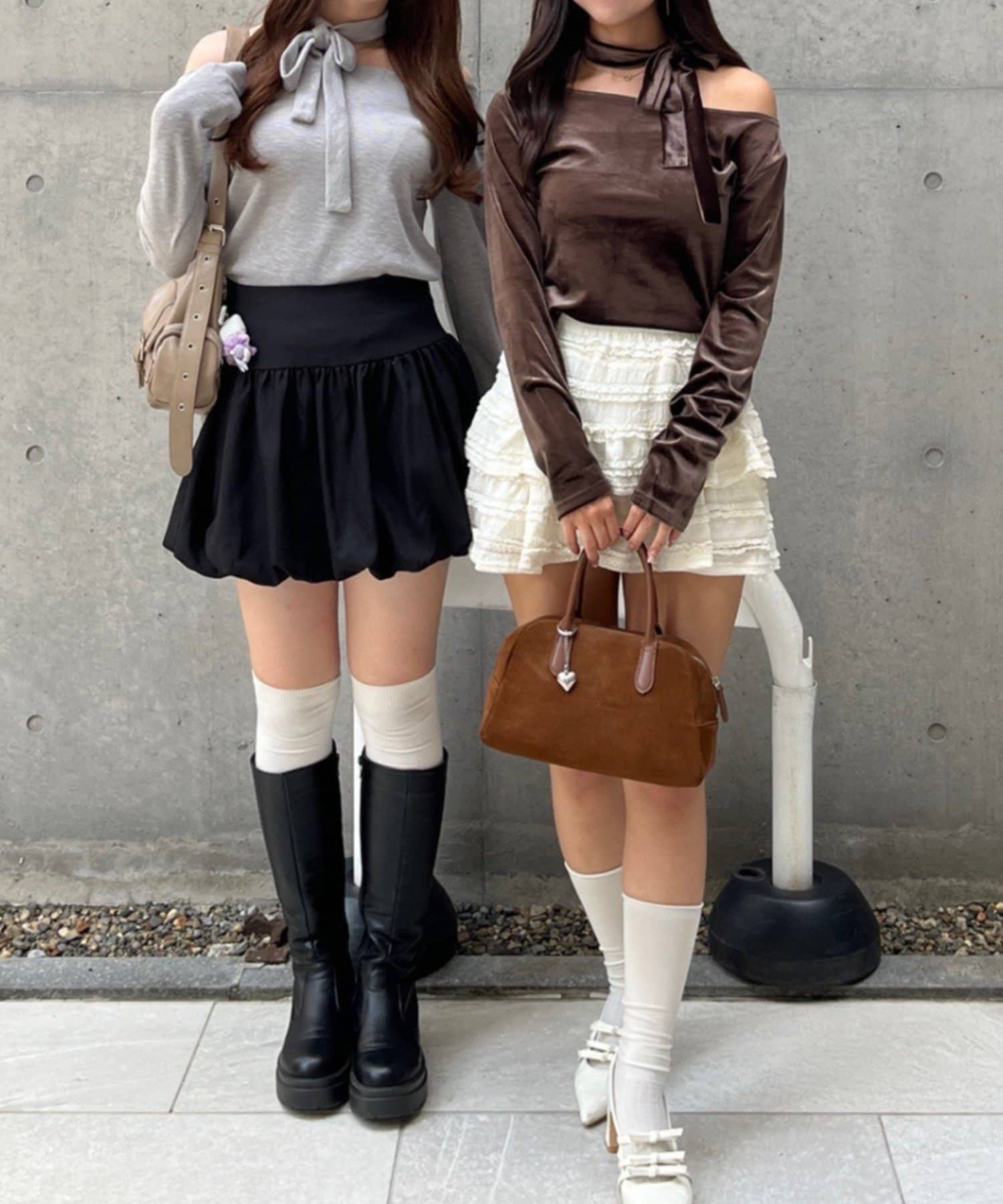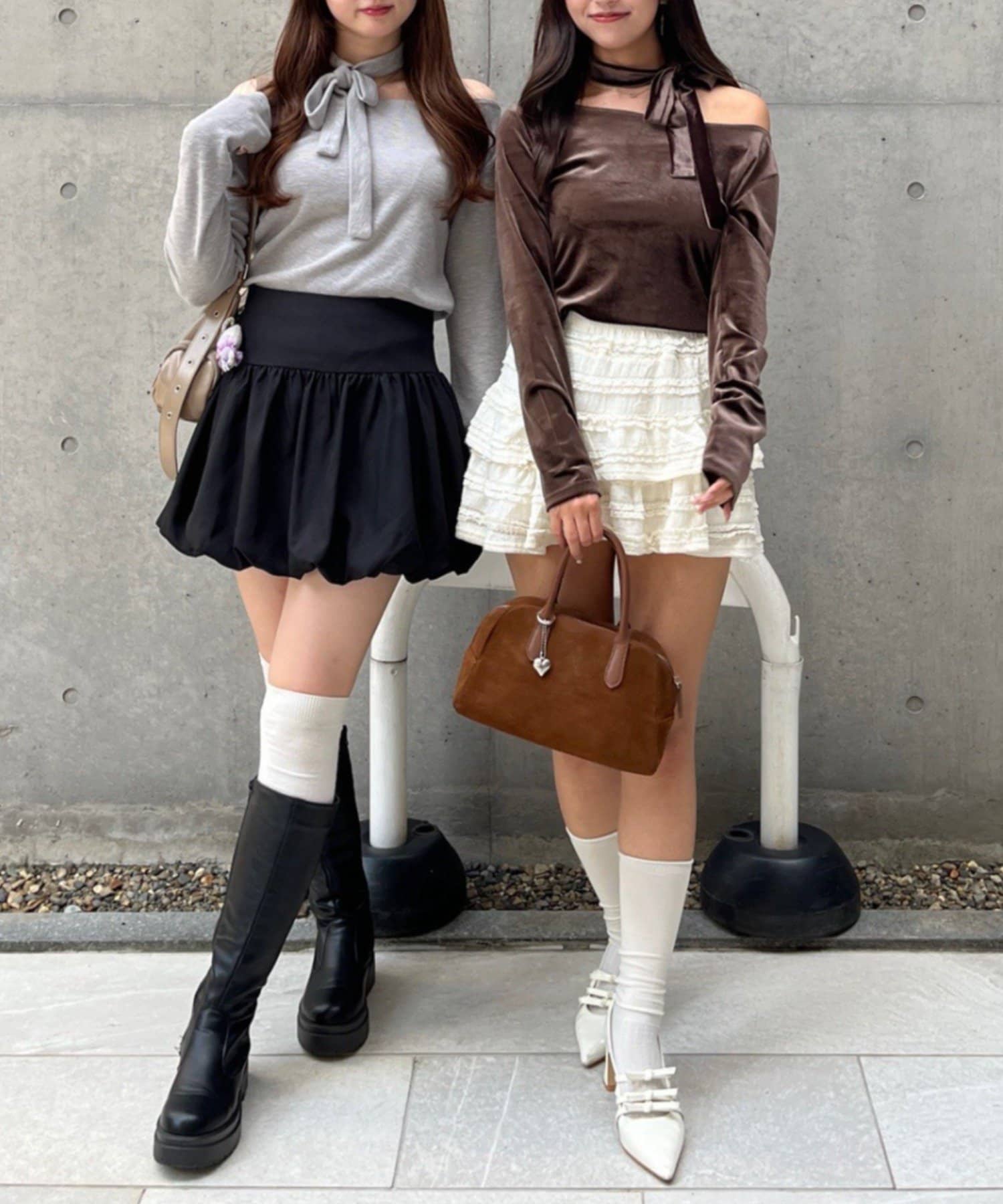 ・ピンク・ブラウン・ブラックはベロア素材、グレーはニットとカットソーが融合されたニットソー素材でご用意しました♡