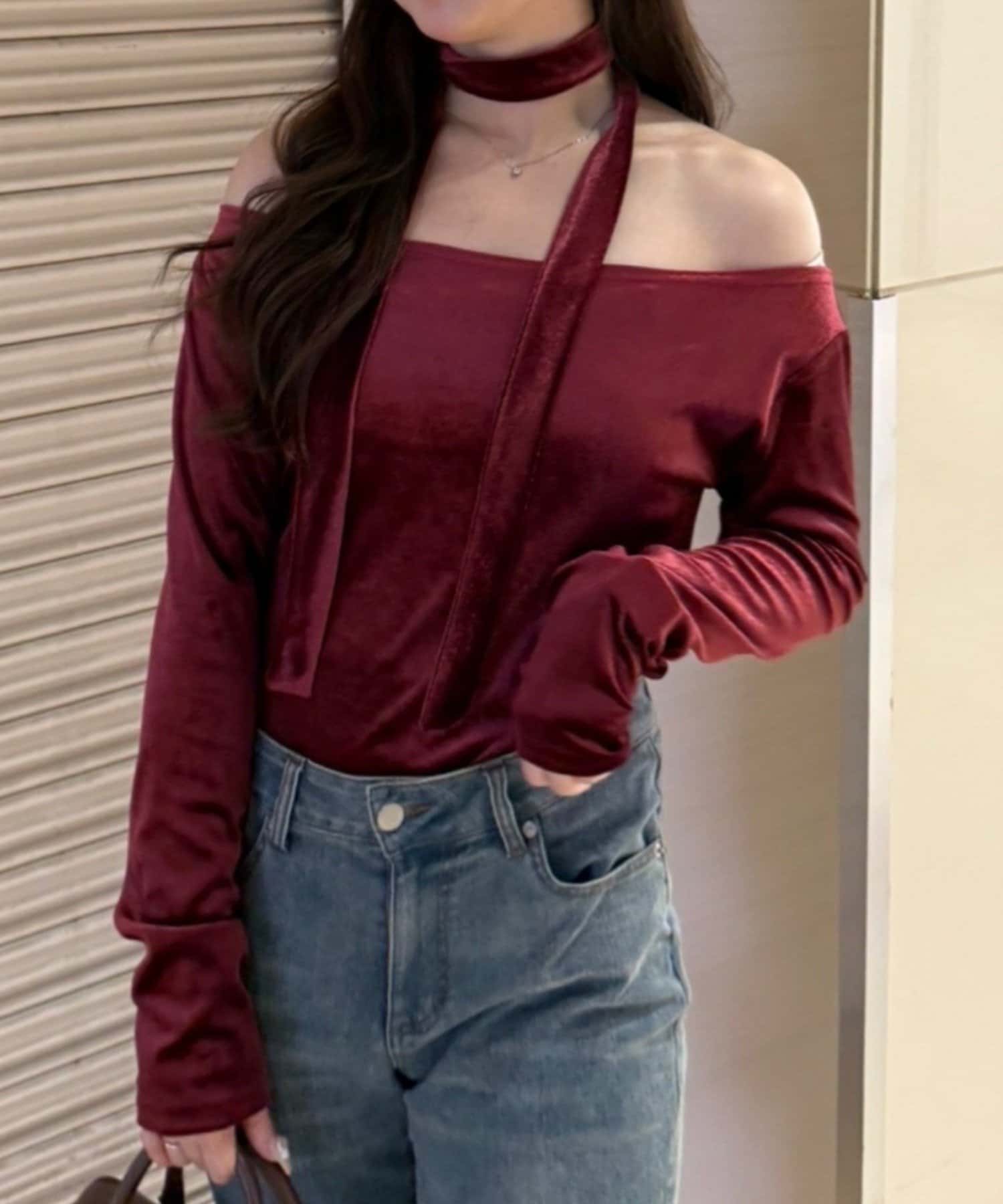 ワンショル・オフショルとしても着れるチョーカー付きトップス!