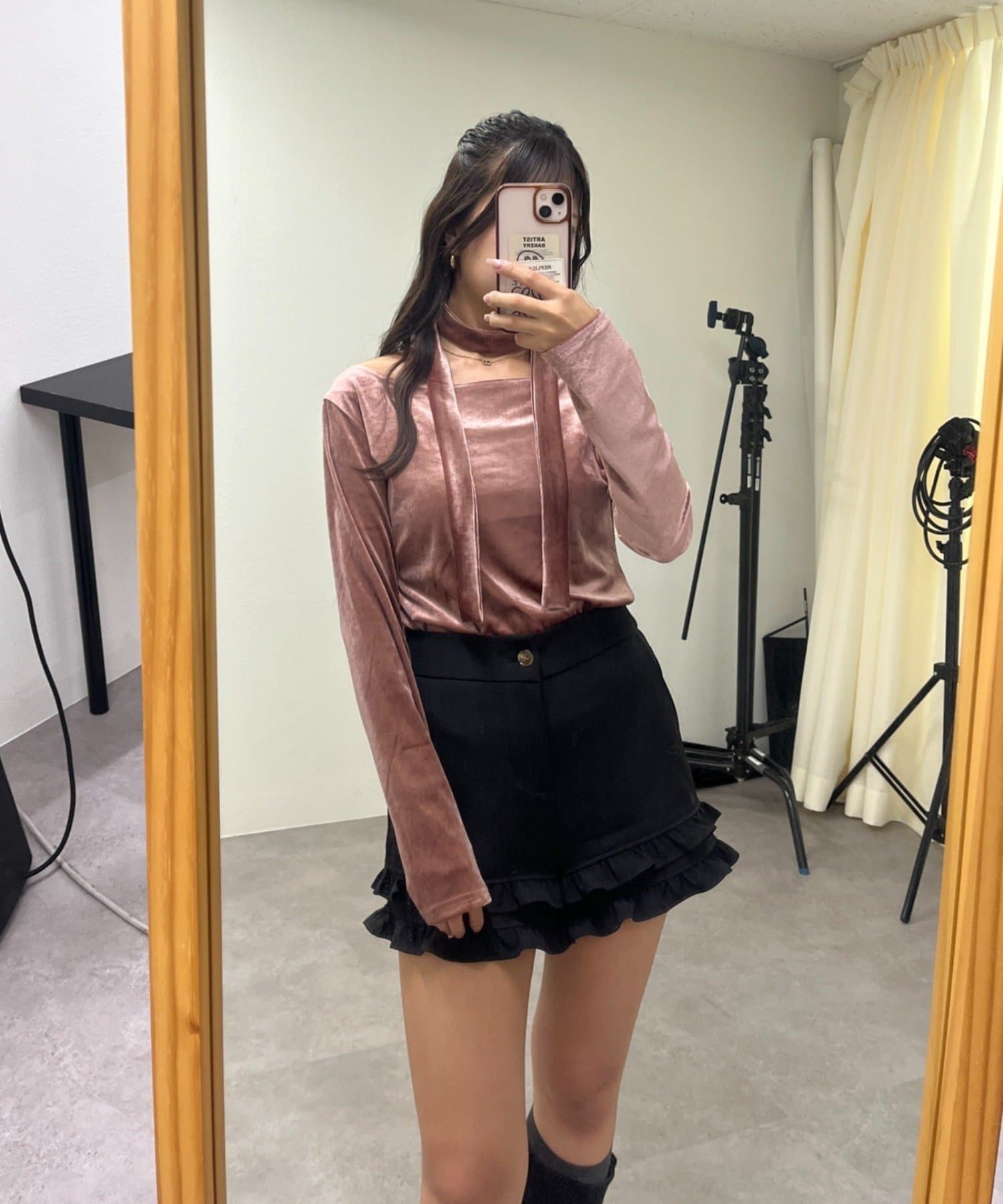 ・ピンク・ブラウン・ブラックはベロア素材、グレーはニットとカットソーが融合されたニットソー素材でご用意しました♡