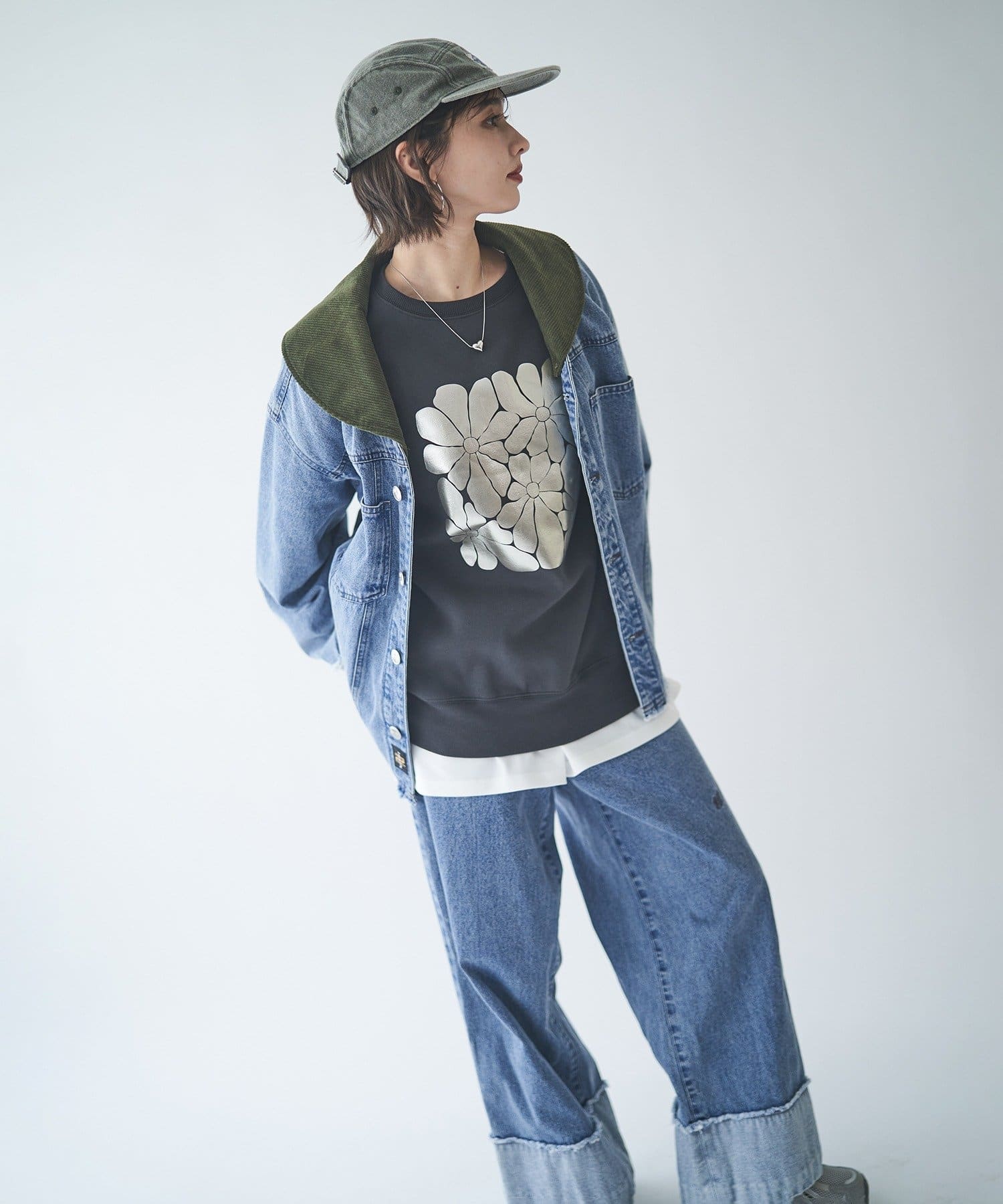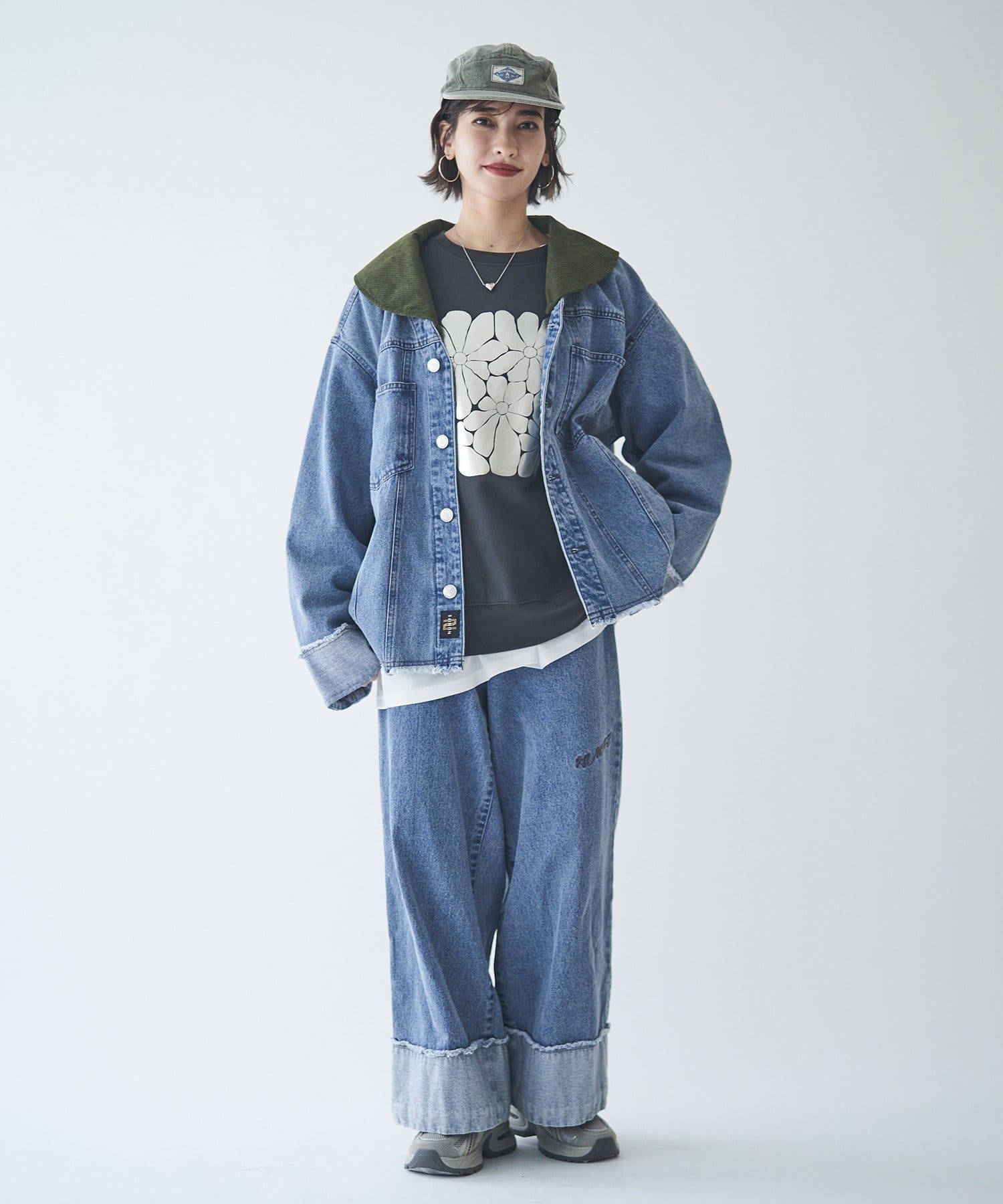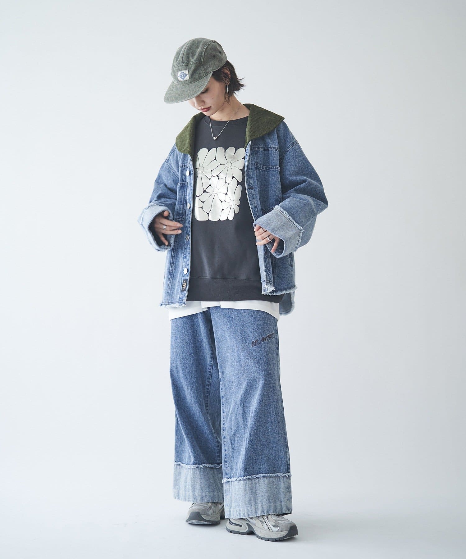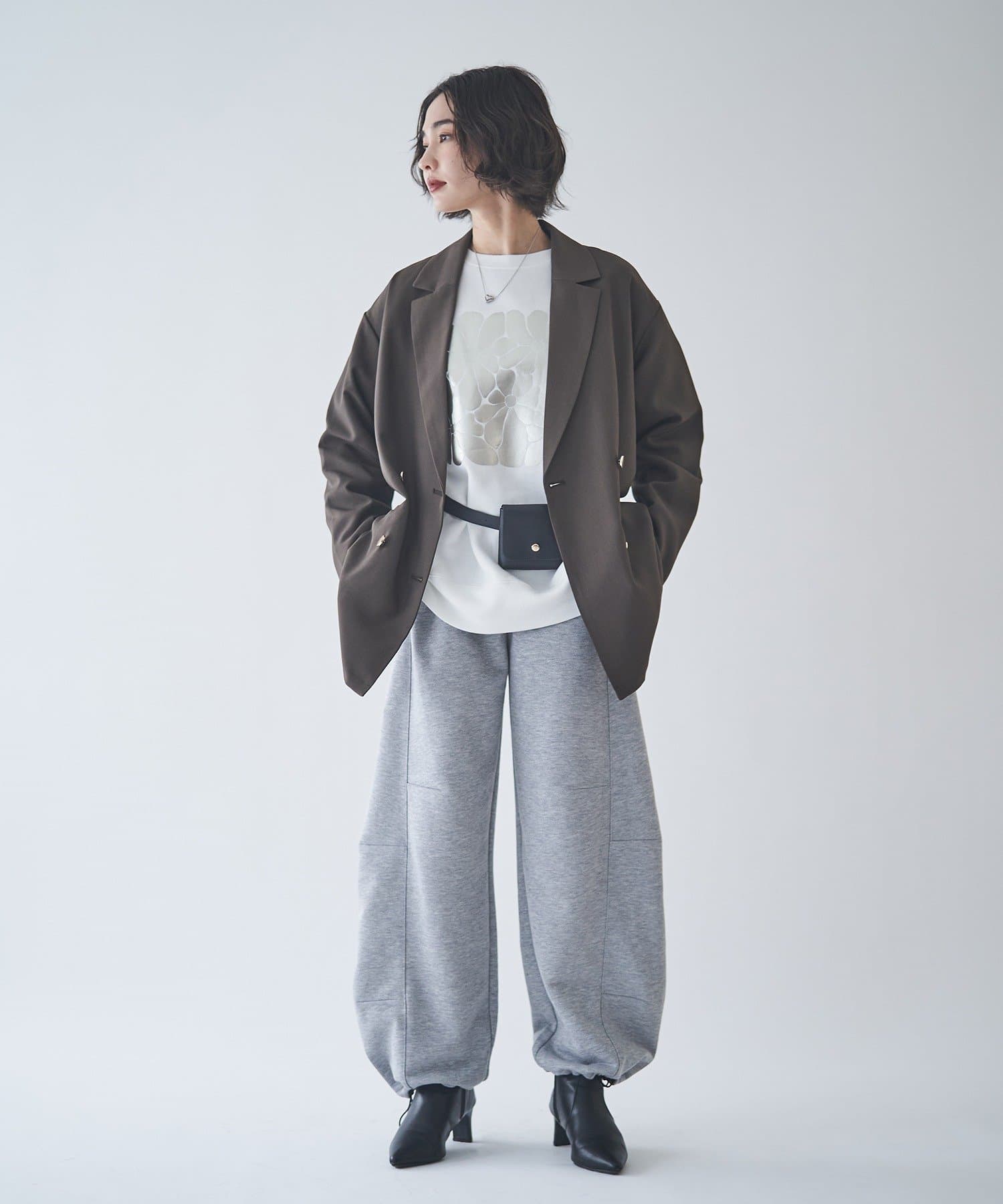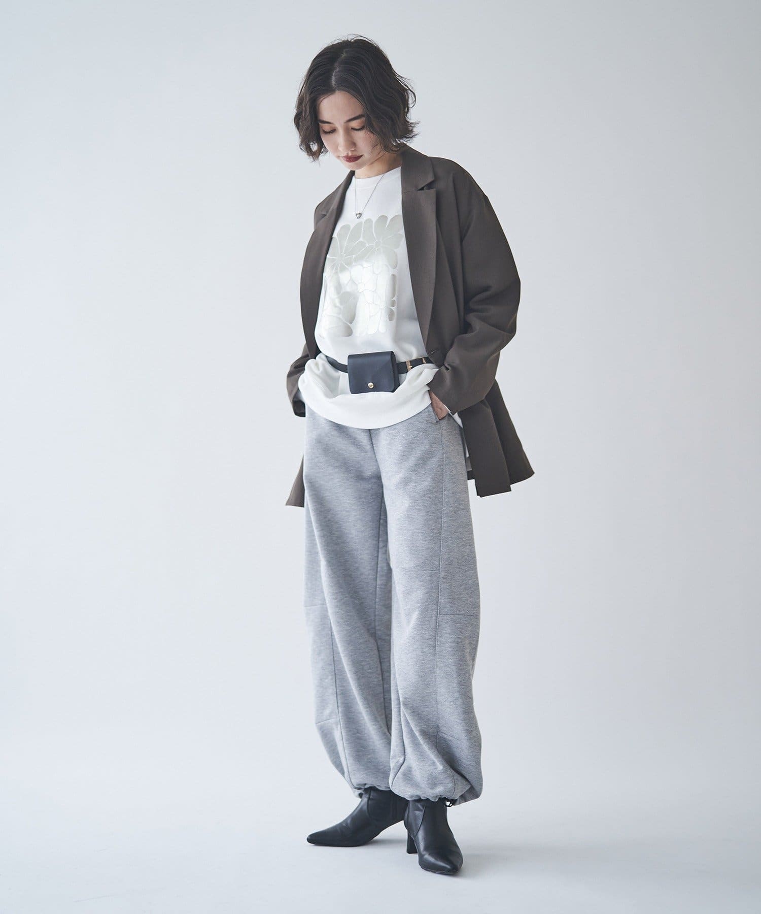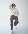 ・ゆったりとしたシルエットなので、ボトムスはシンプルですっきりとしたアイテムが好相性◎