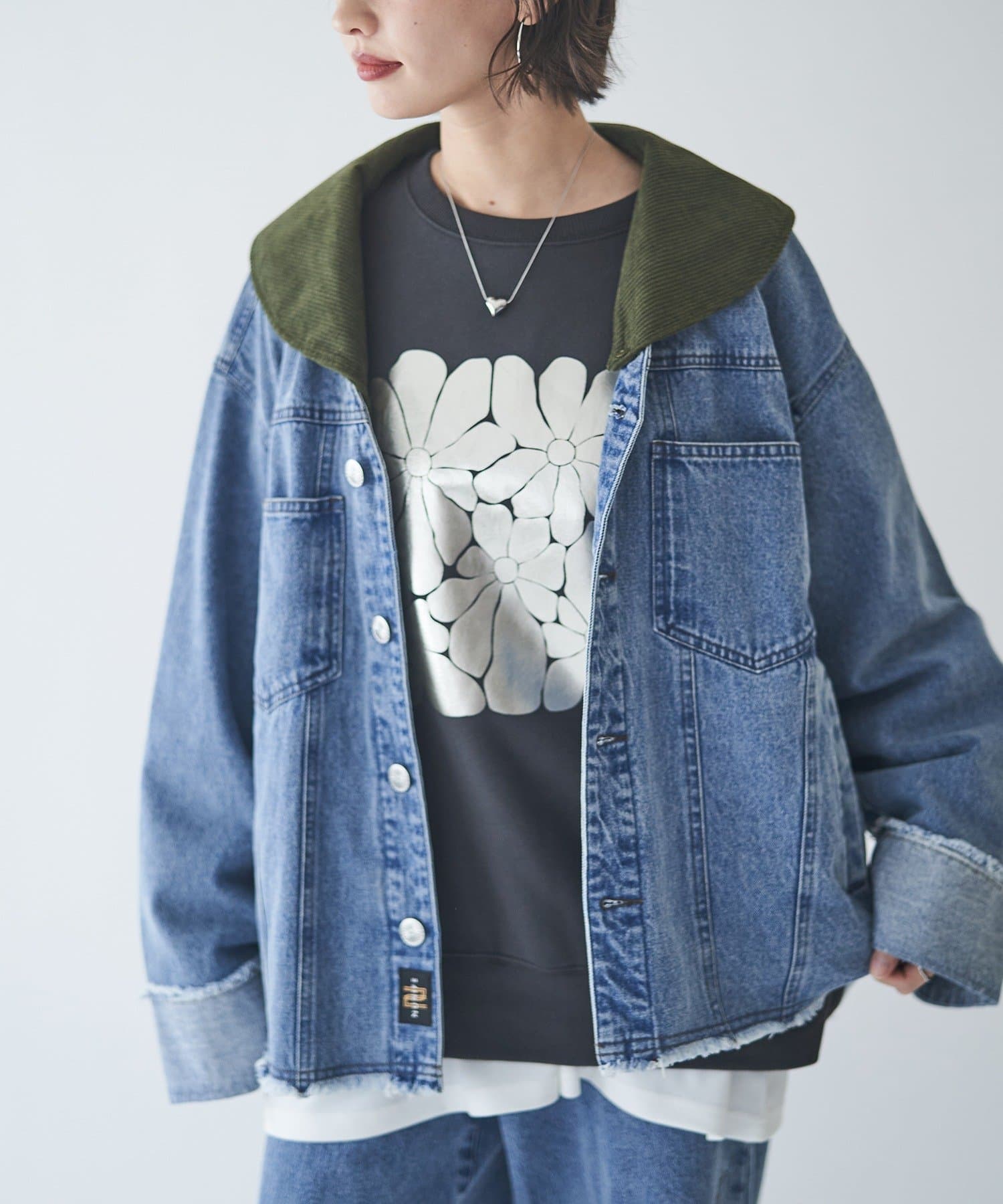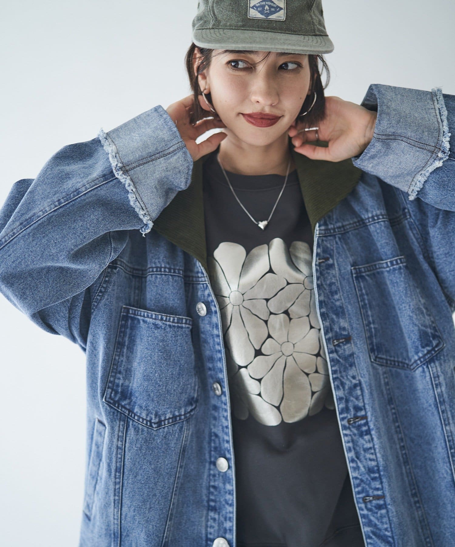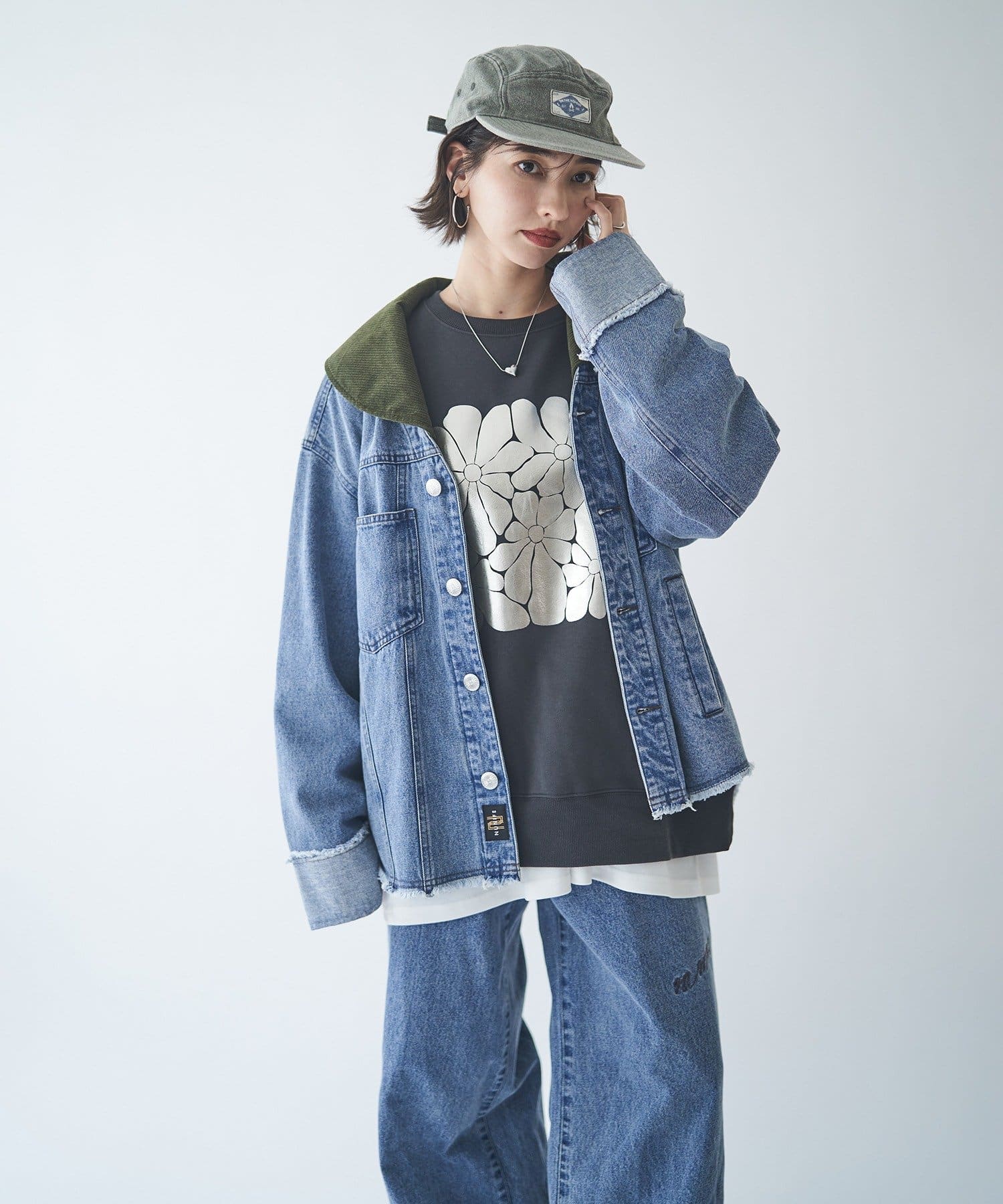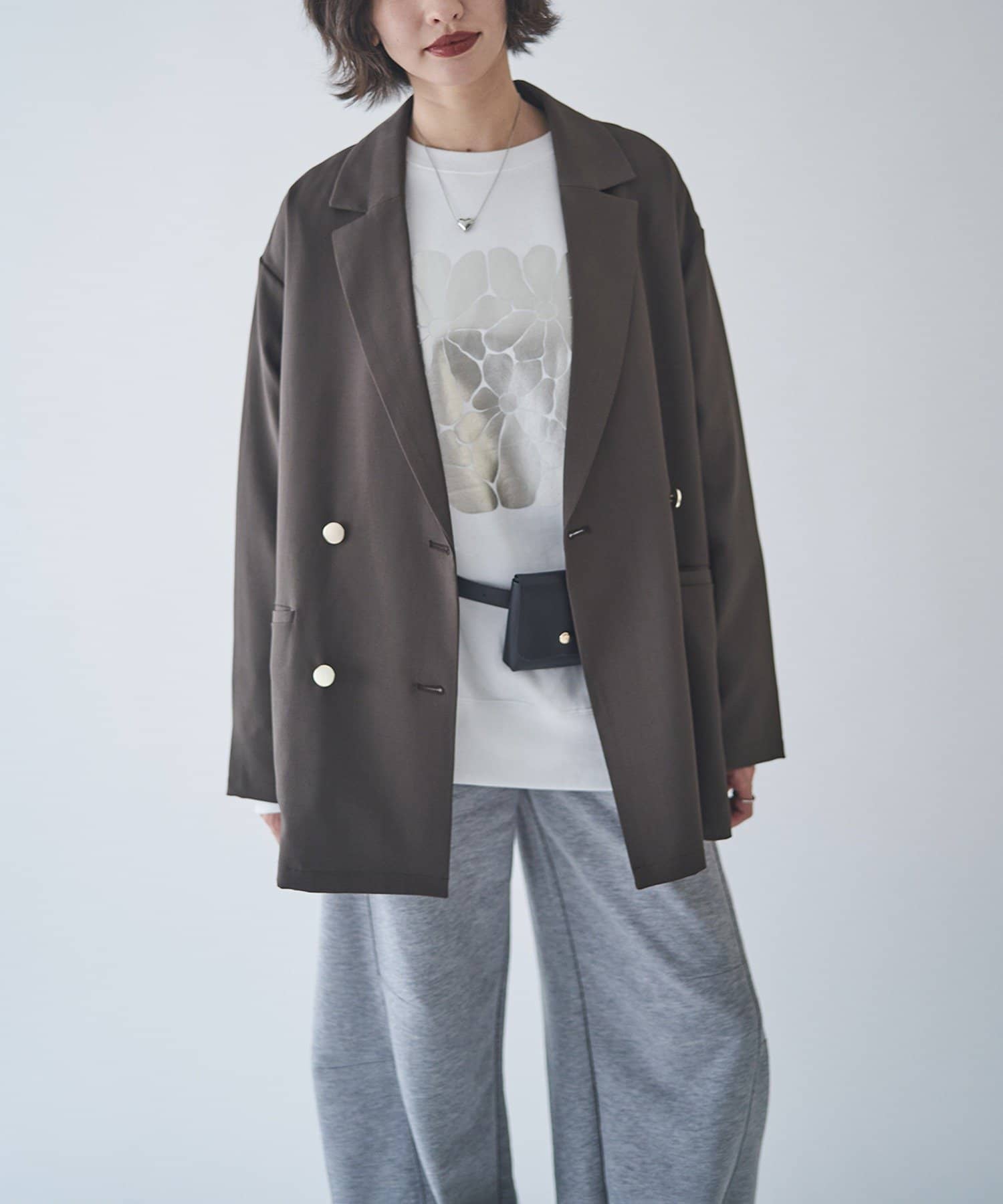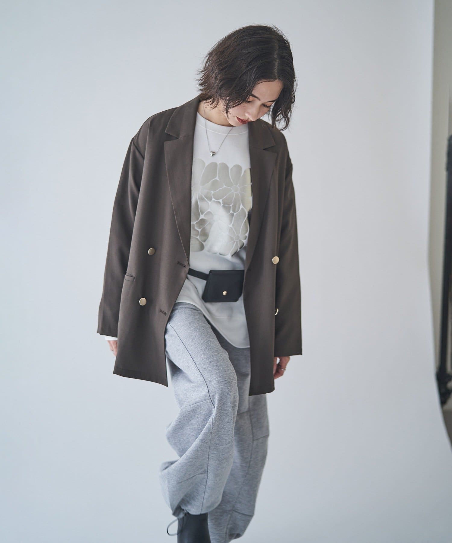 ・ゆったりとしたシルエットなので、ボトムスはシンプルですっきりとしたアイテムが好相性◎