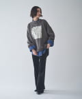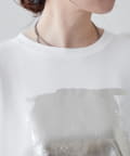 ・目を惹く箔プリントは、アウターに合わせても着映えする1枚。