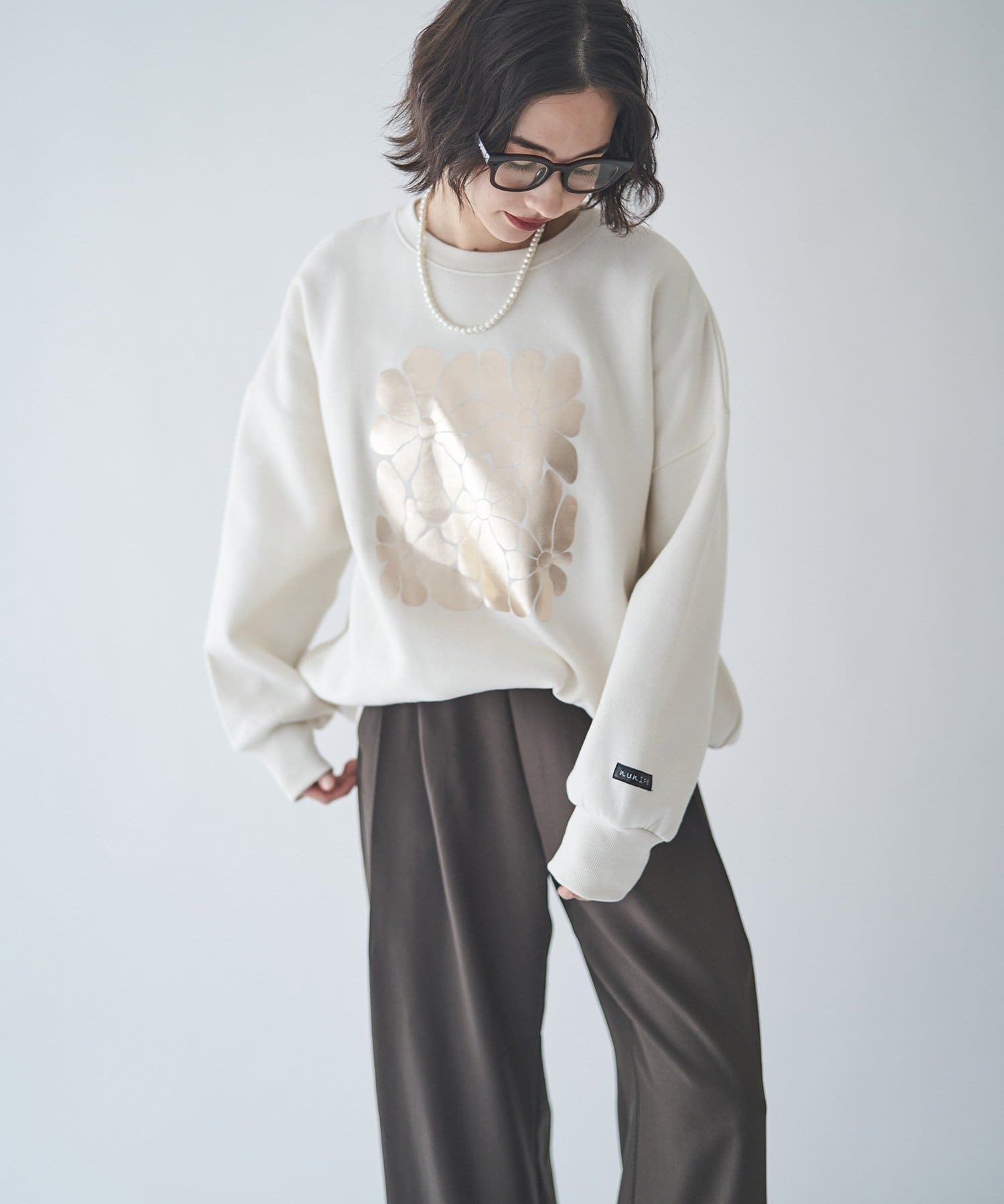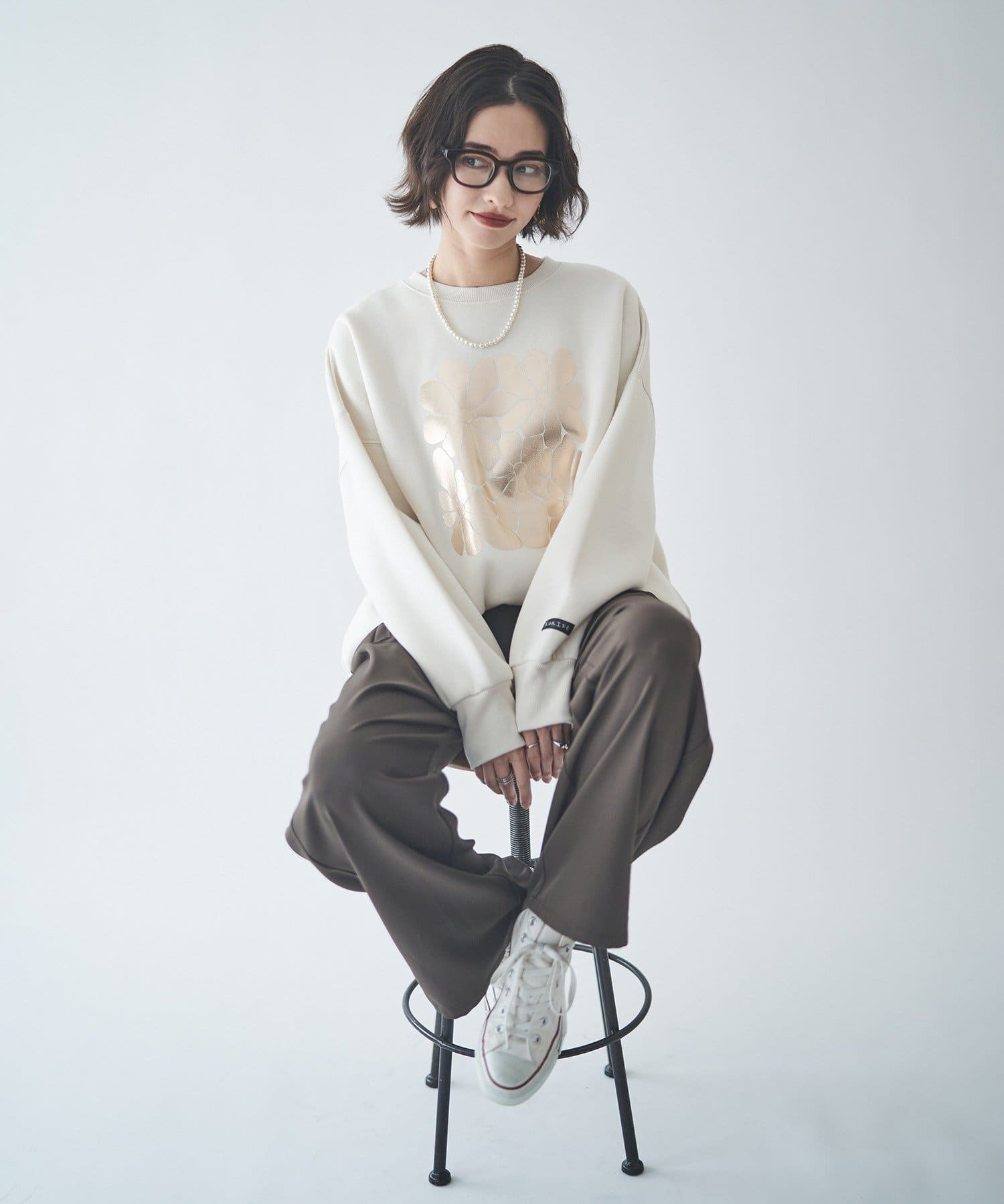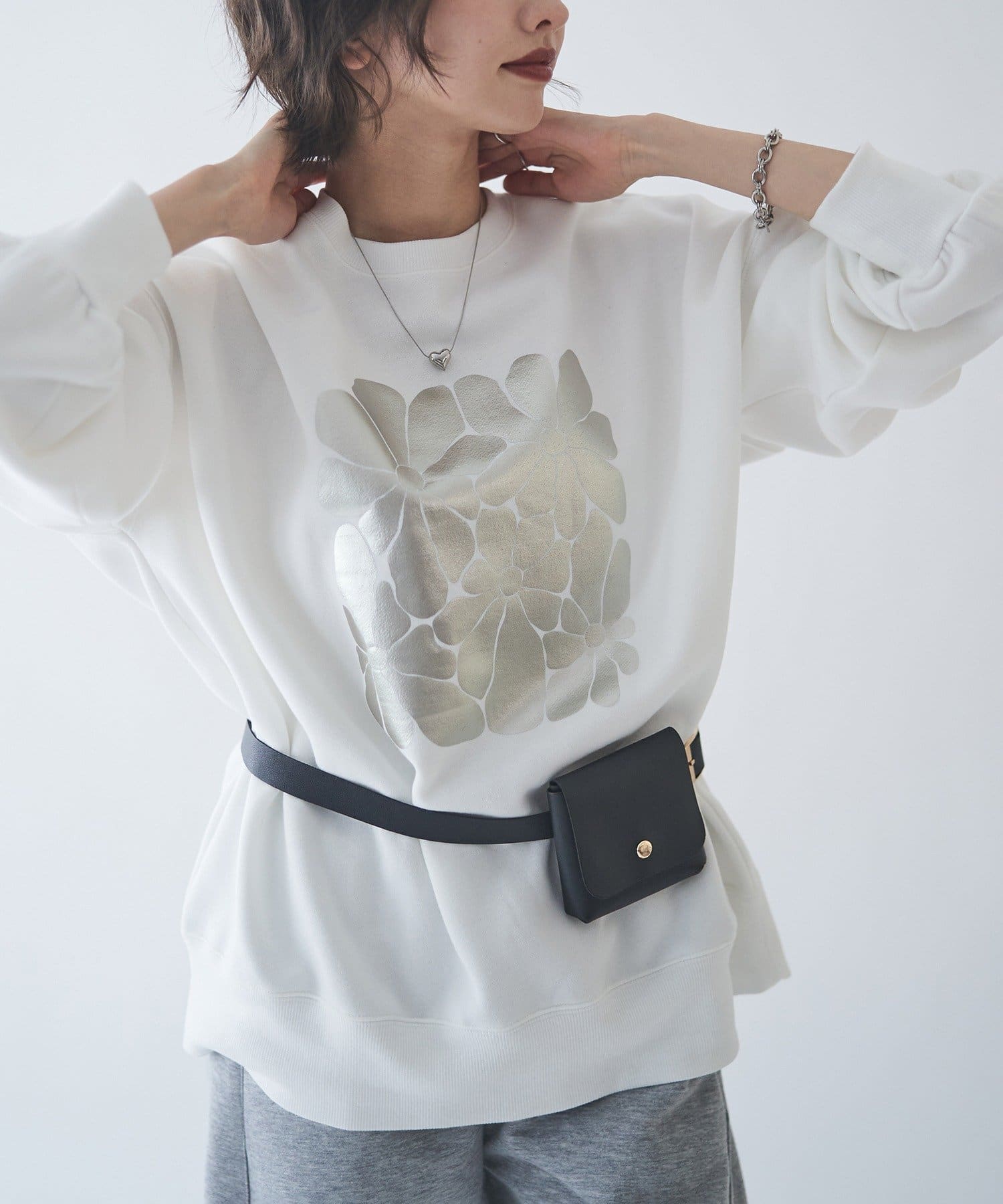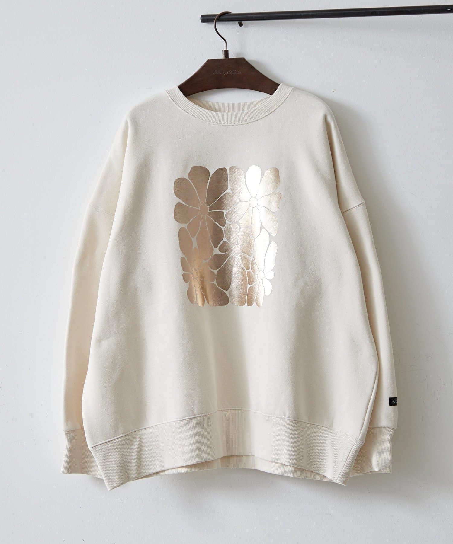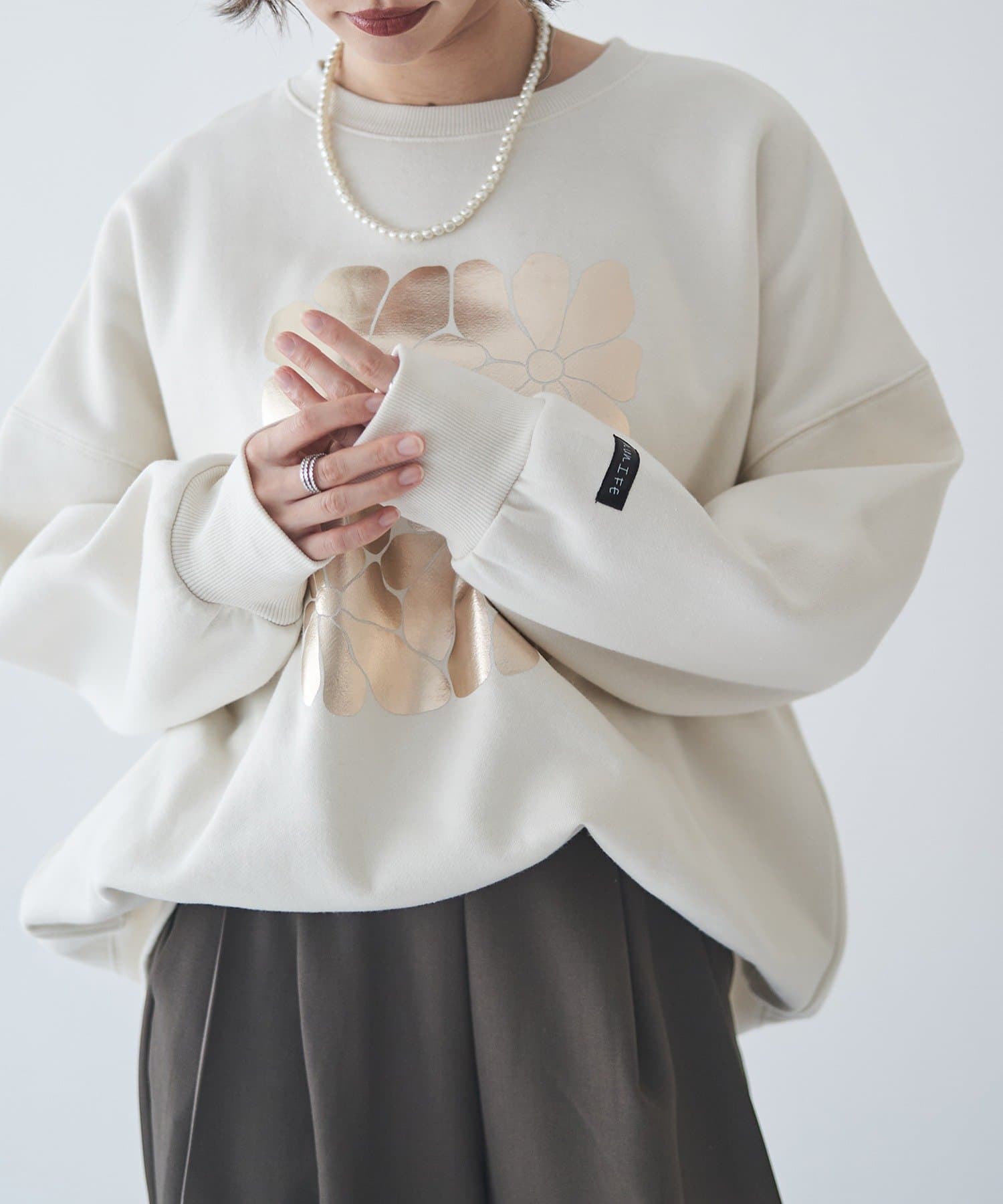 ・フロントには箔プリントが施されており、キレイめカジュアルなおとなかわいいスタイリングがかないます。
