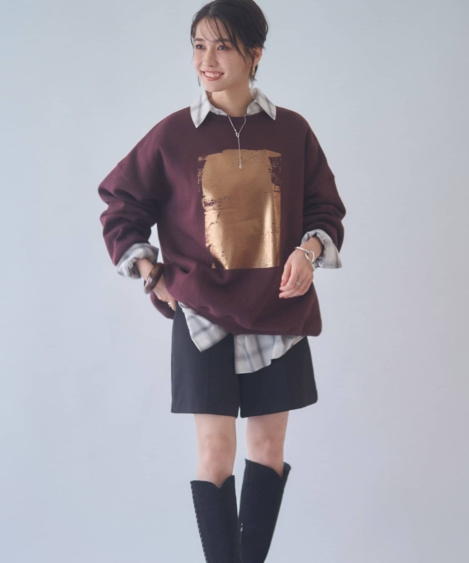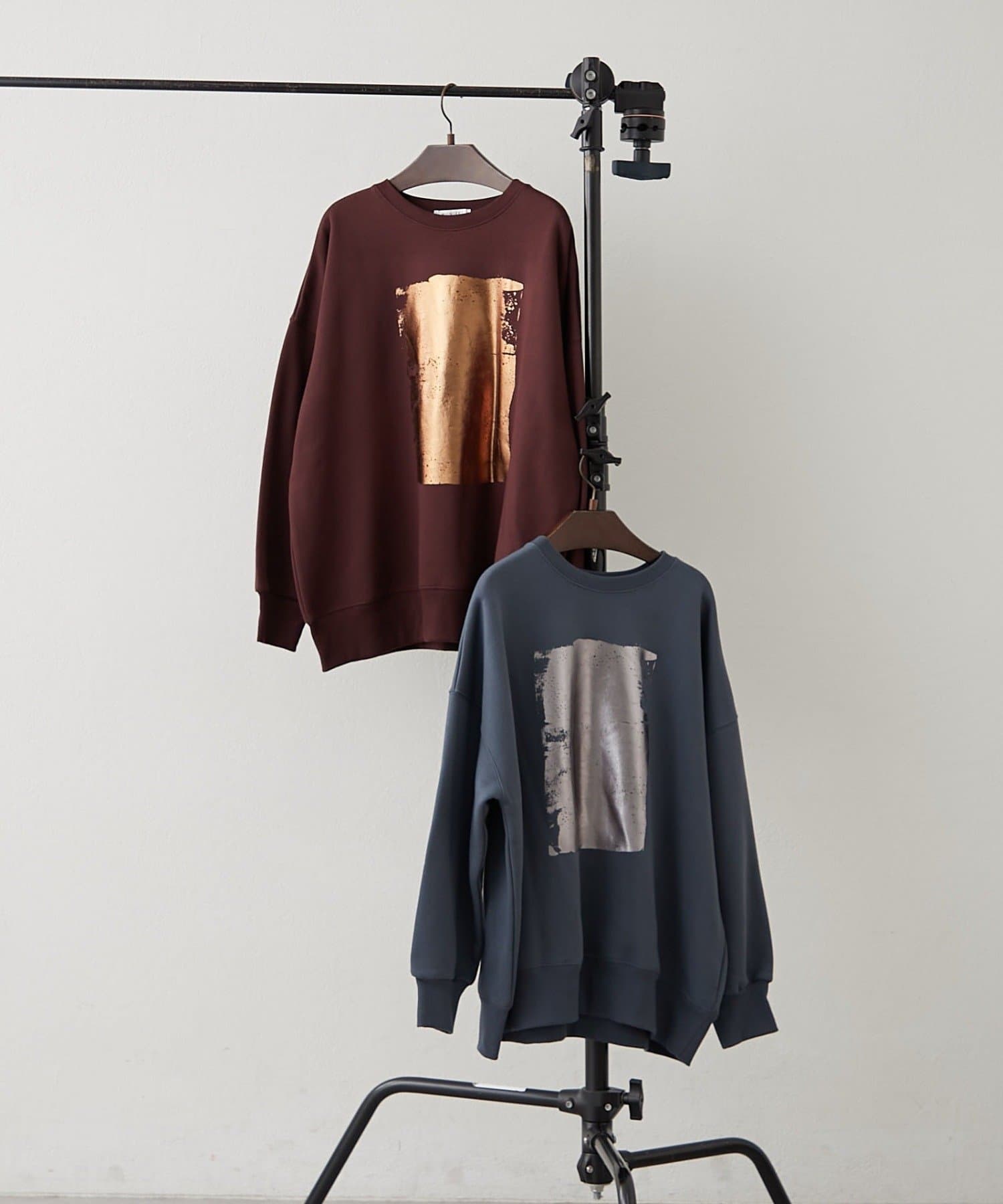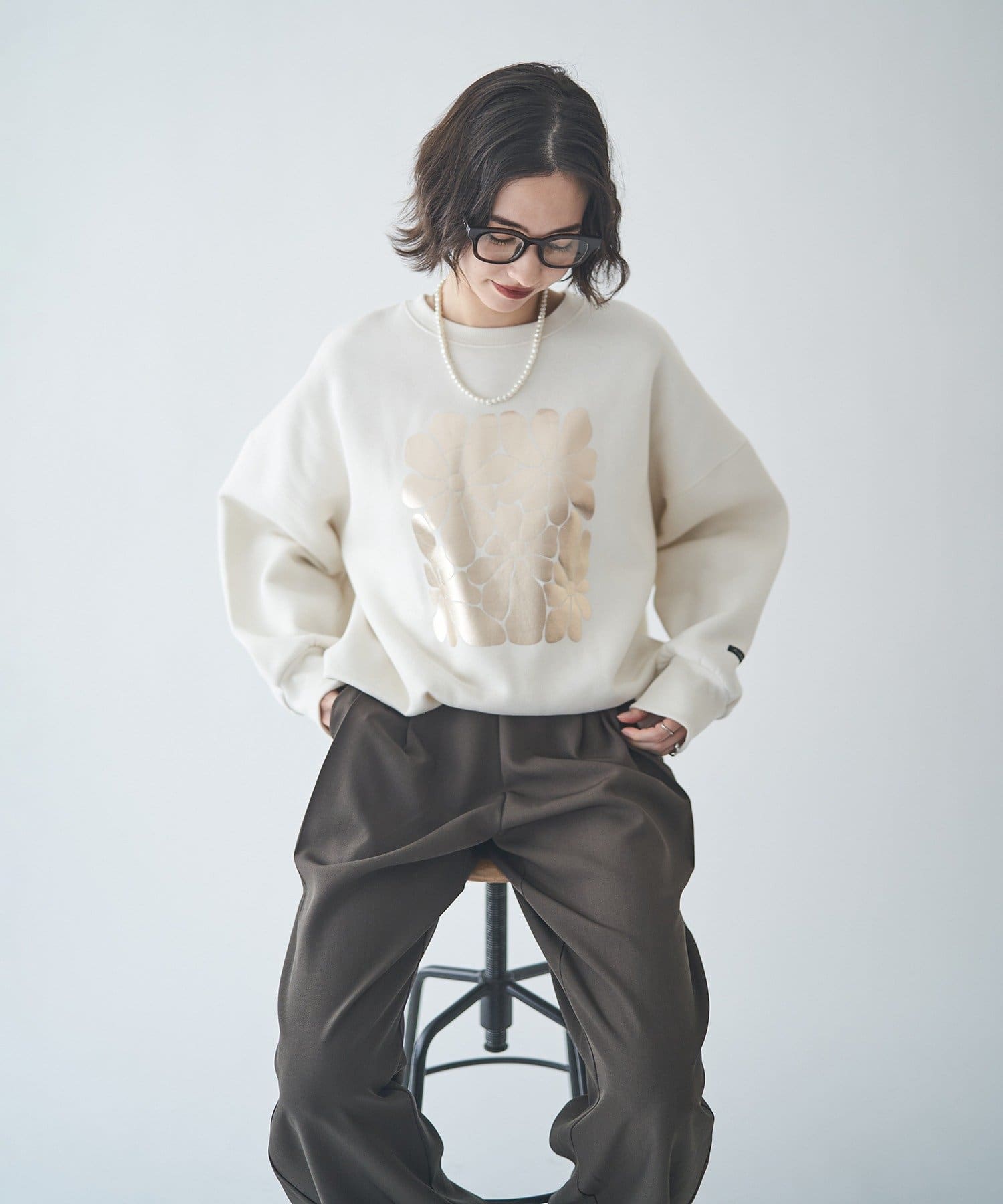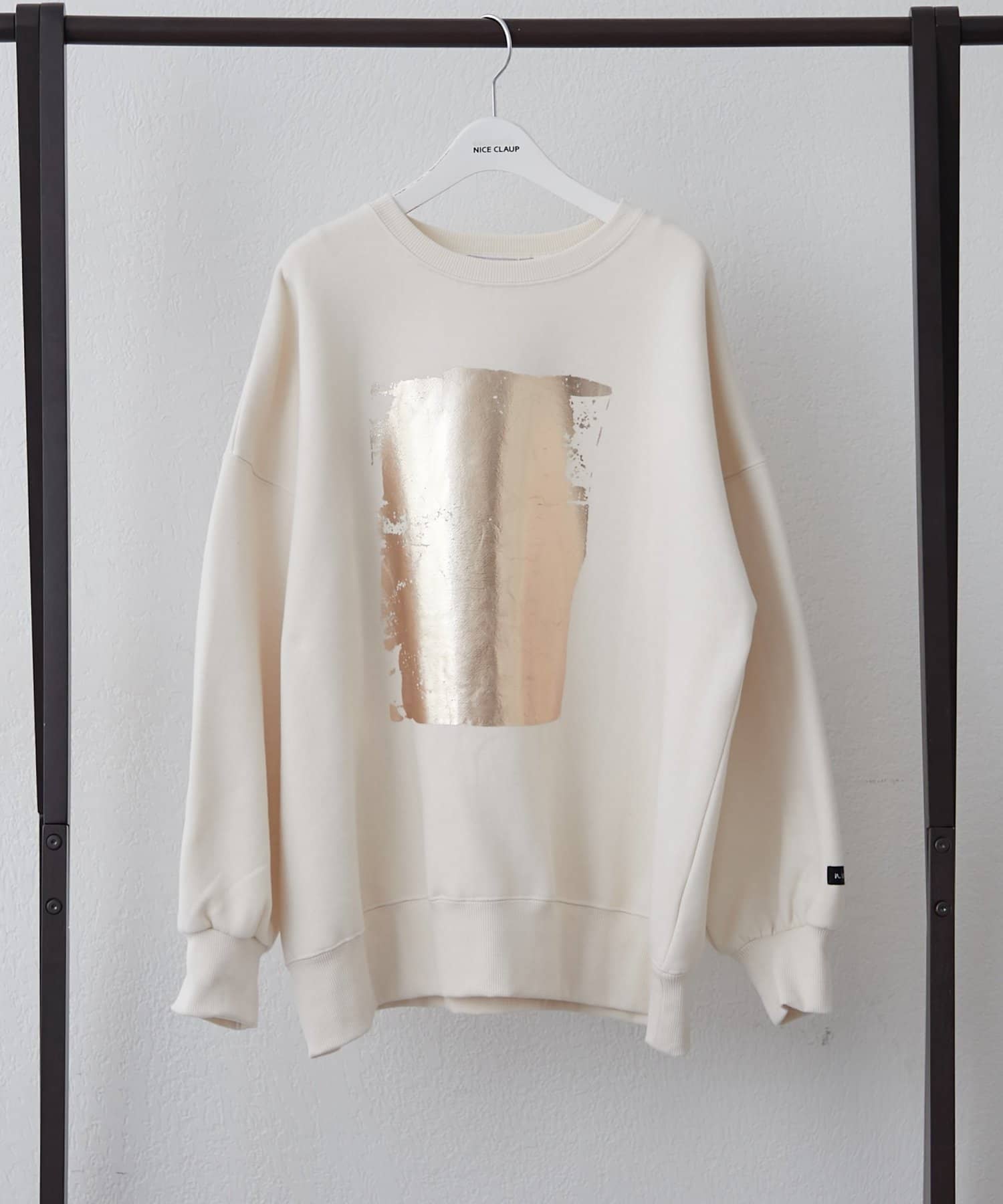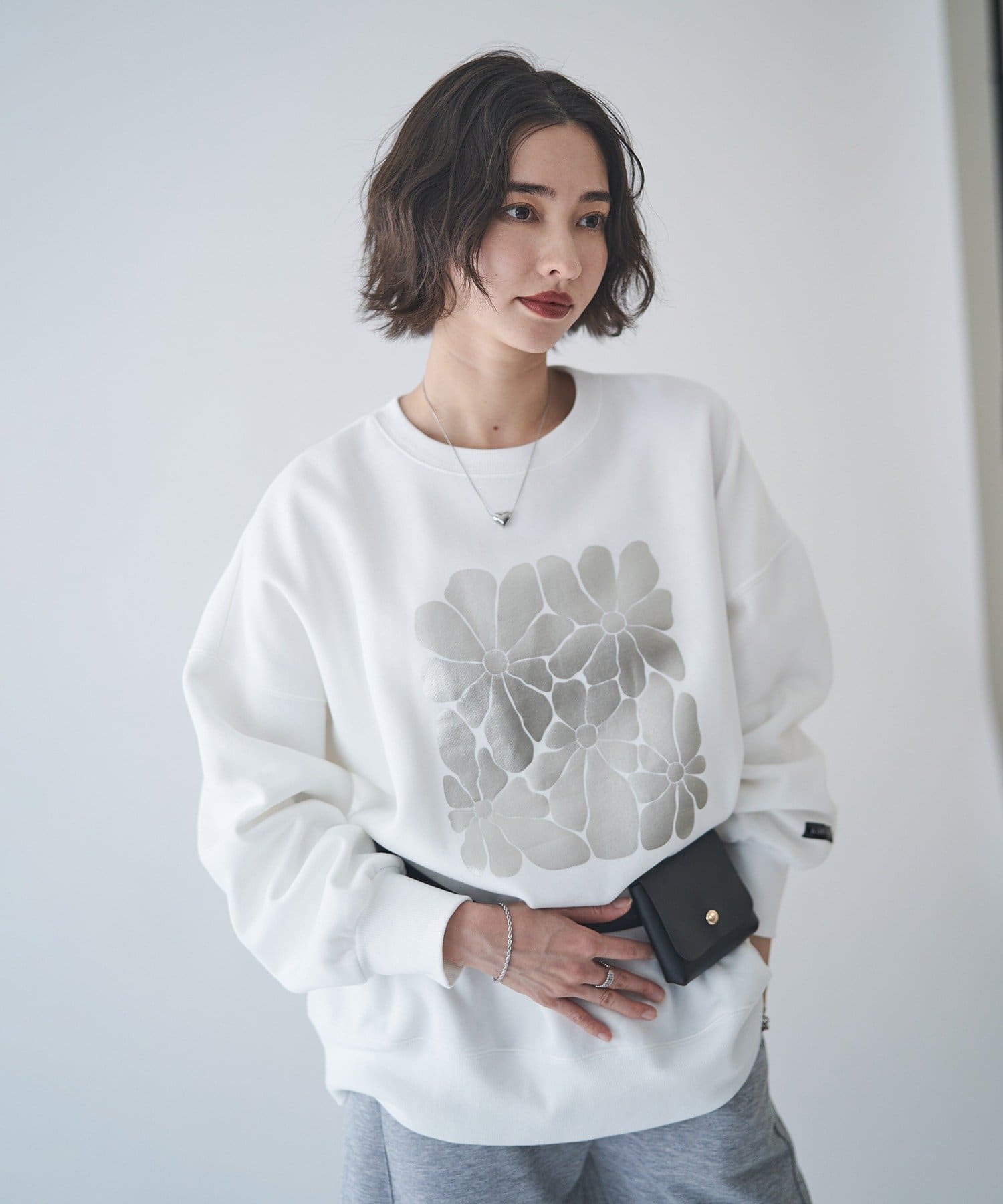 ・フロントには箔プリントが施されており、キレイめカジュアルなおとなかわいいスタイリングがかないます。