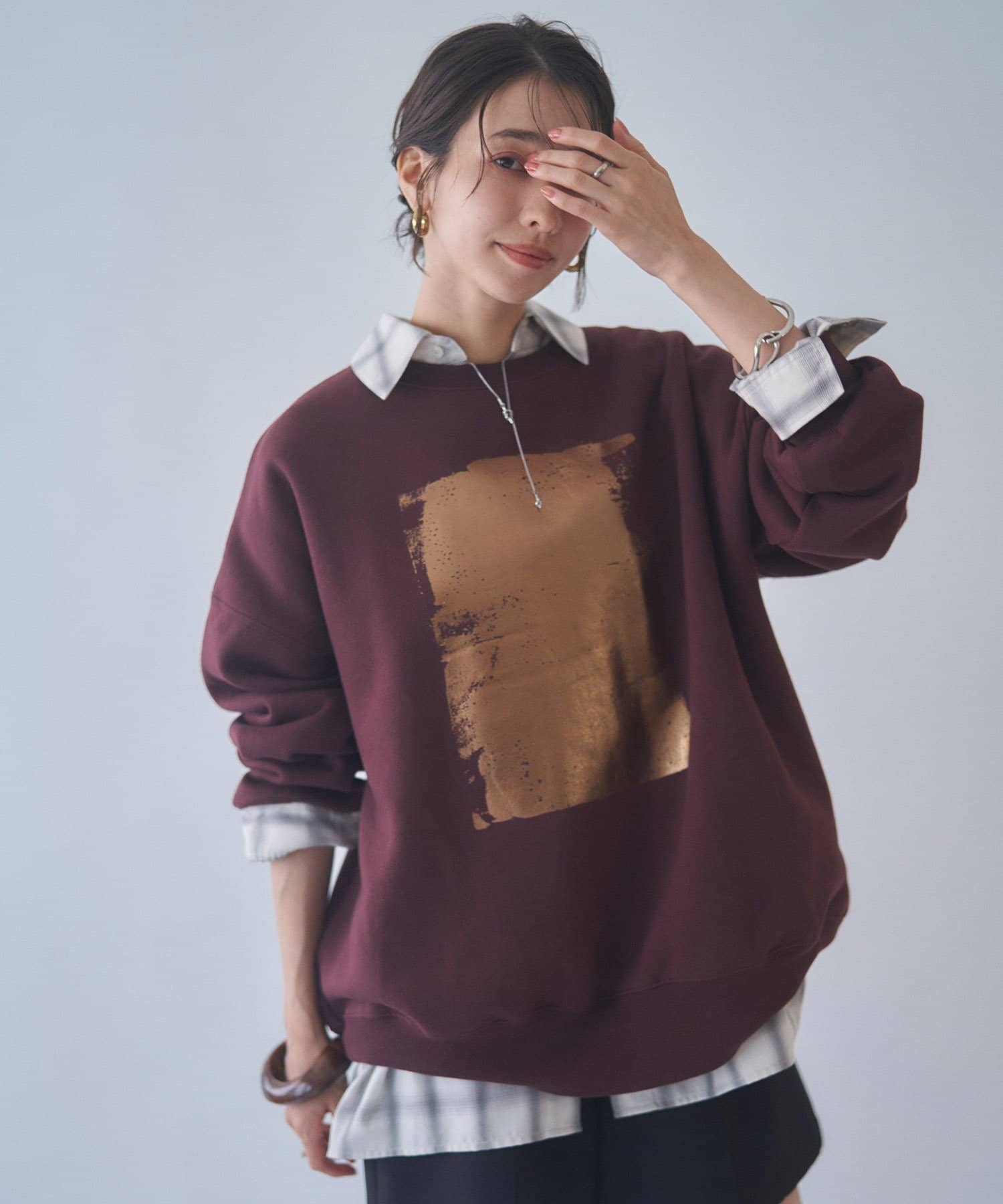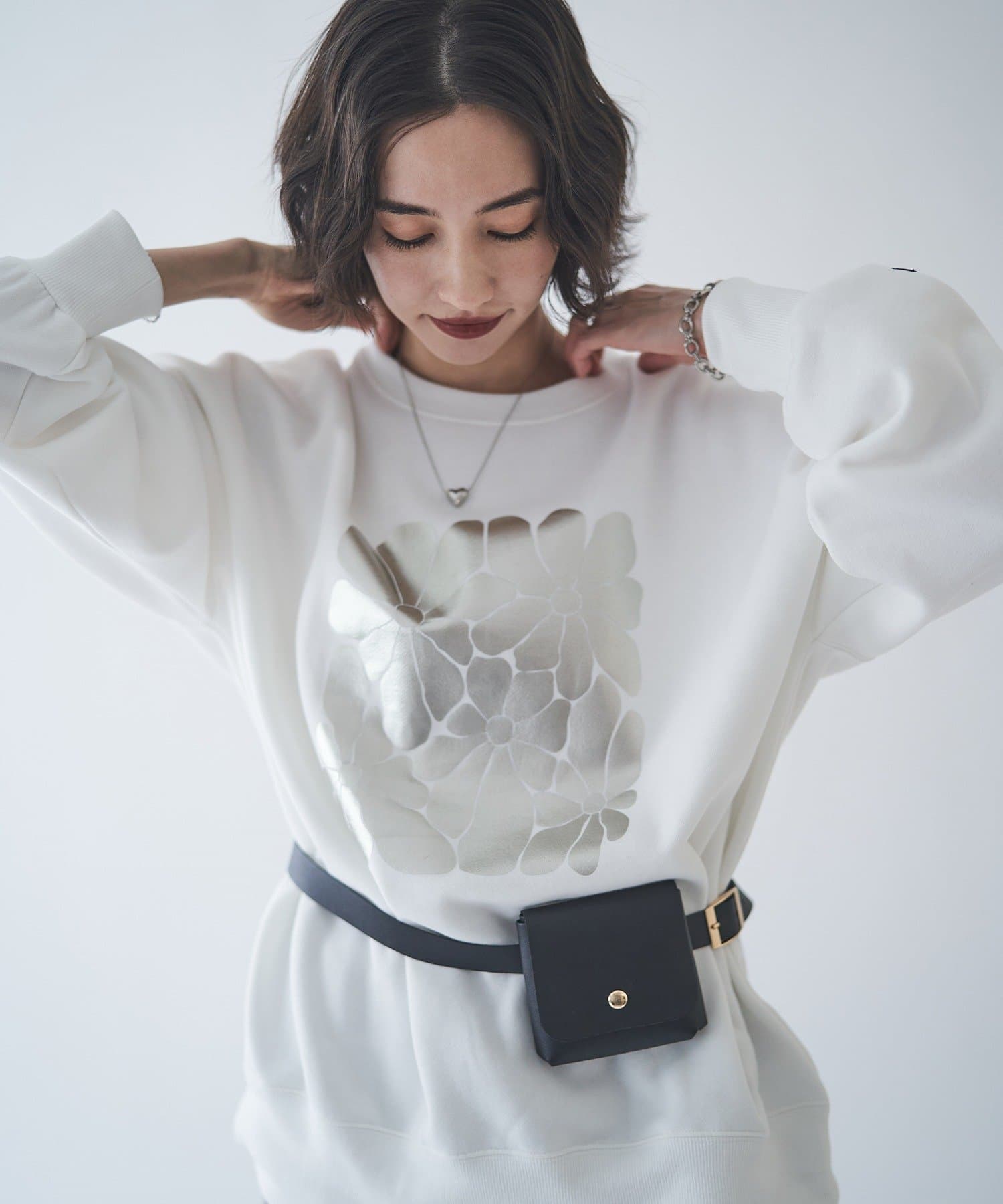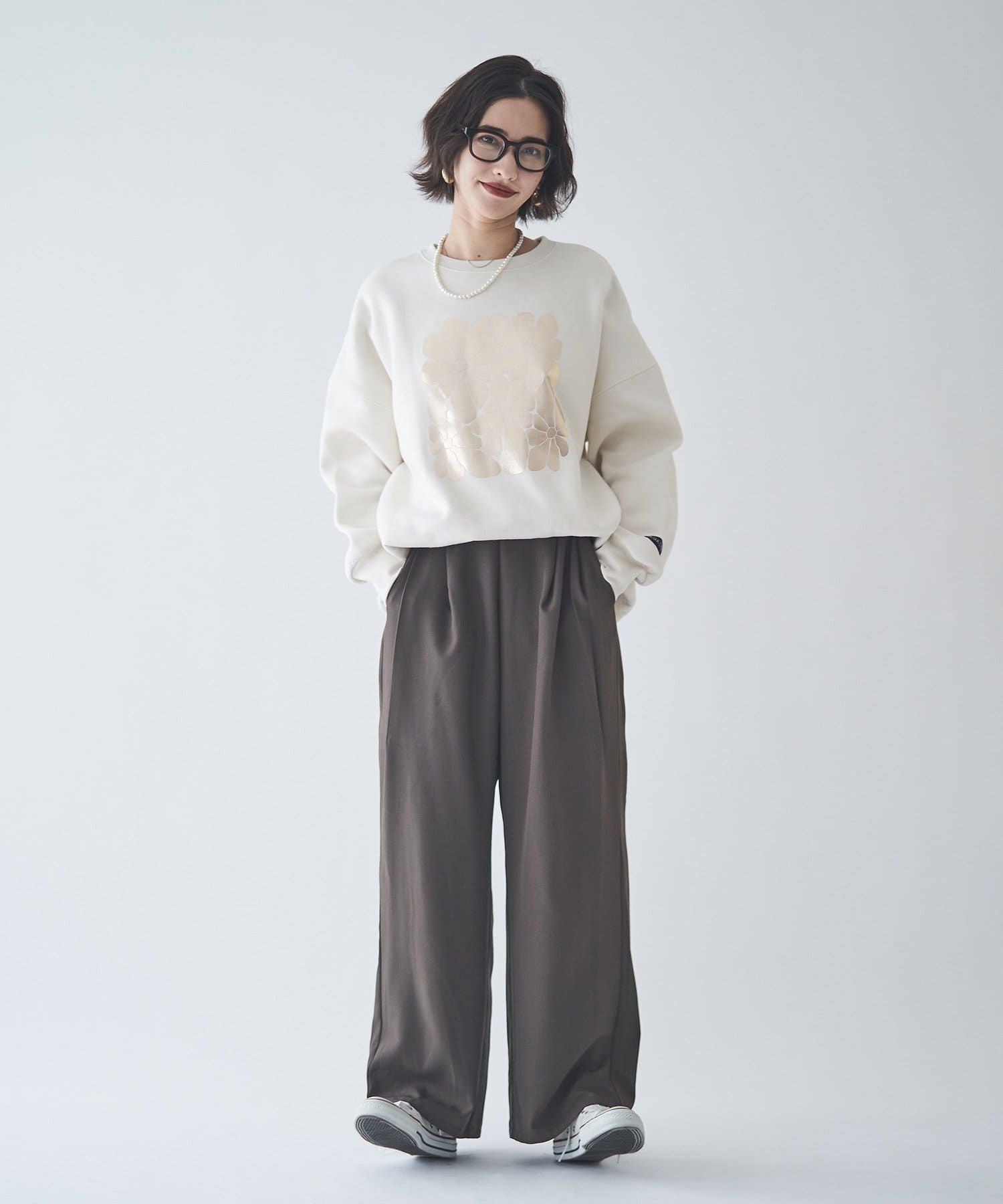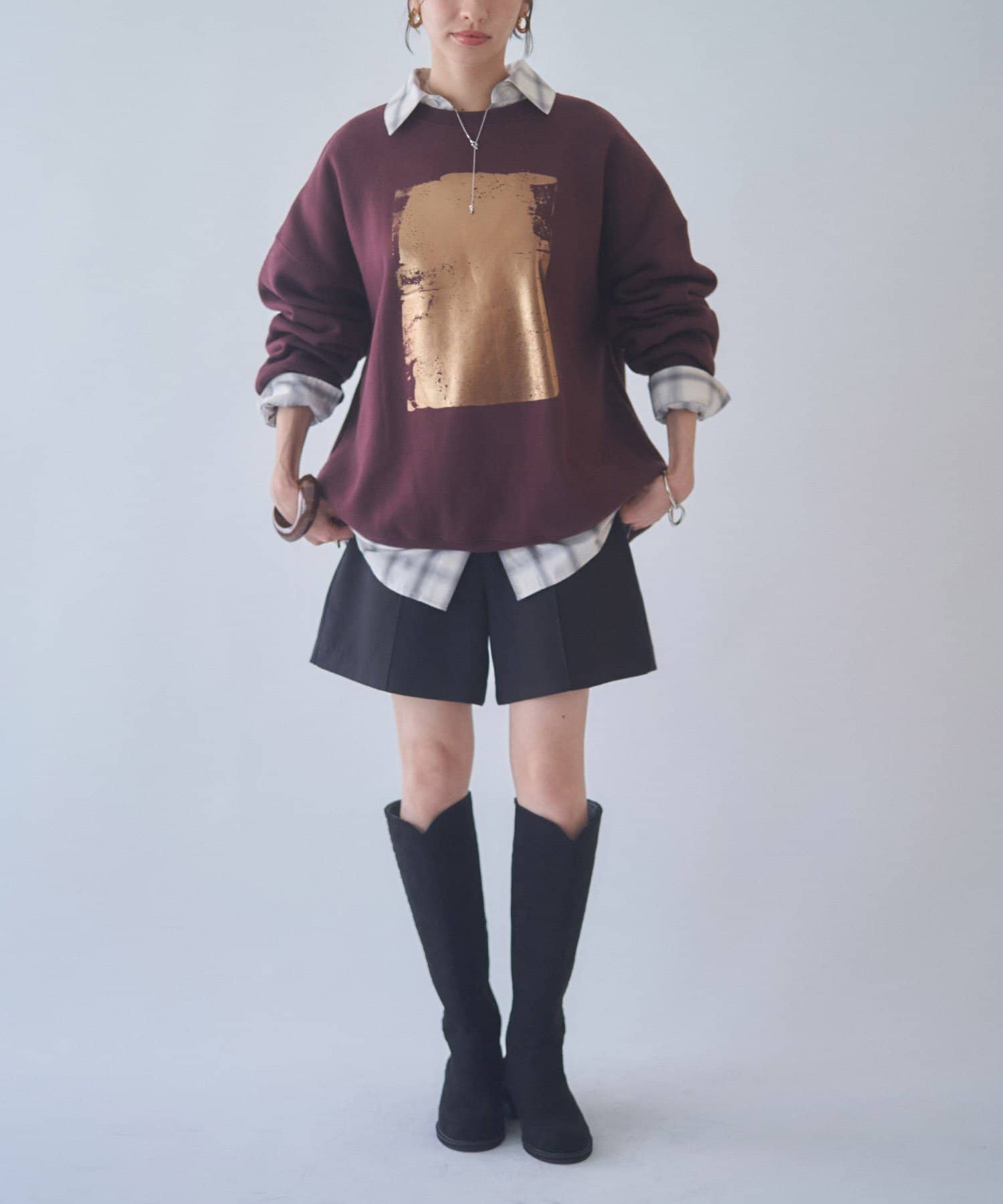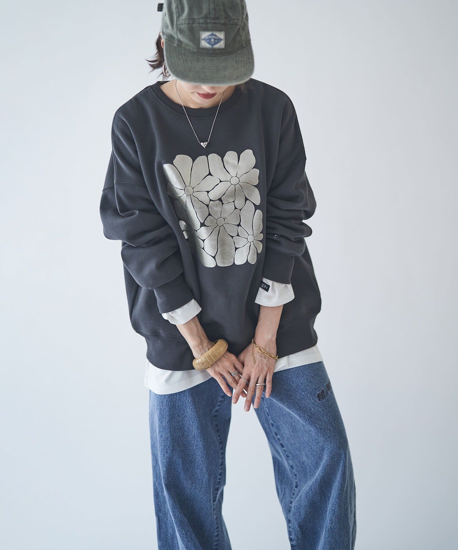 ・フロントには箔プリントが施されており、キレイめカジュアルなおとなかわいいスタイリングがかないます。