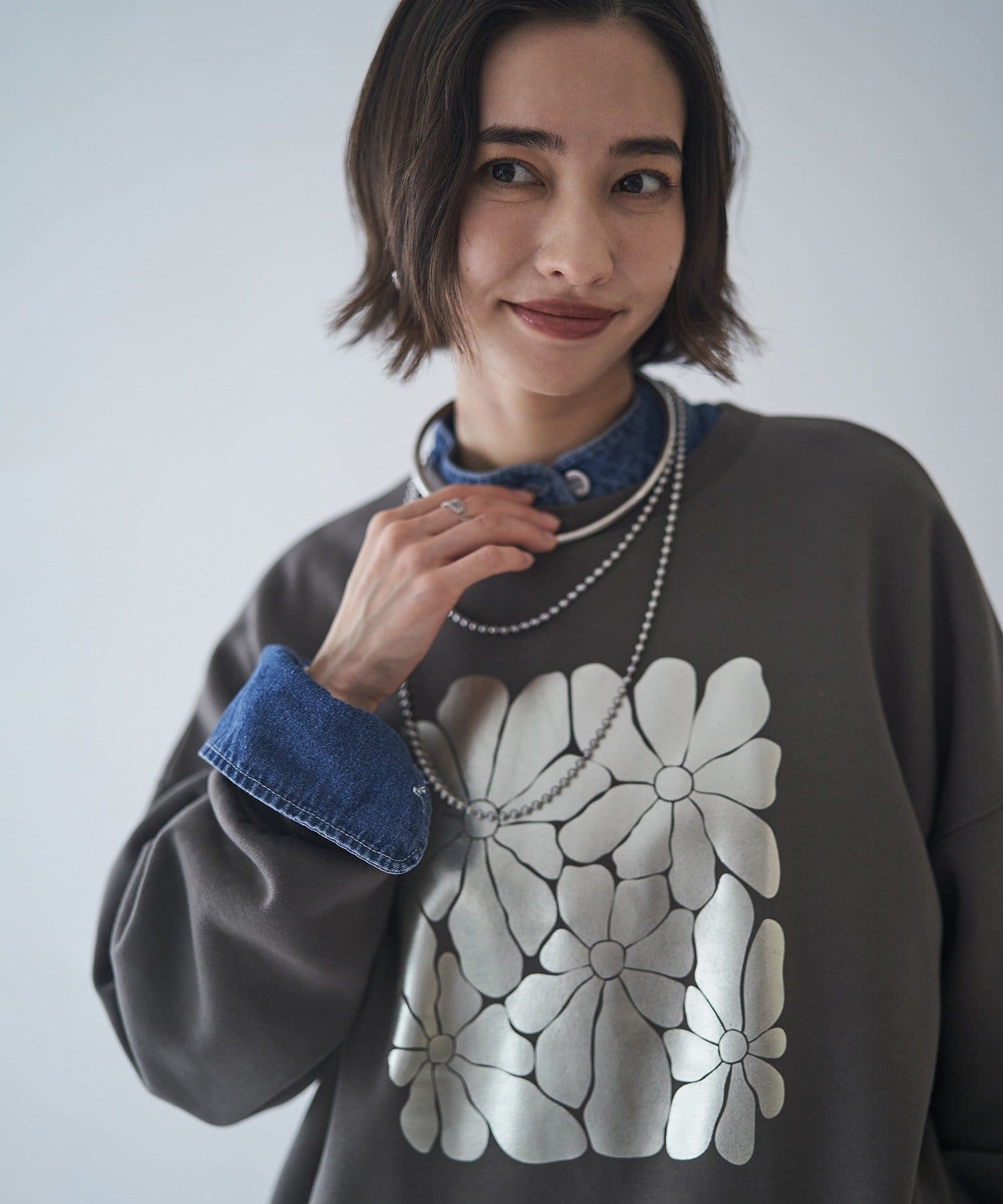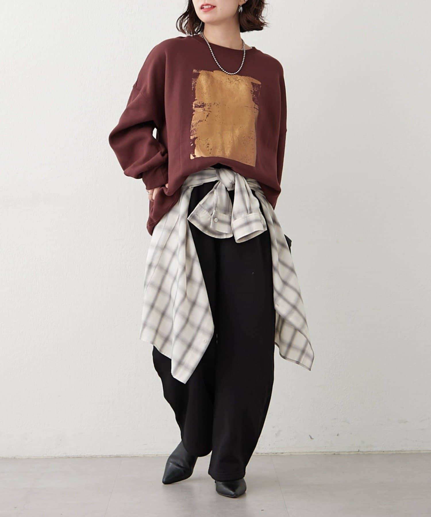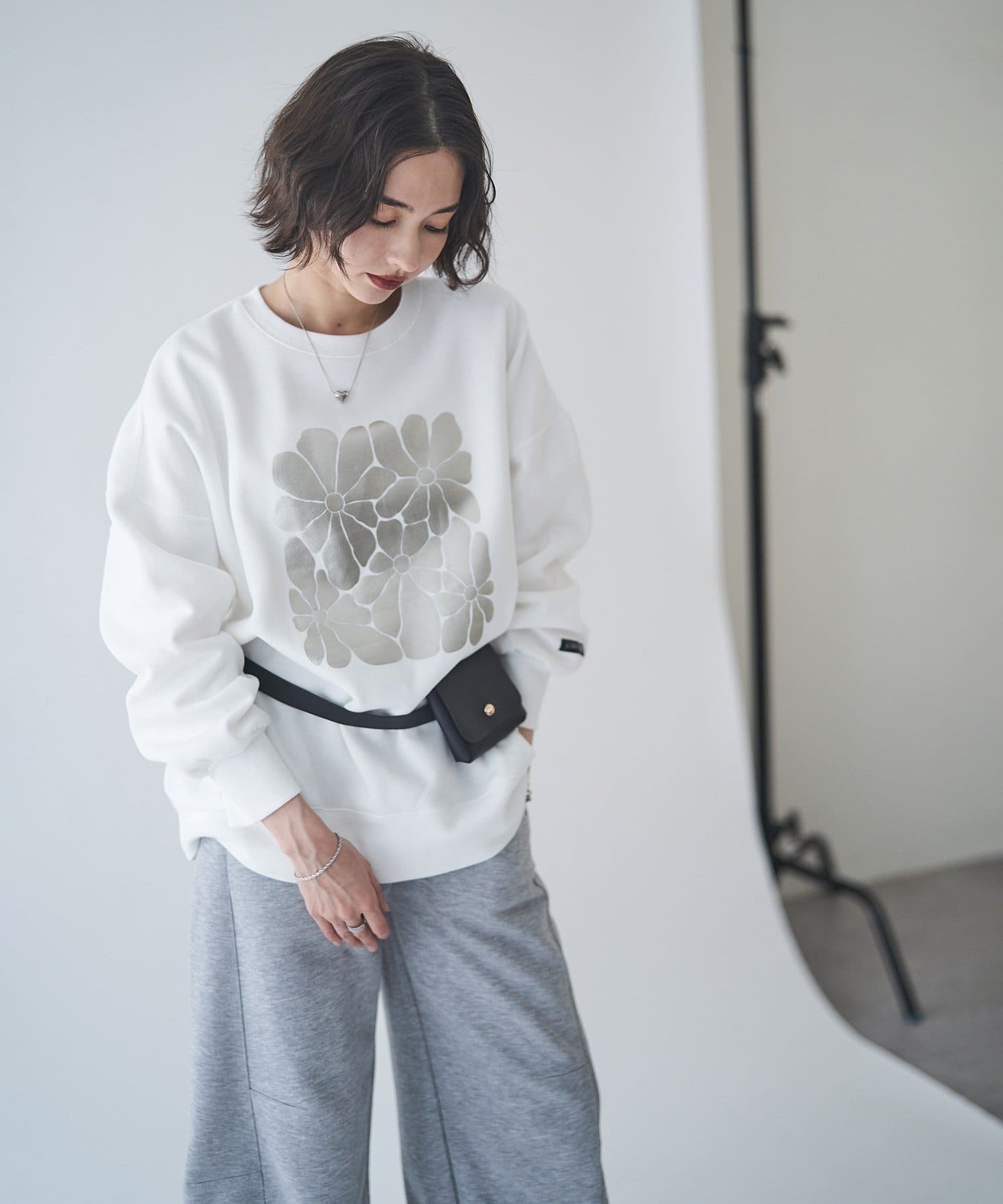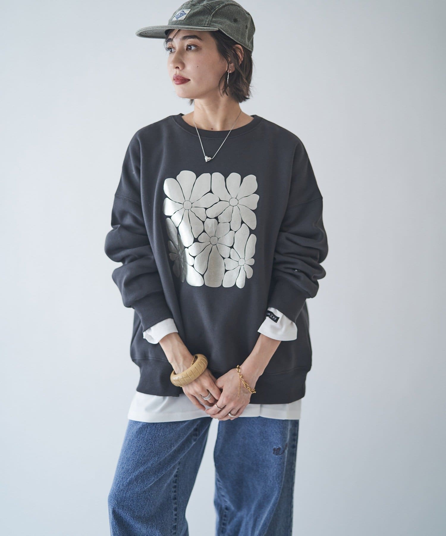 ・フロントには箔プリントが施されており、キレイめカジュアルなおとなかわいいスタイリングがかないます。