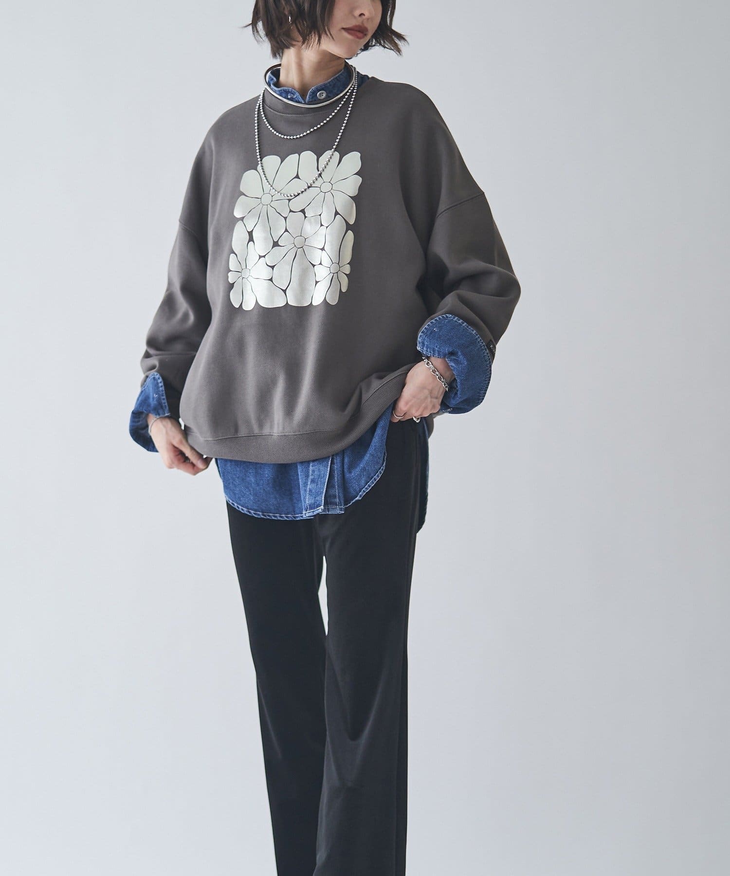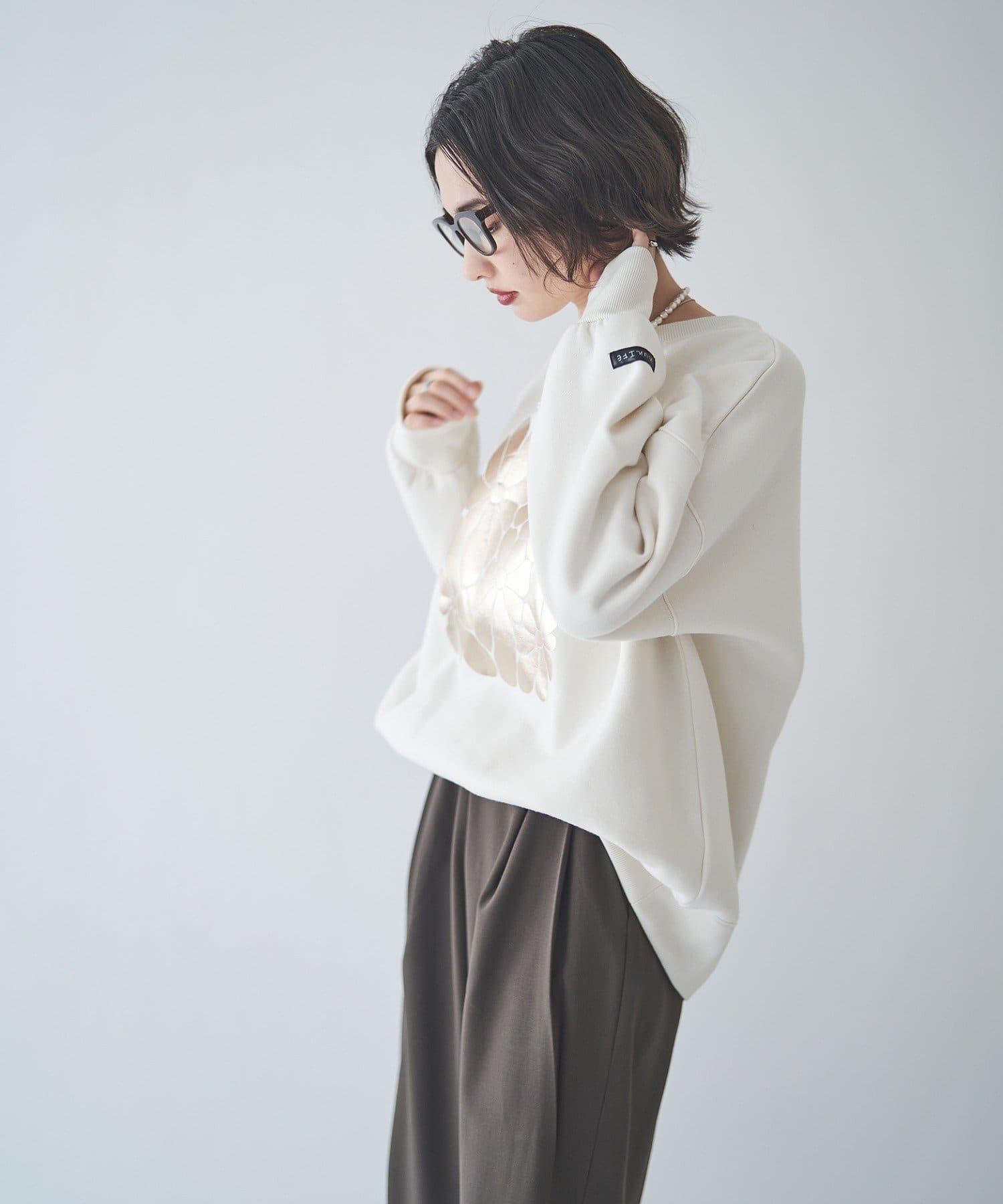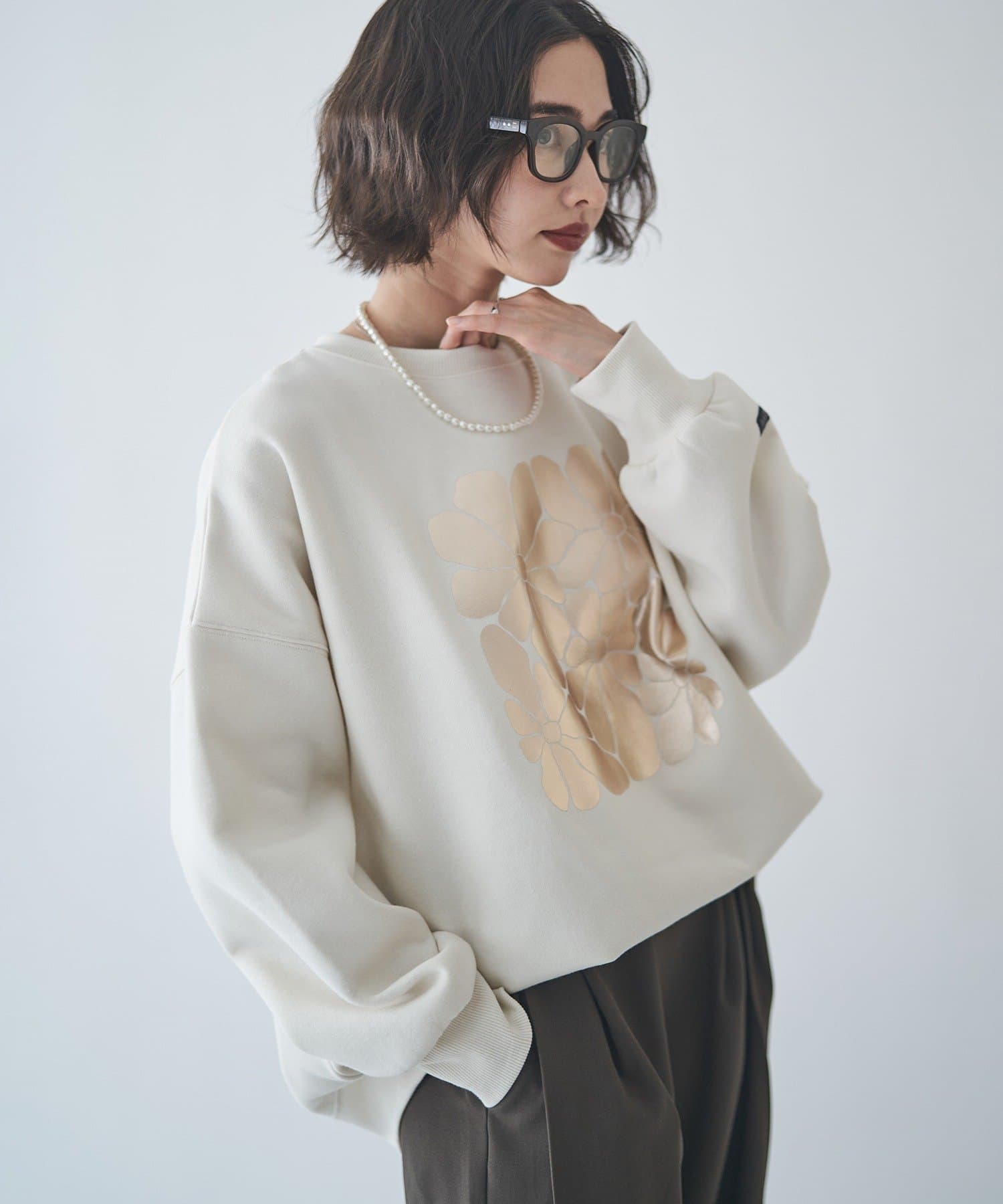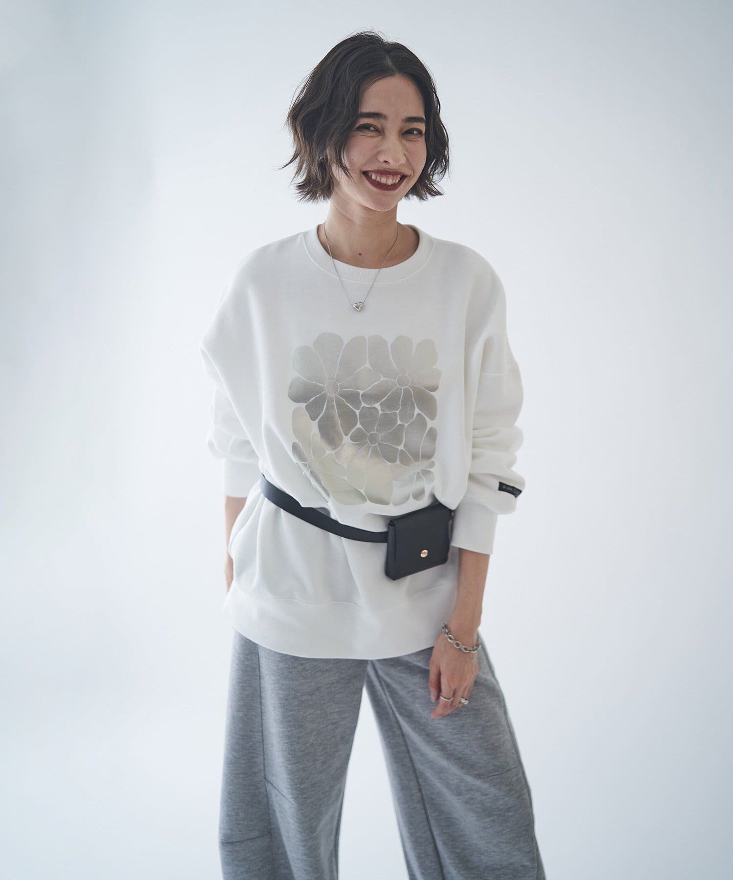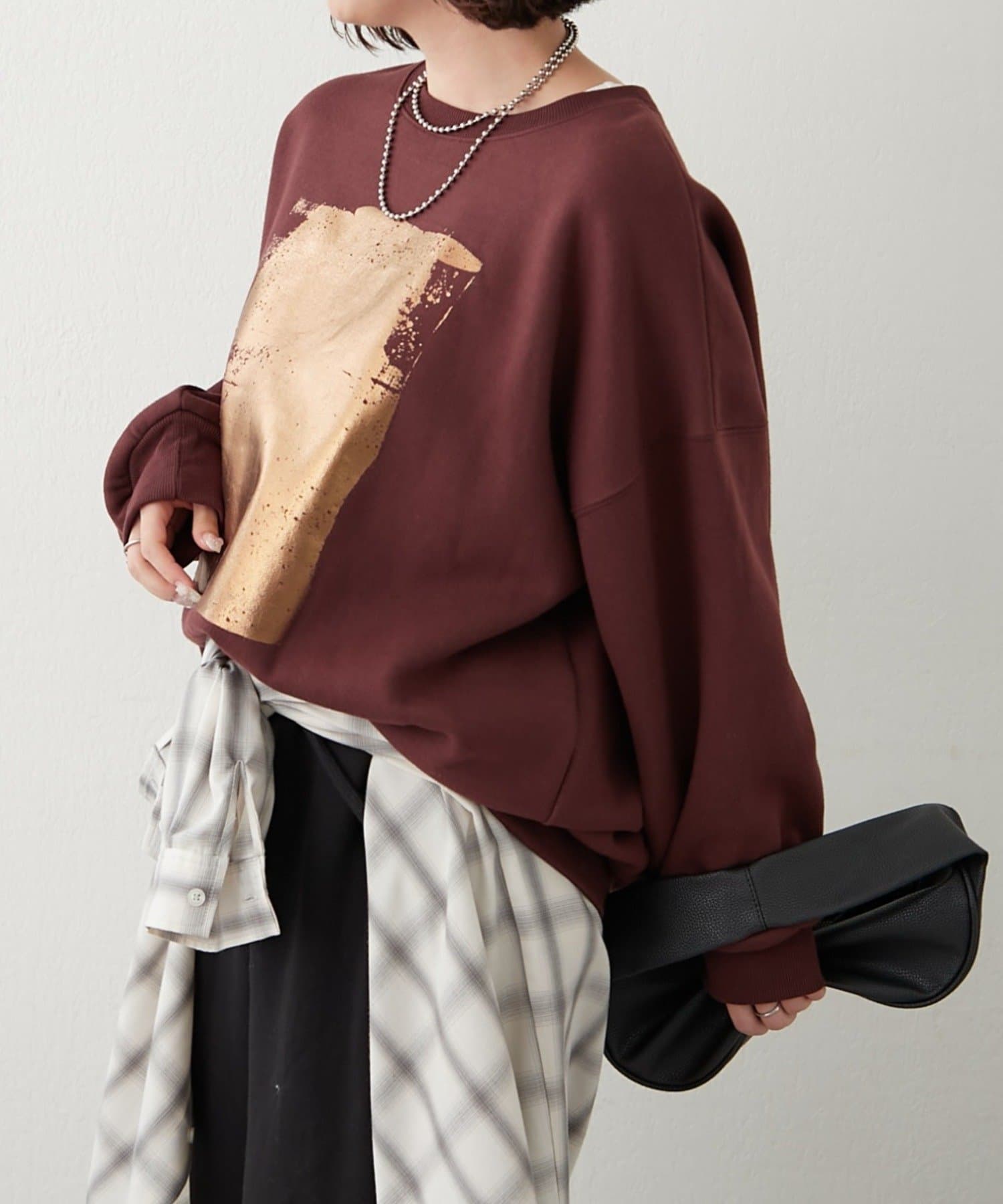 ・フロントには箔プリントが施されており、キレイめカジュアルなおとなかわいいスタイリングがかないます。