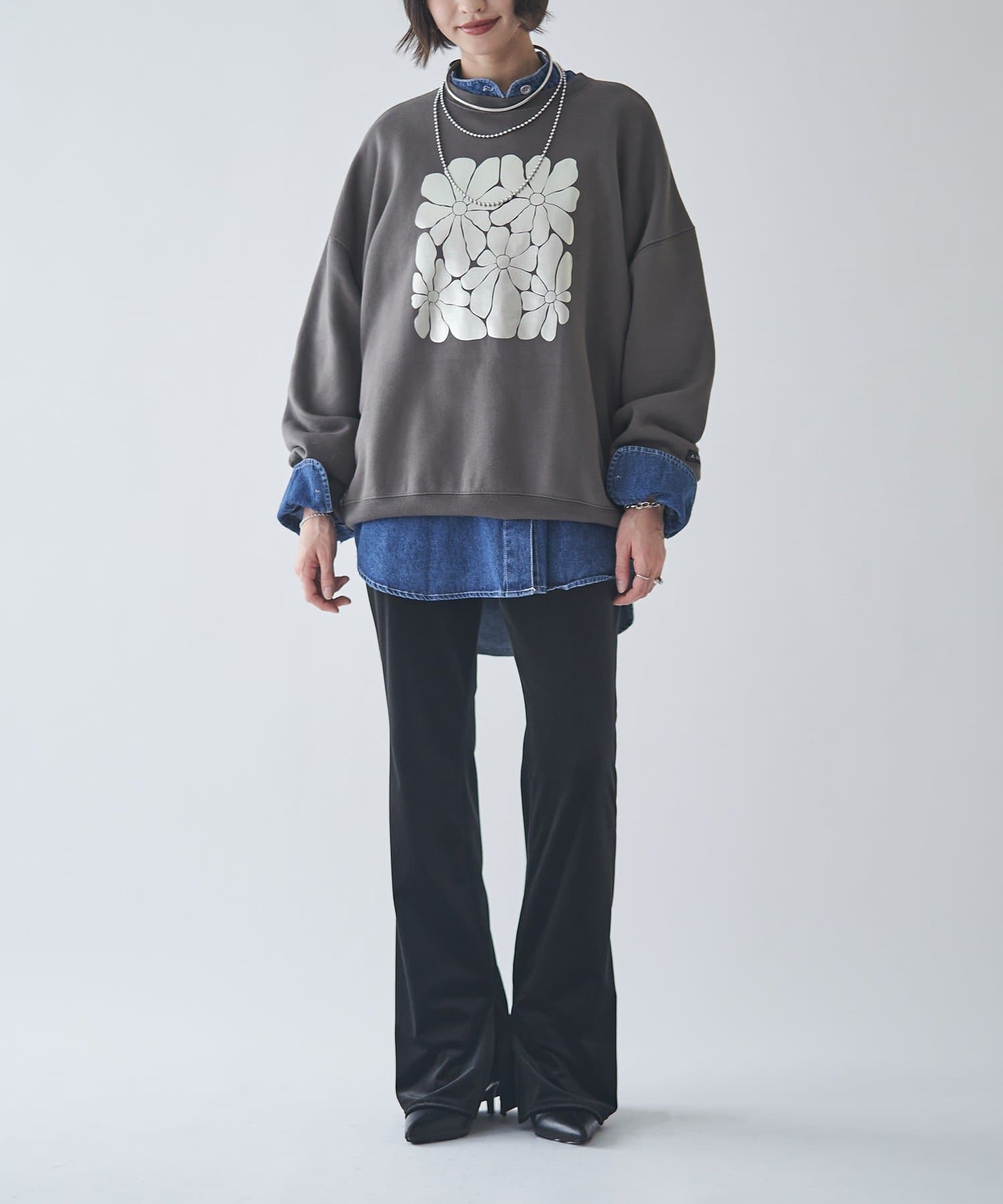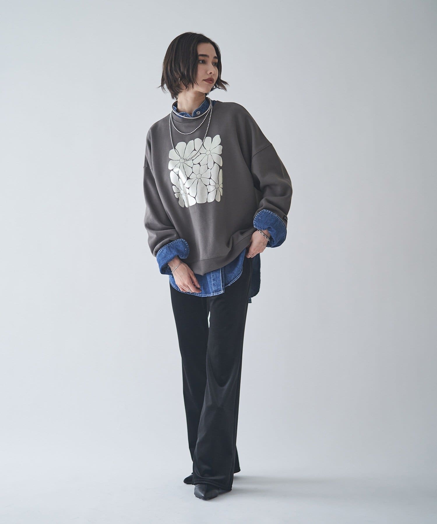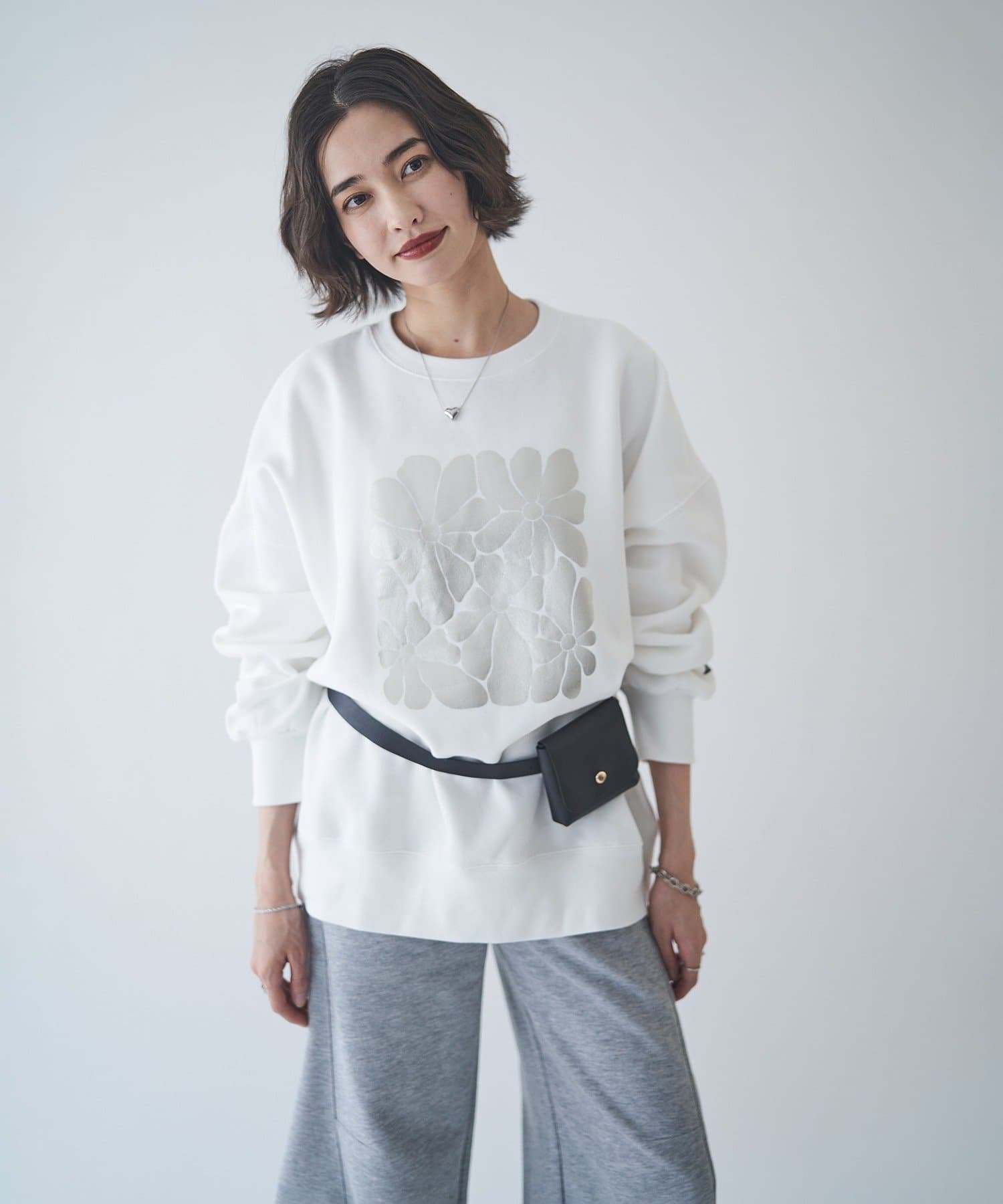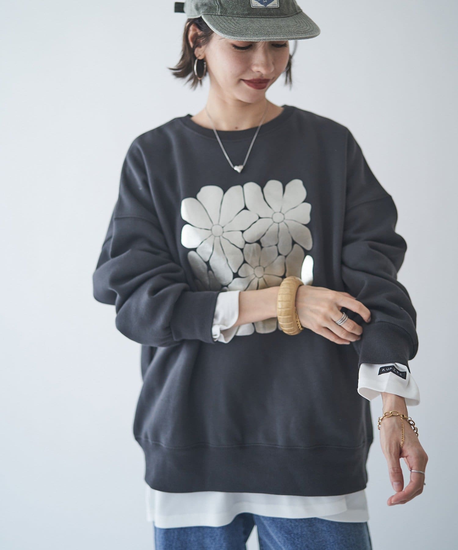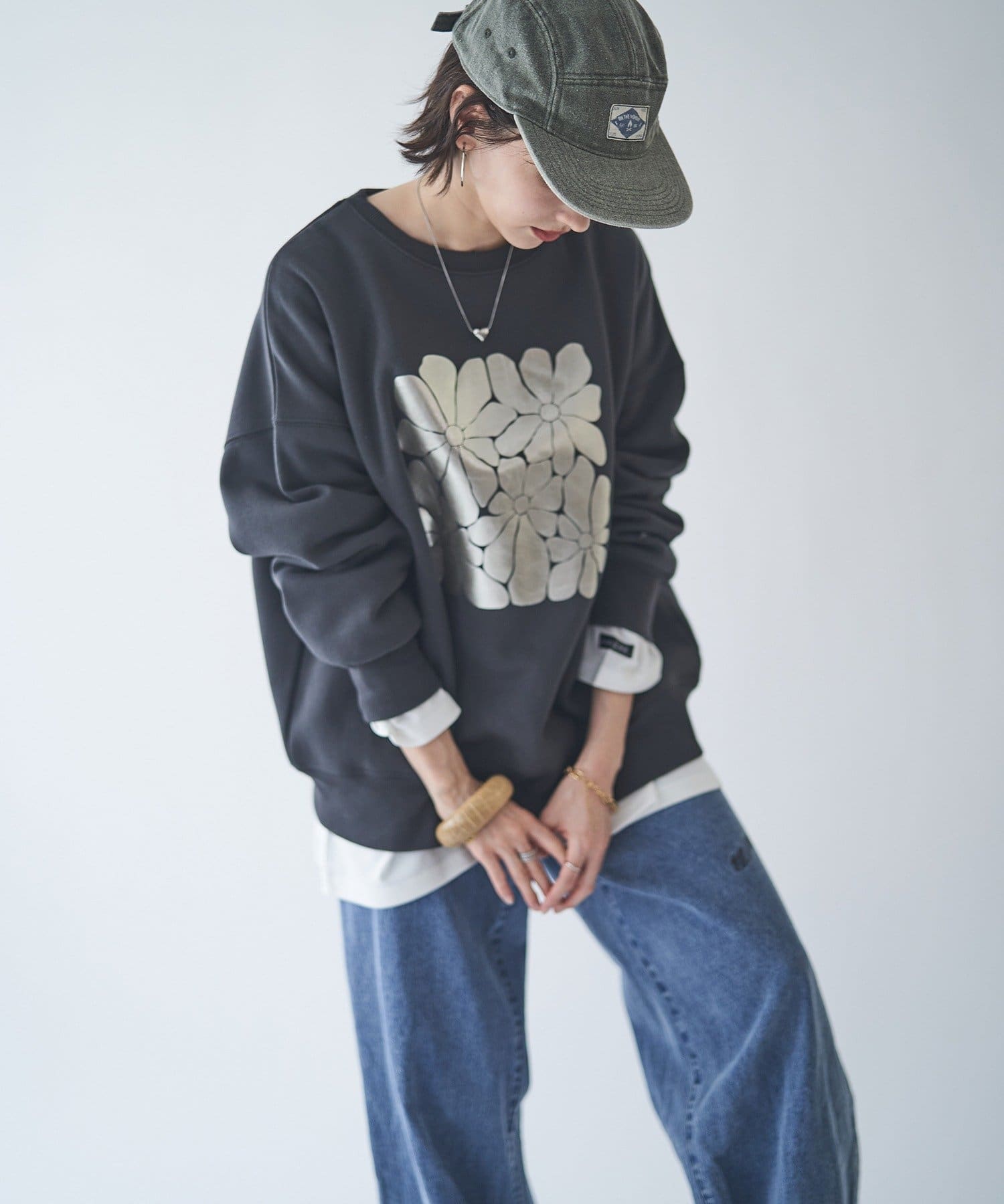・フロントには箔プリントが施されており、キレイめカジュアルなおとなかわいいスタイリングがかないます。