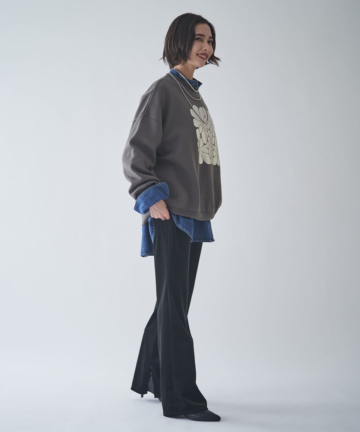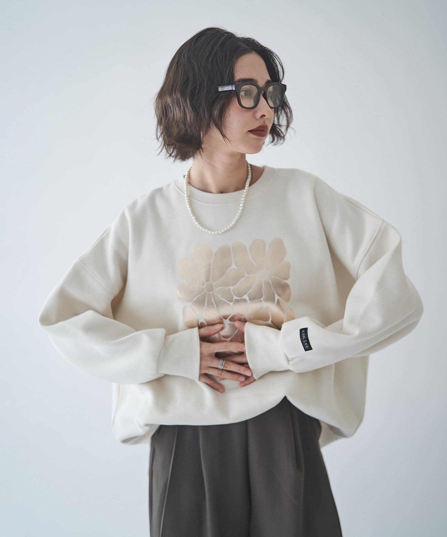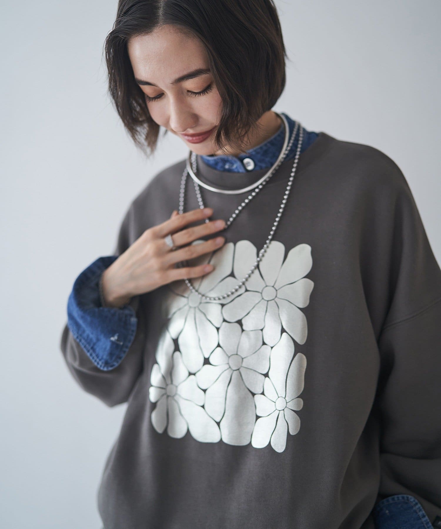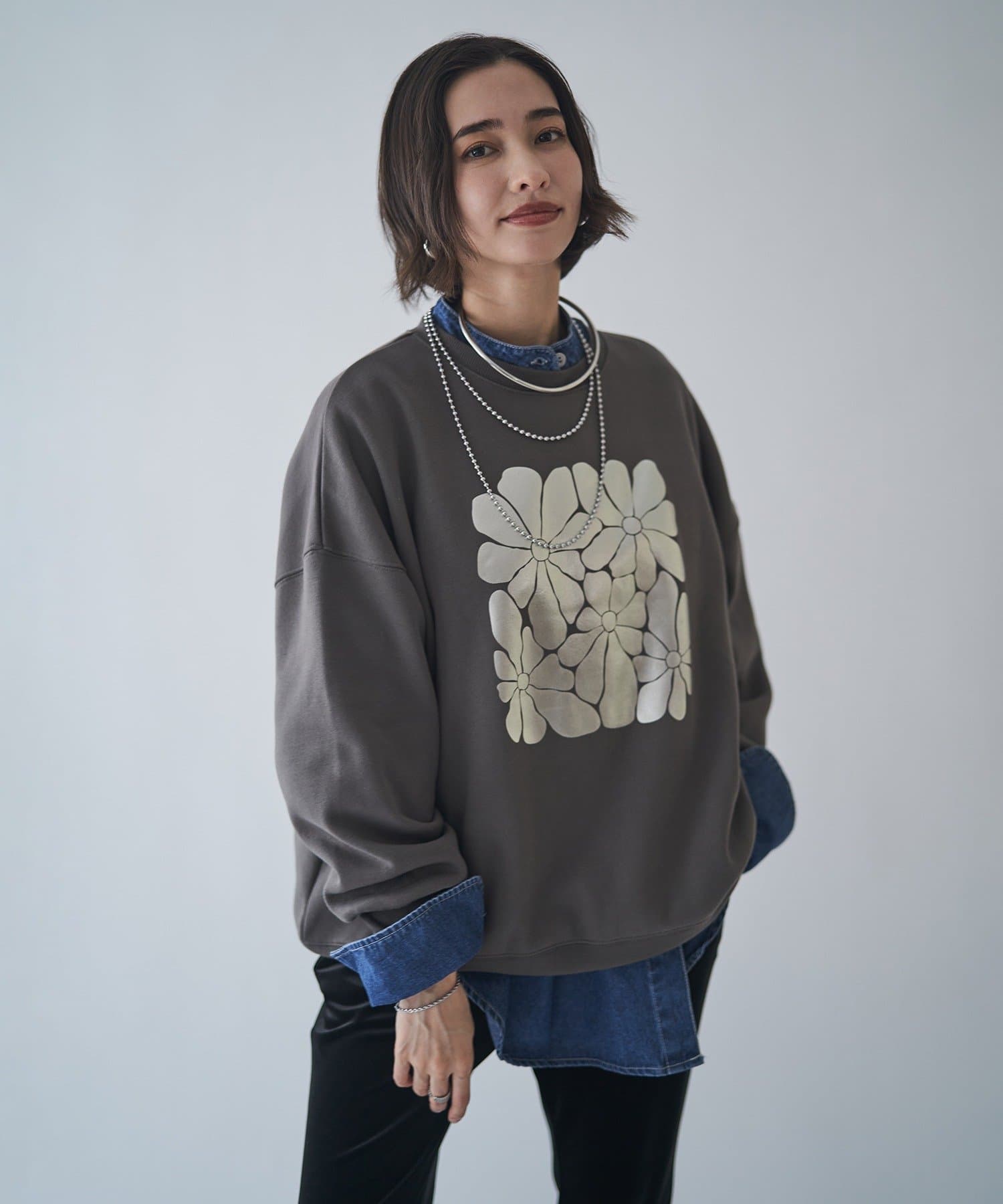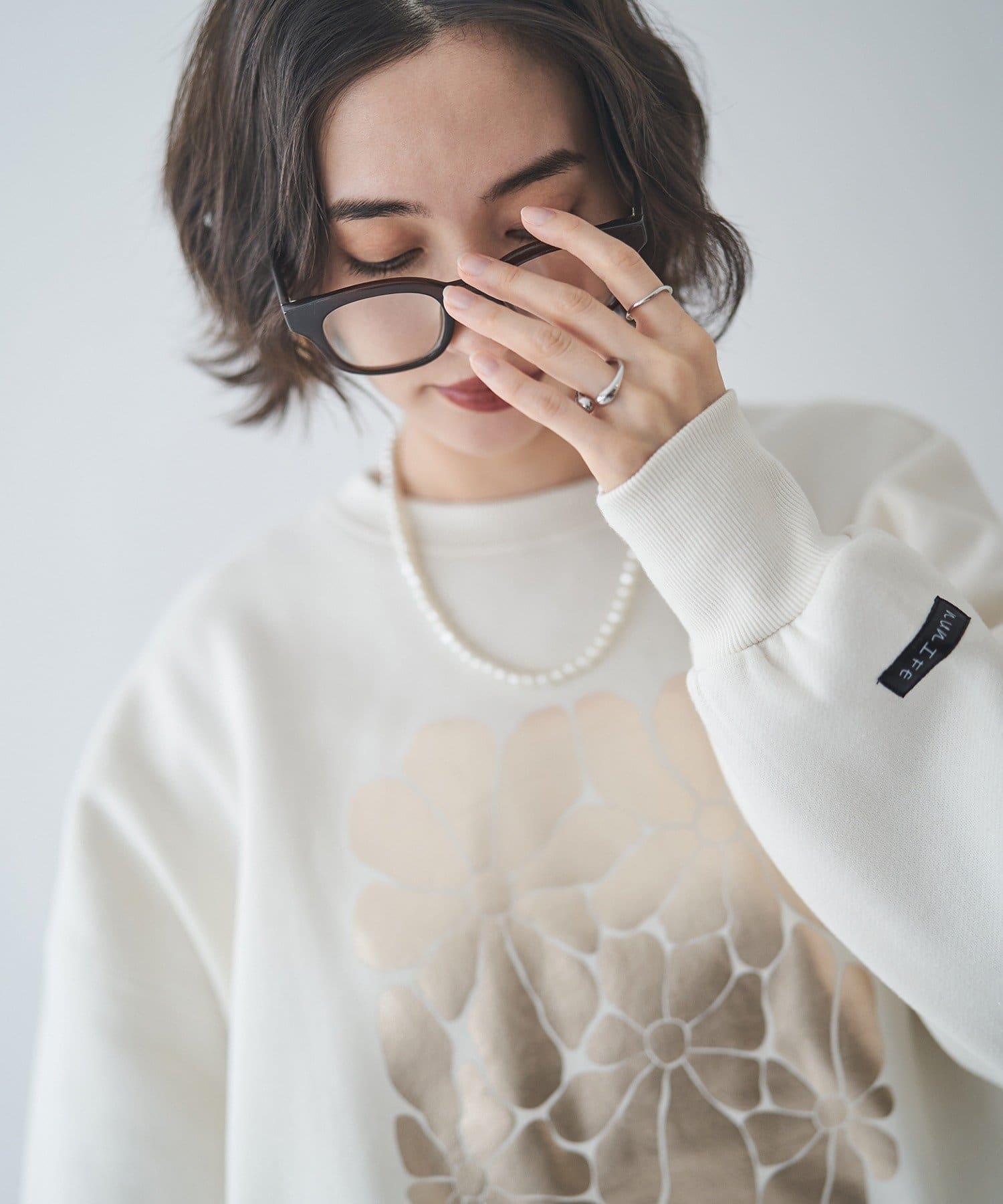 ・フロントには箔プリントが施されており、キレイめカジュアルなおとなかわいいスタイリングがかないます。