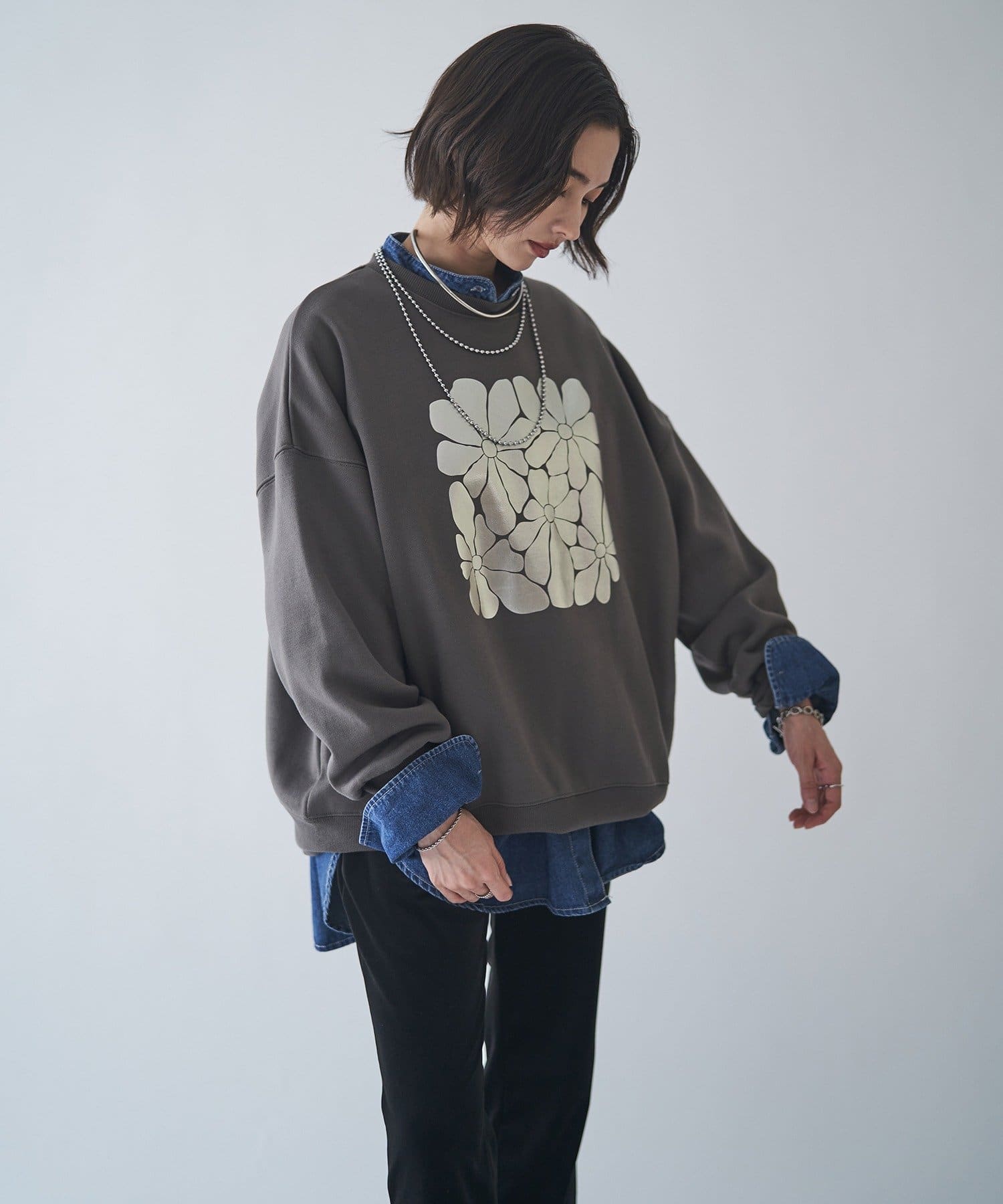 ・裏起毛のゆったりとしたプルオーバーは保温性が高く、今のシーズンにぴったりの1枚。