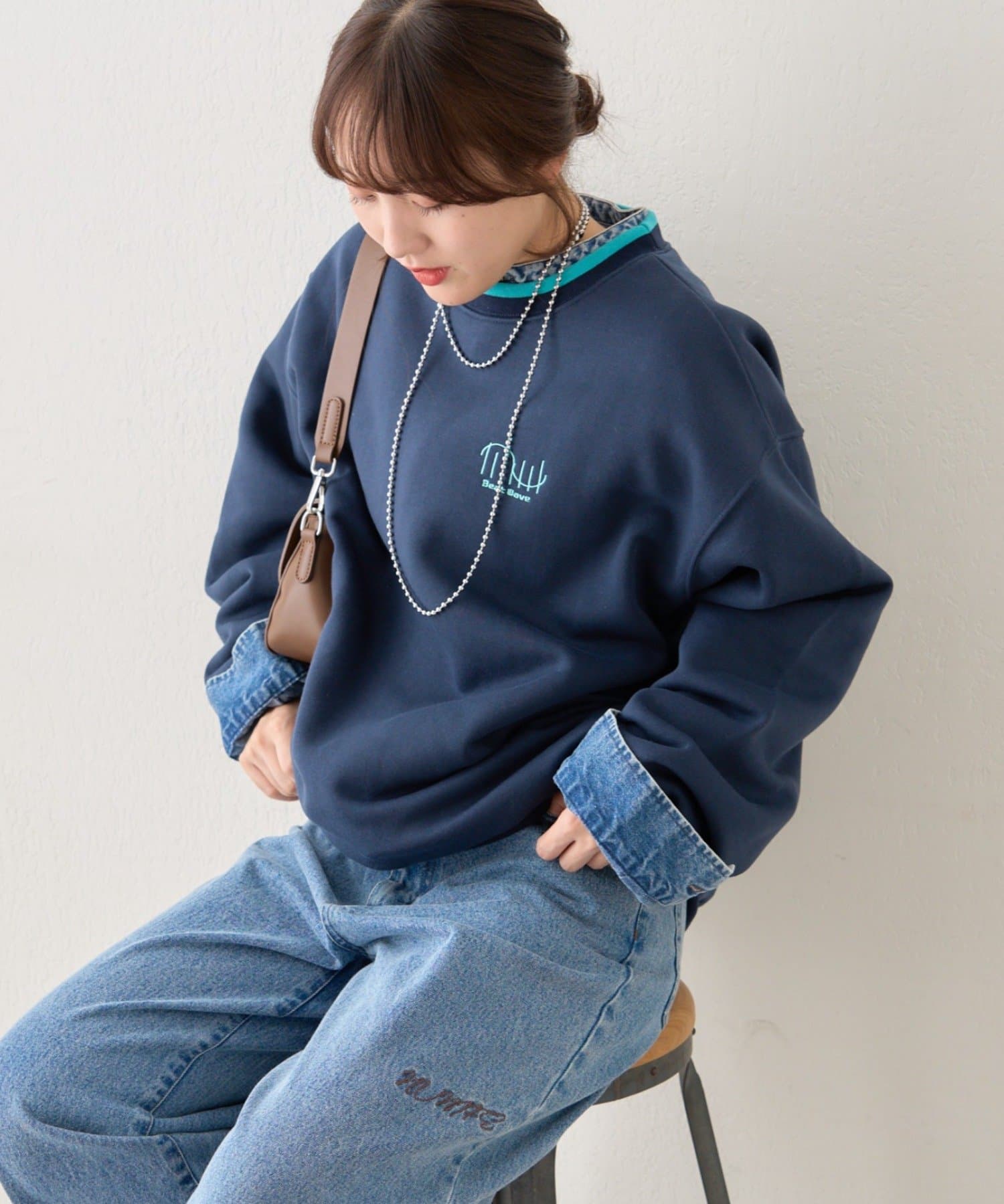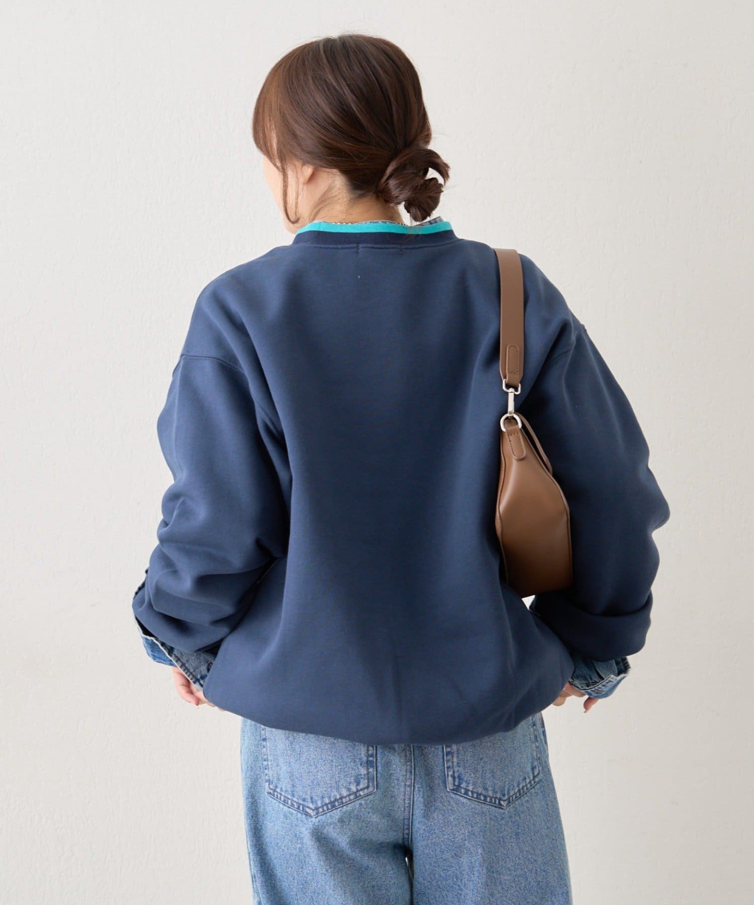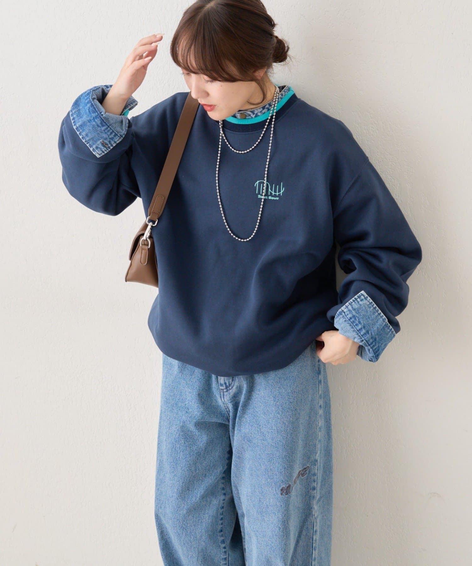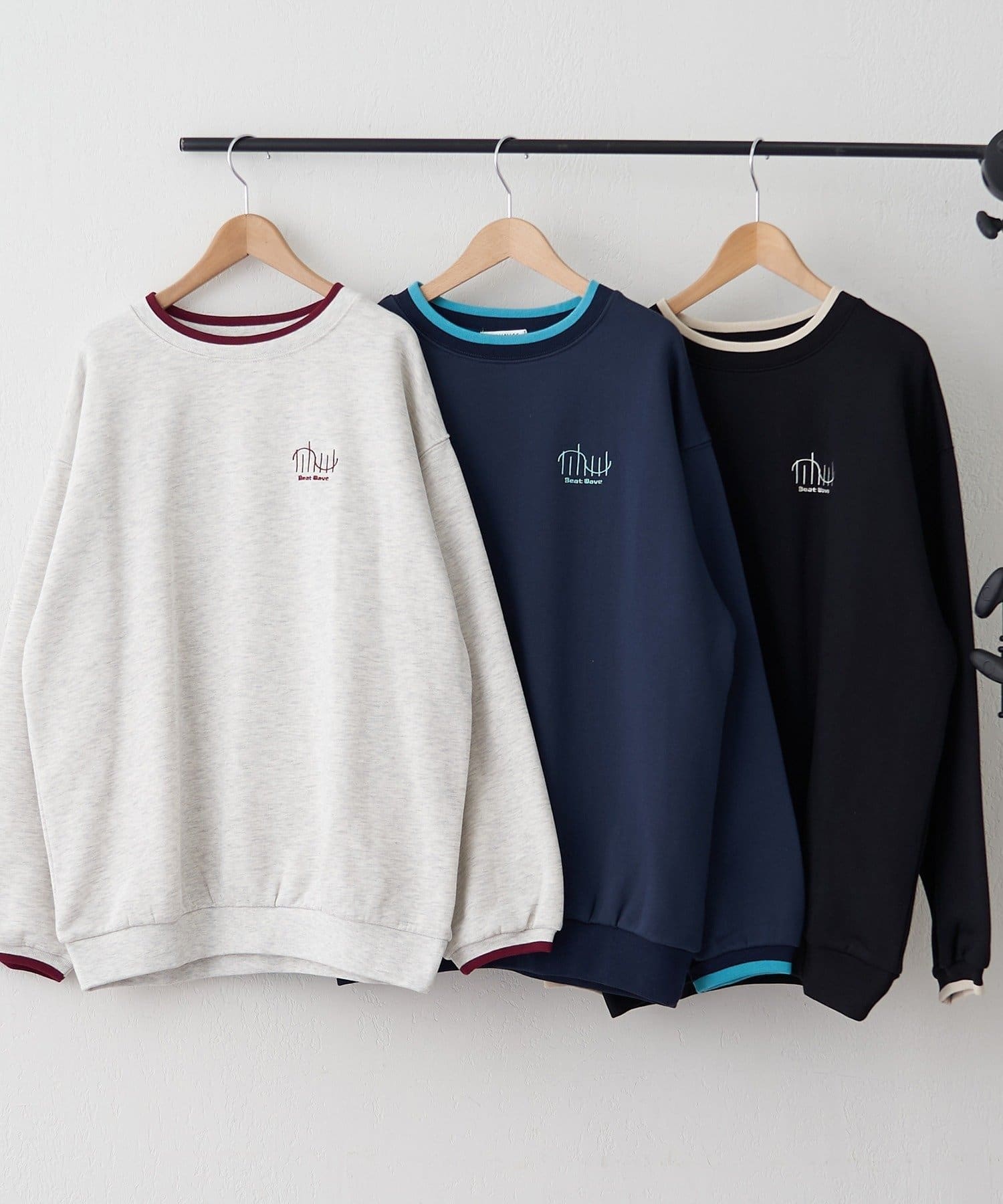 TOP > Remind me and forever > レディース > トップス > スウェット/ポンチ > 【NUNIFE】ラインリブ胸刺繍スウェット【裏起毛】