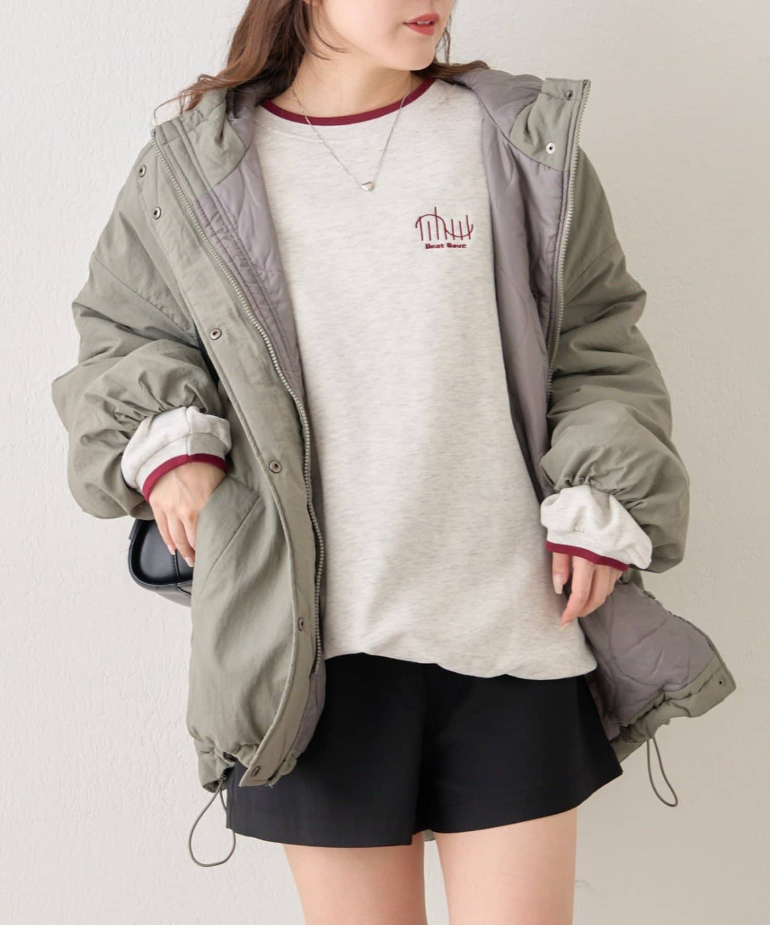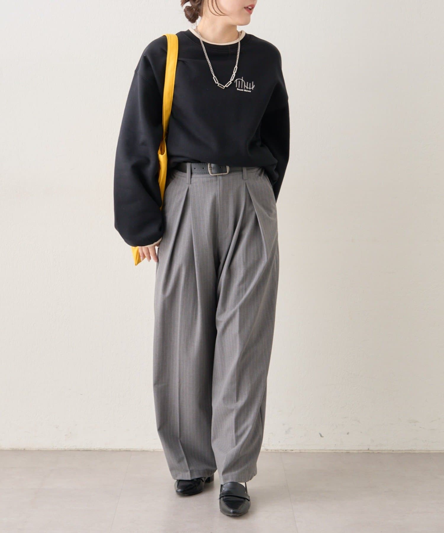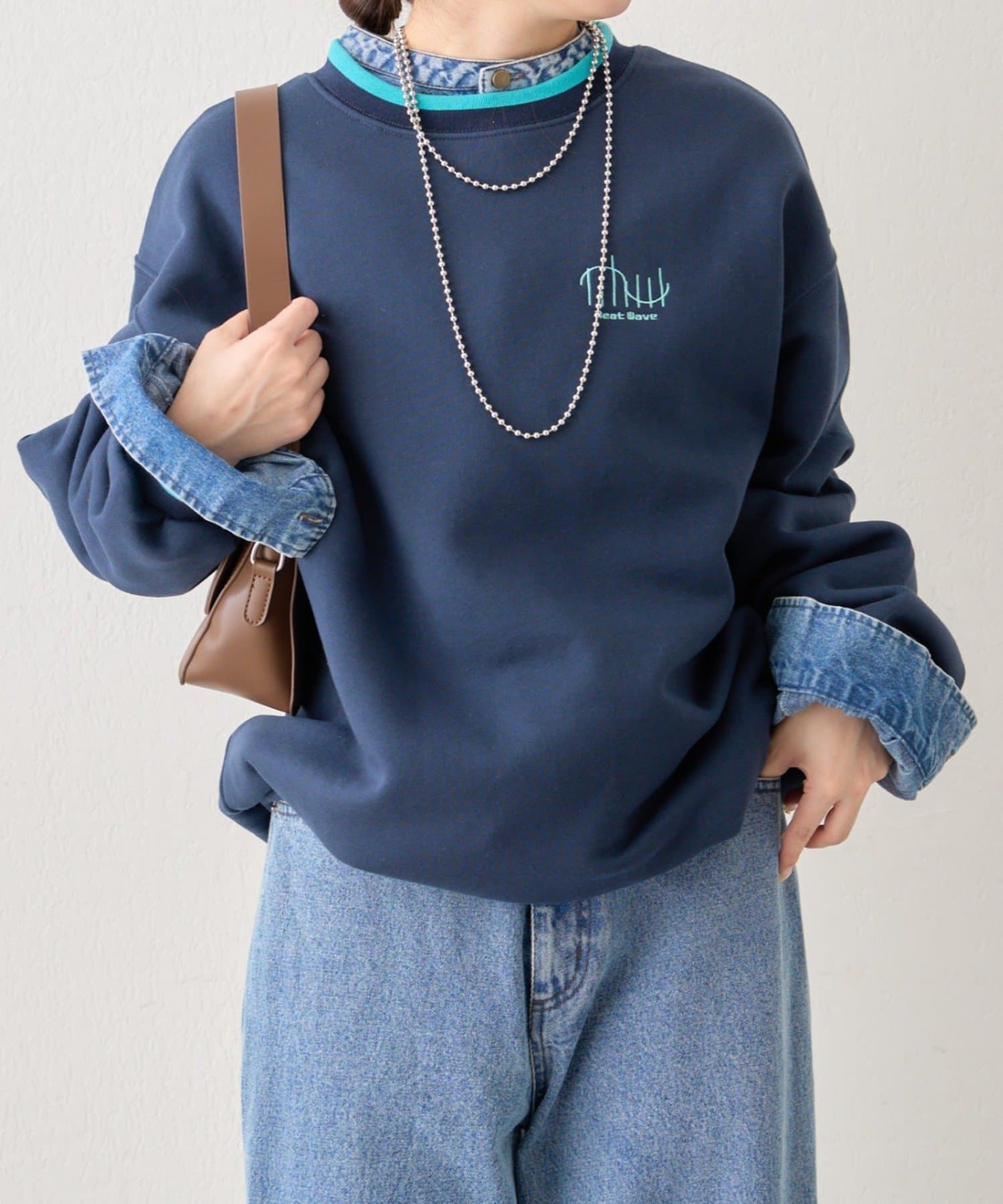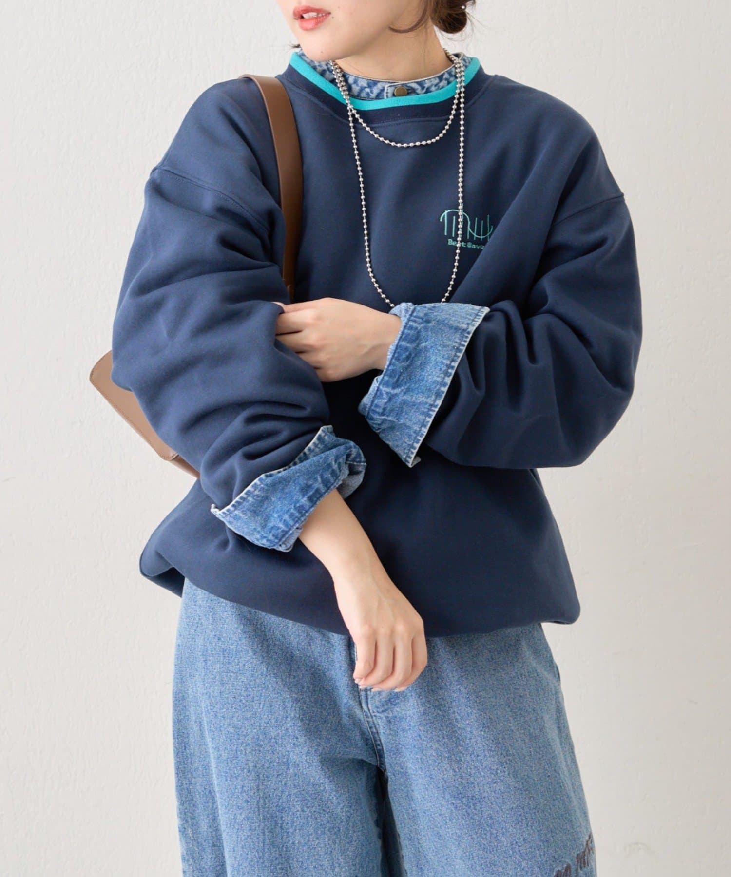 TOP > Remind me and forever > レディース > トップス > スウェット/ポンチ > 【NUNIFE】ラインリブ胸刺繍スウェット【裏起毛】