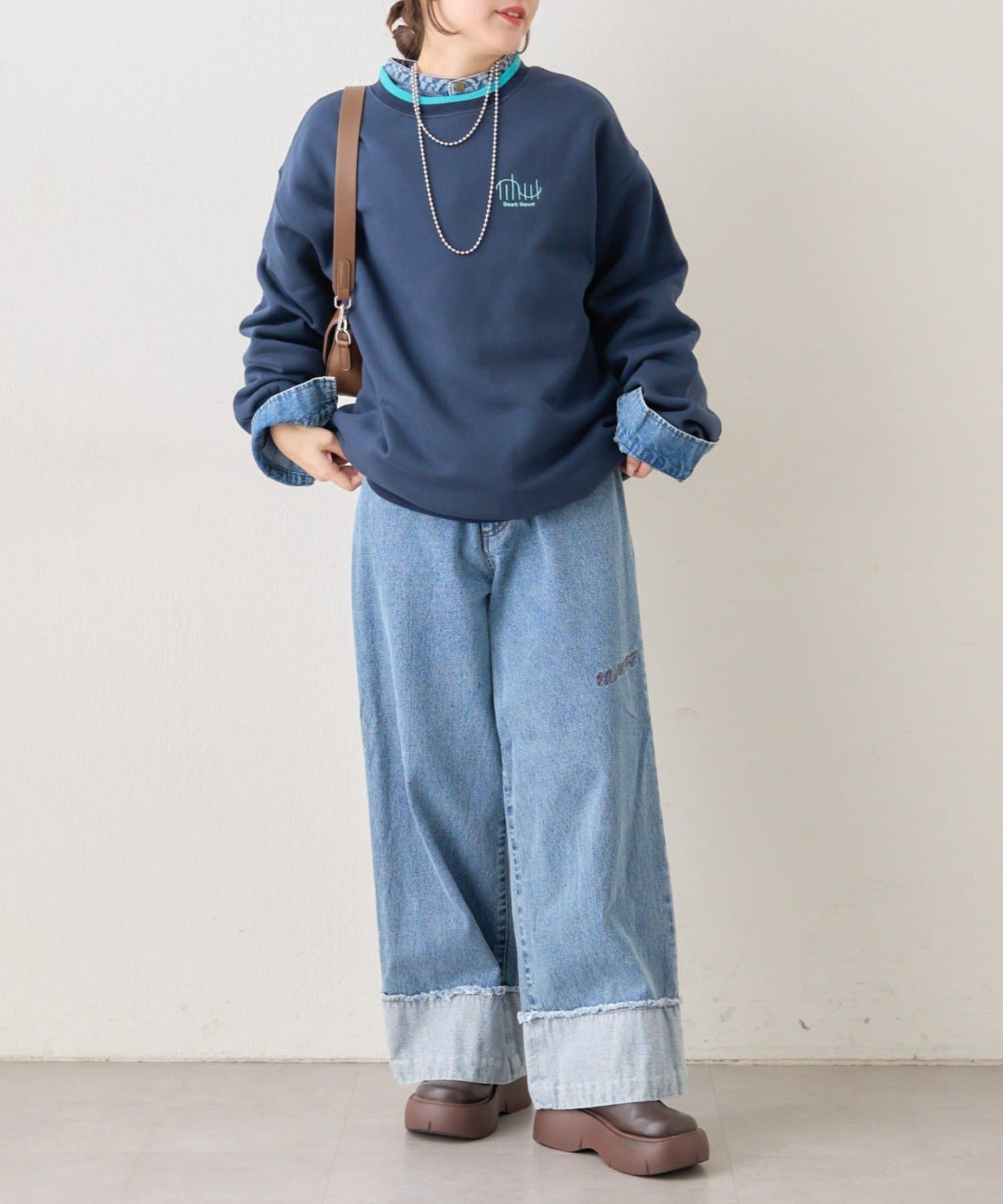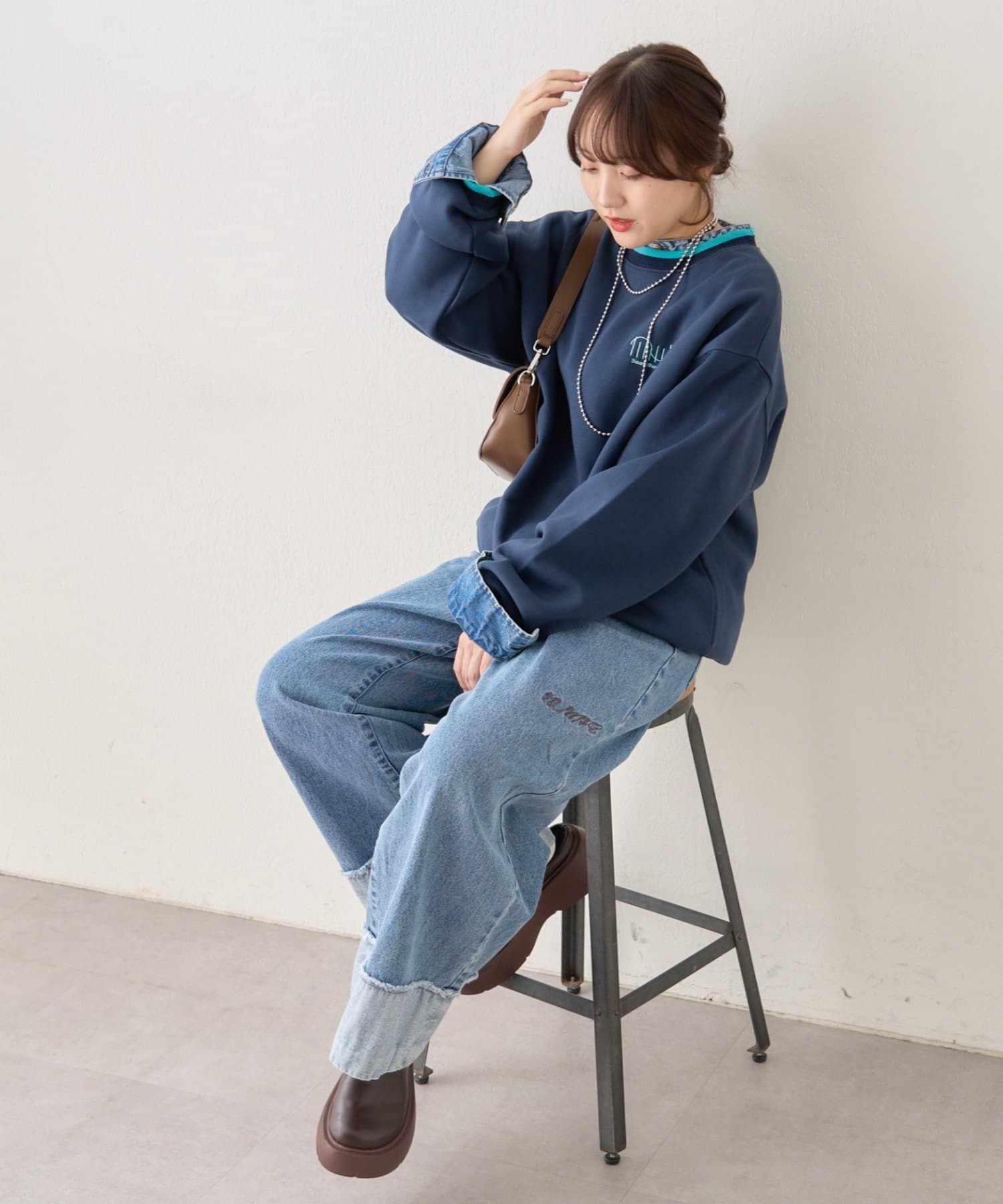 Remind me and forever(リマインドミーアンドフォーエバー) 【NUNIFE】ラインリブ胸刺繍スウェット【裏起毛】