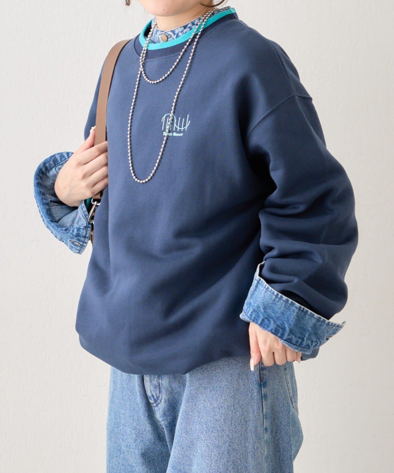 • Remind me and forever(リマインドミーアンドフォーエバー) 【NUNIFE】ラインリブ胸刺繍スウェット【裏起毛】