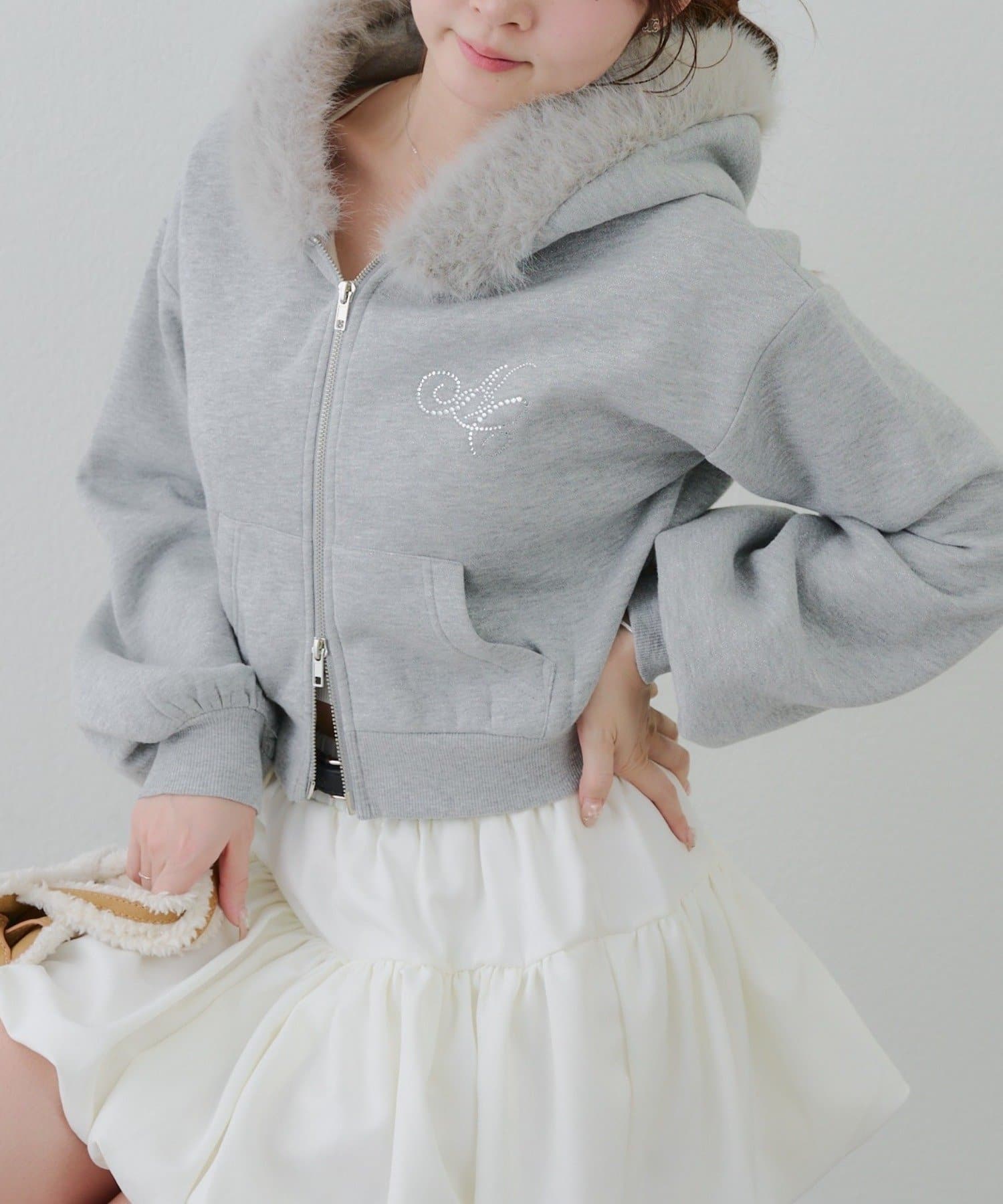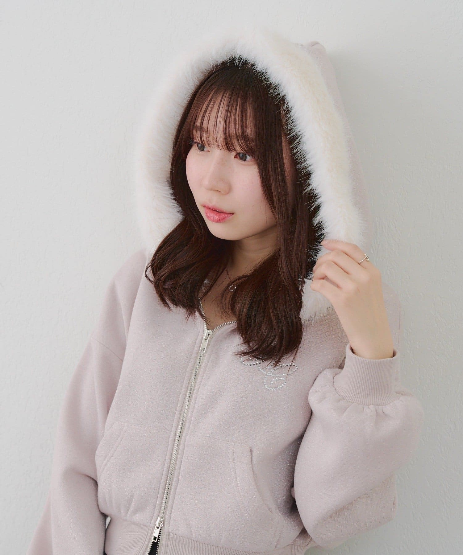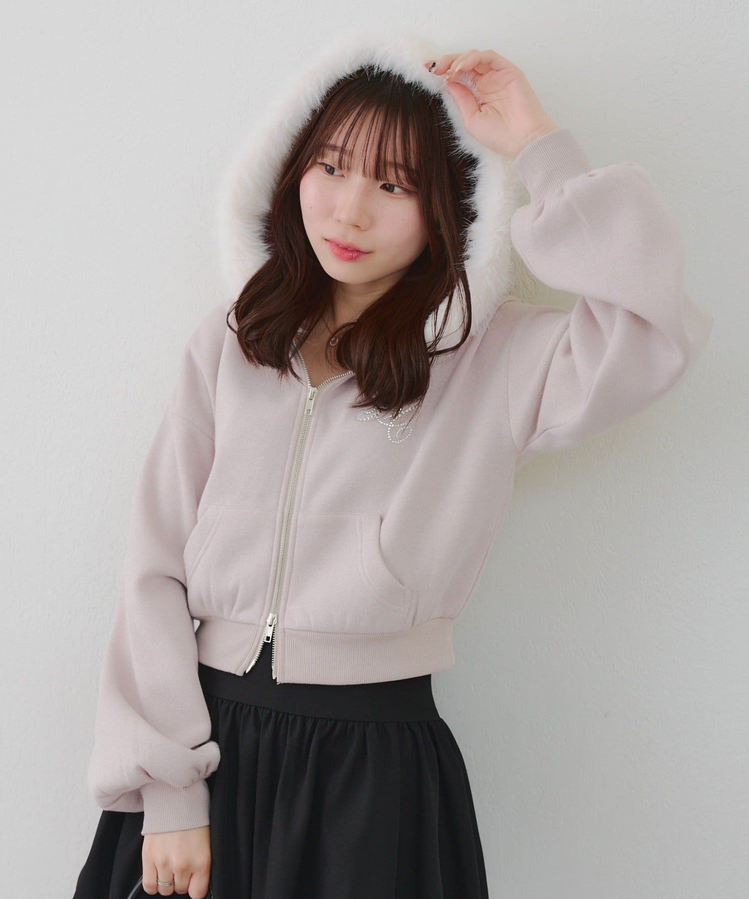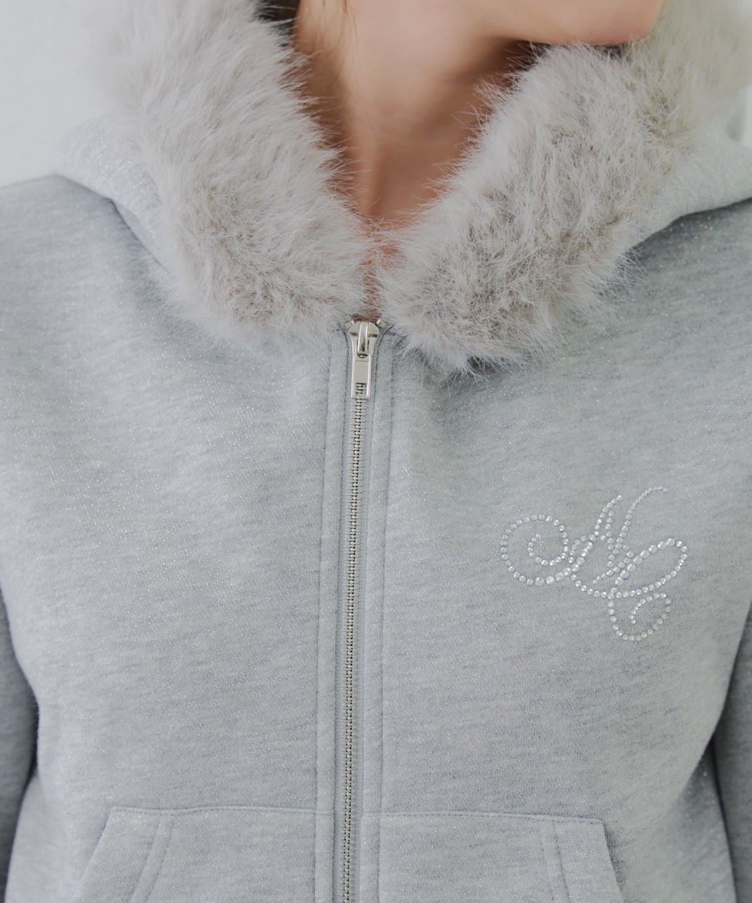 【SETUP対応アイテム】ラメロゴ裏起毛ファーパーカー