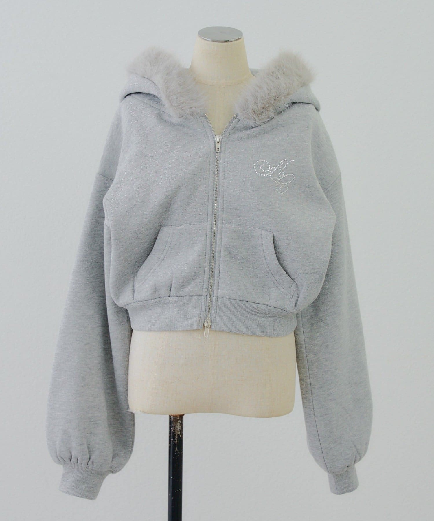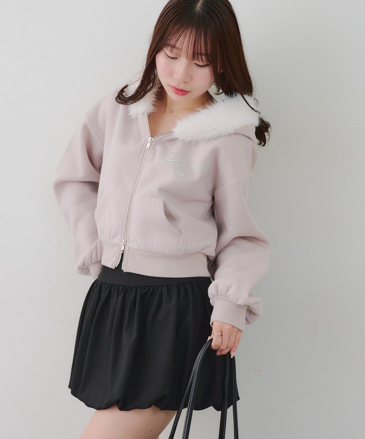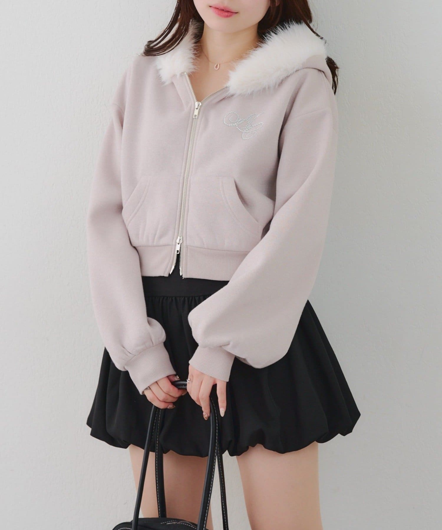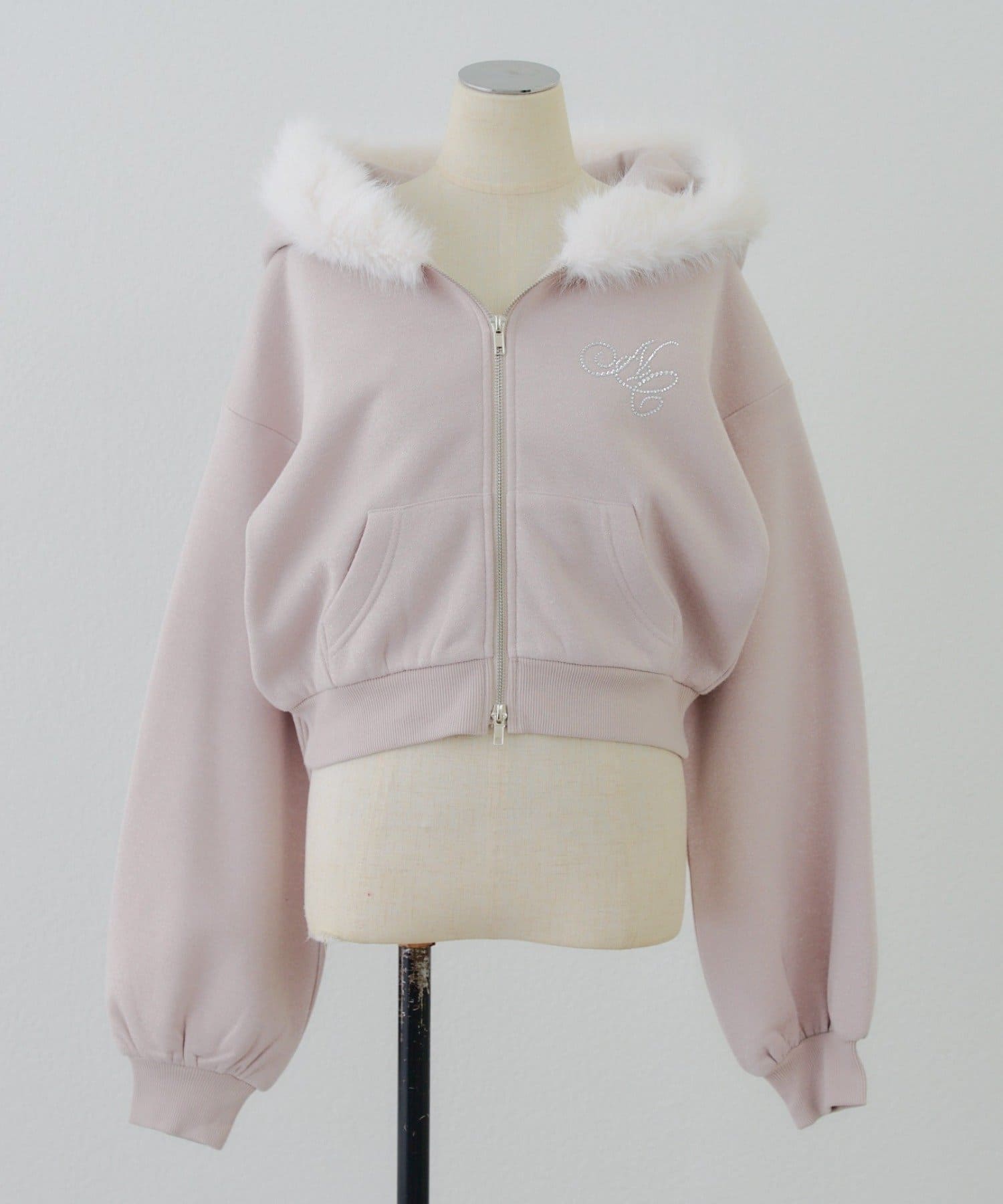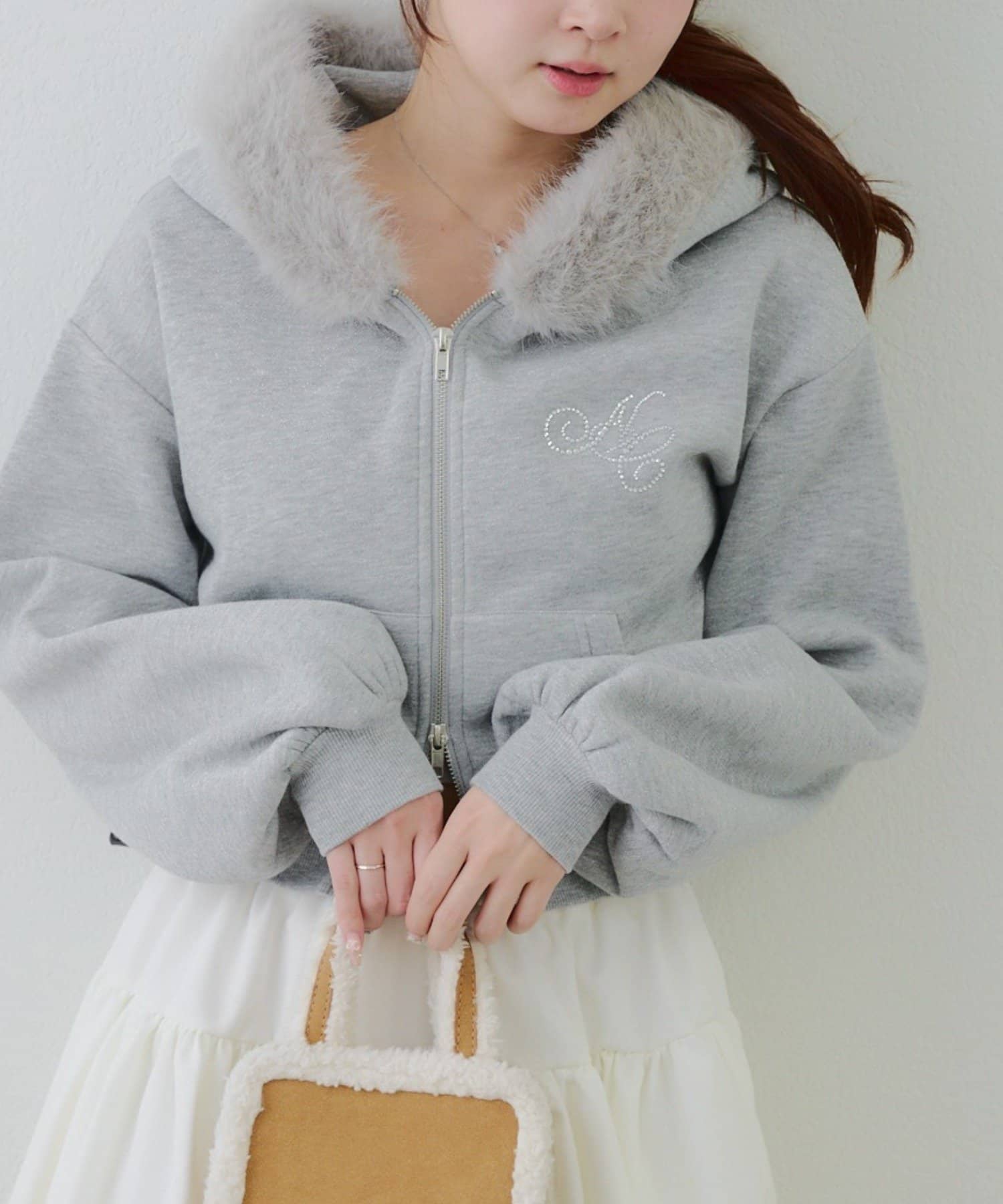 【SETUP対応アイテム】ラメロゴ裏起毛ファーパーカー