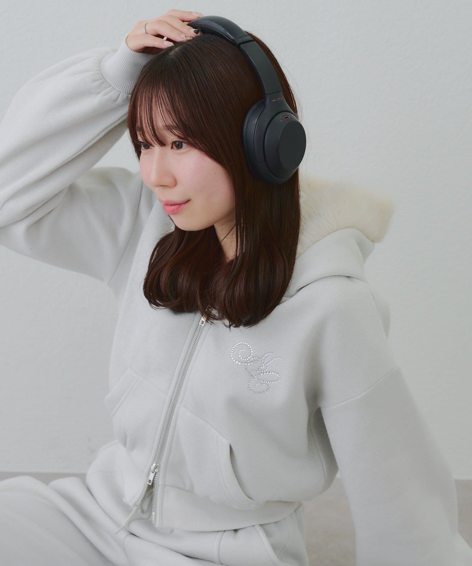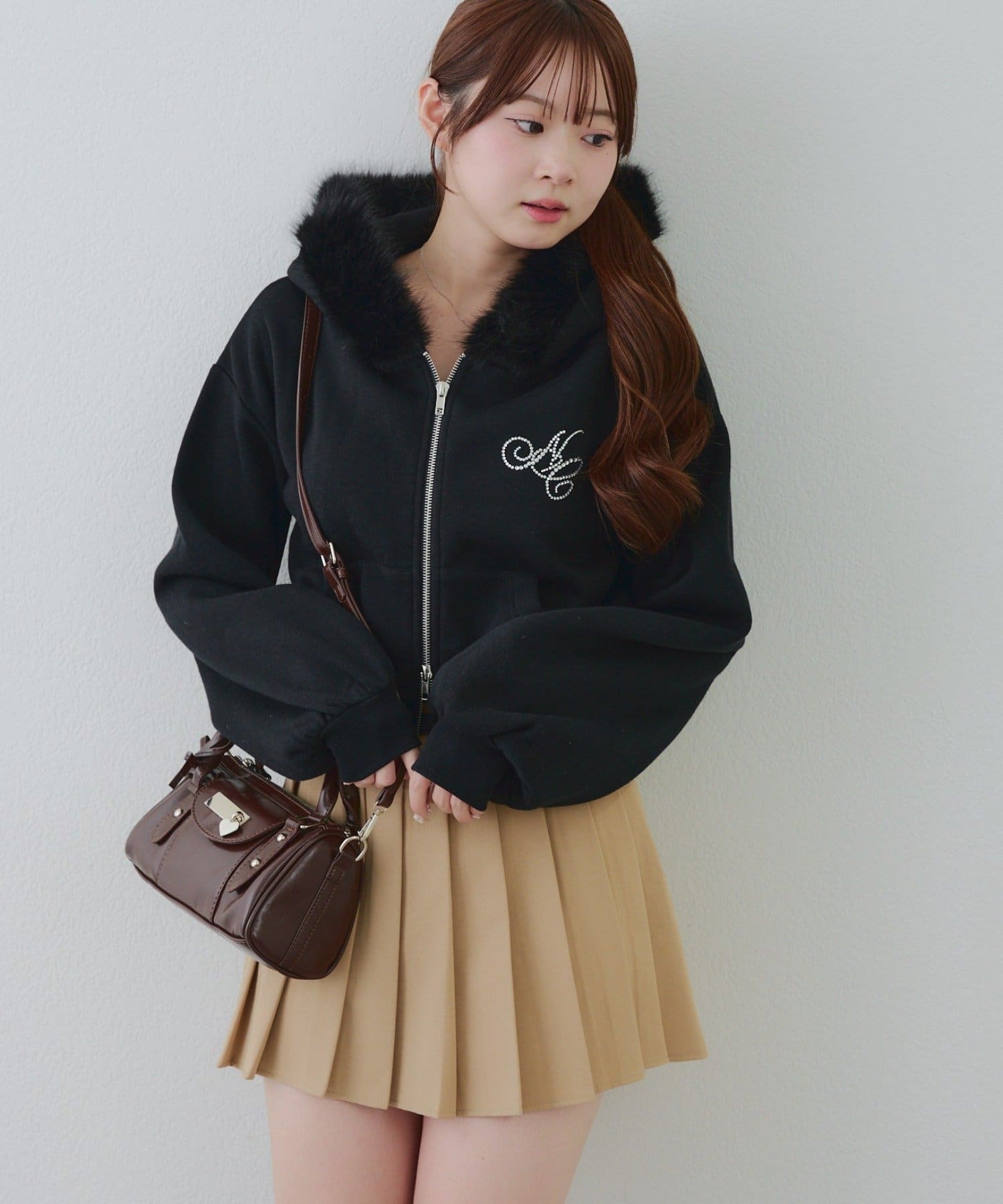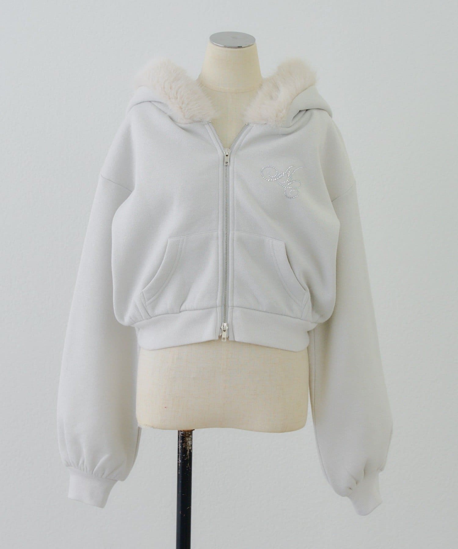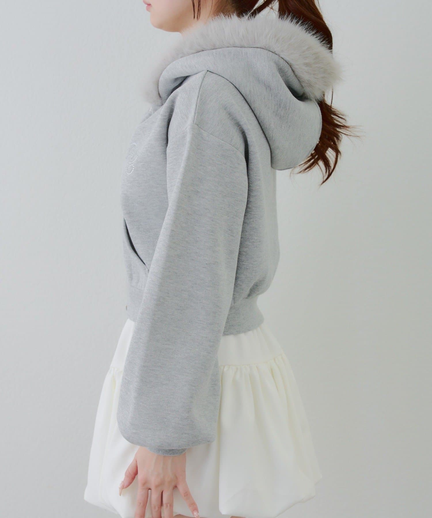 【SETUP対応アイテム】ラメロゴ裏起毛ファーパーカー
