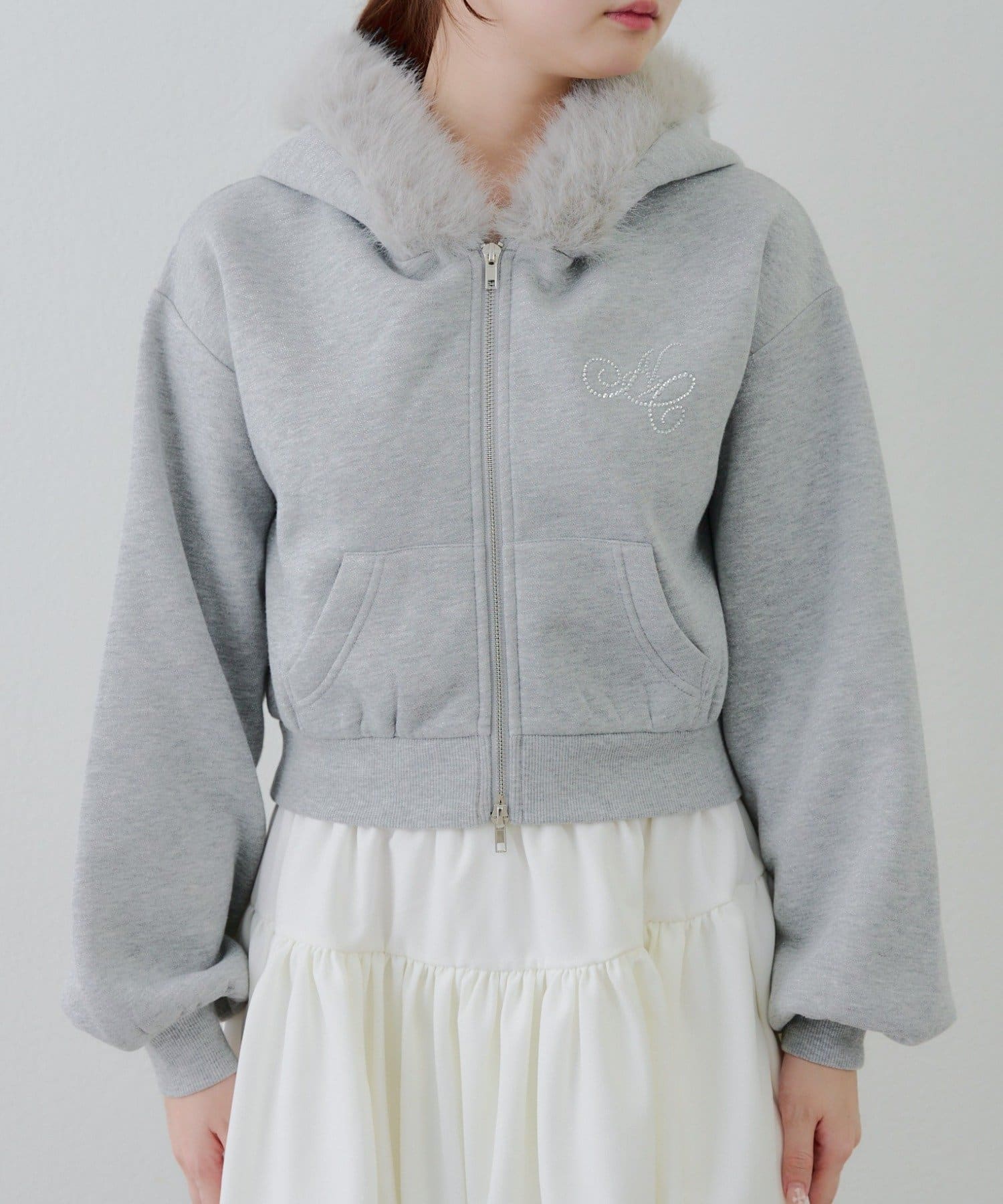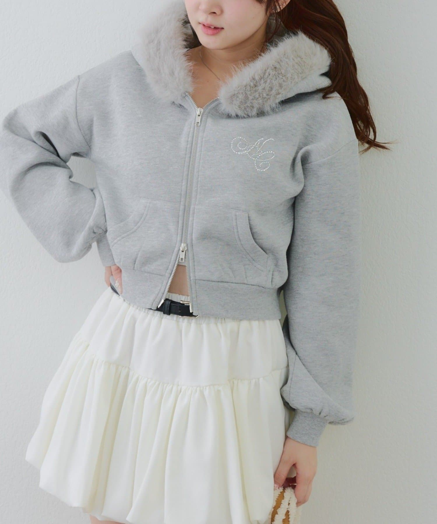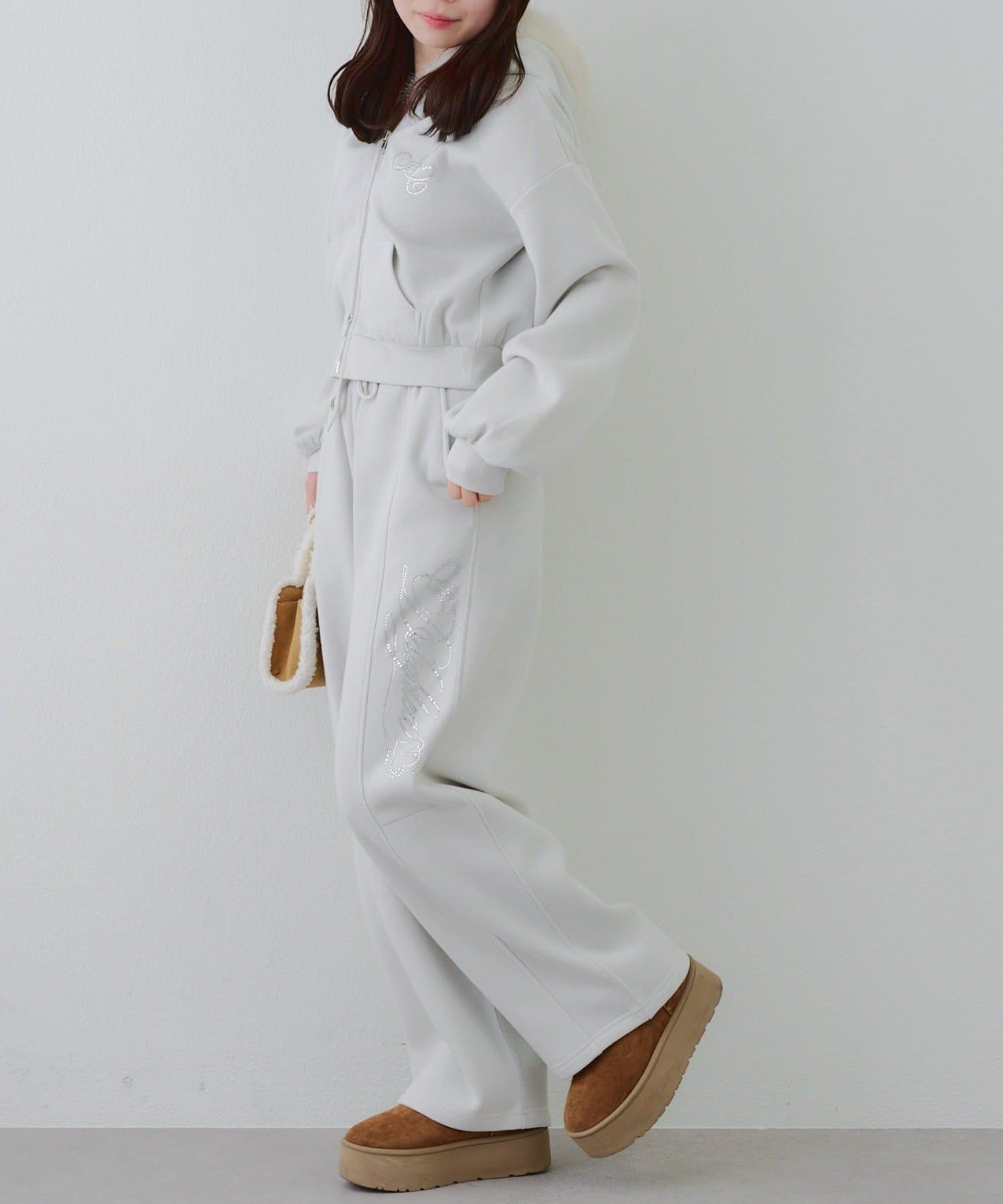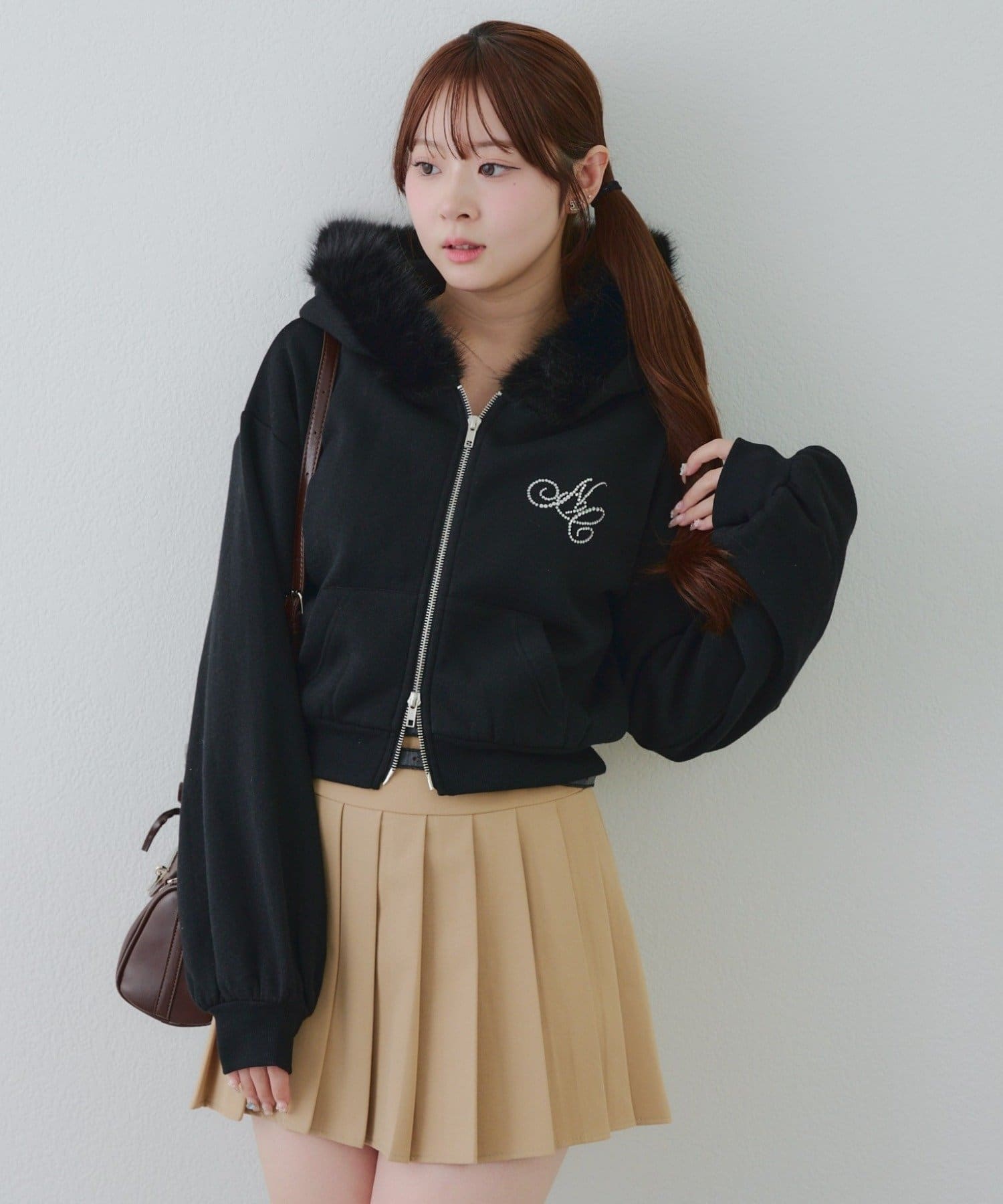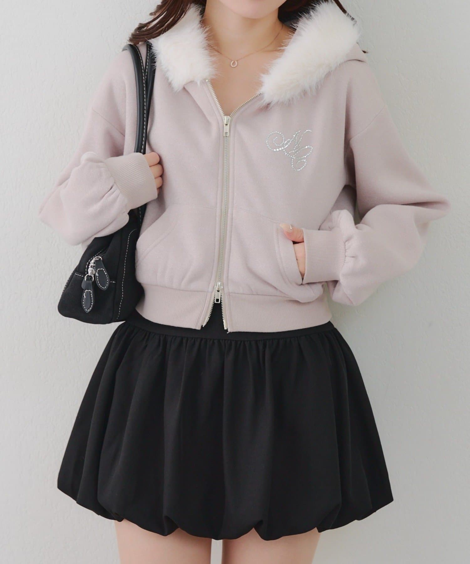 【SETUP対応アイテム】ラメロゴ裏起毛ファーパーカー