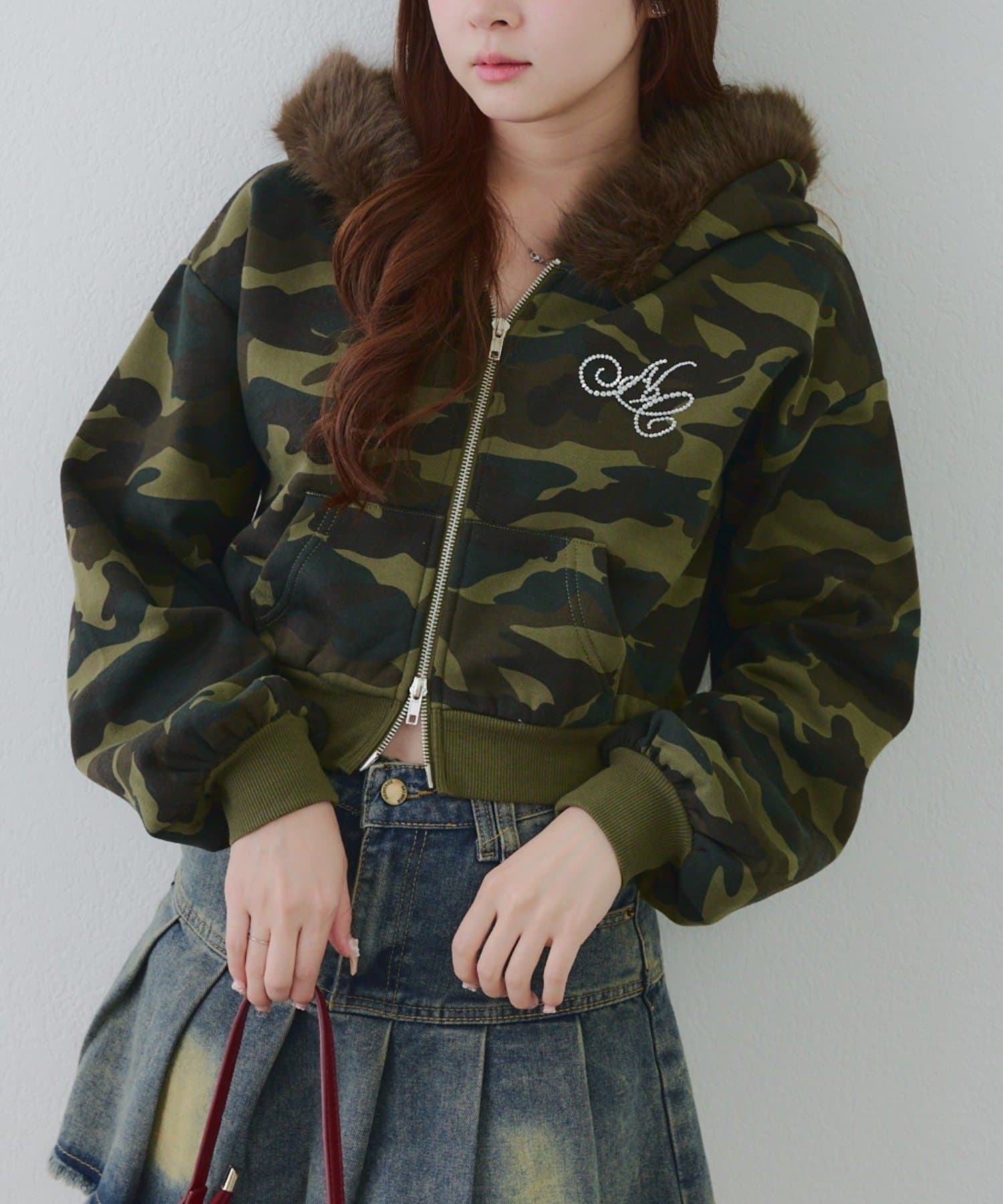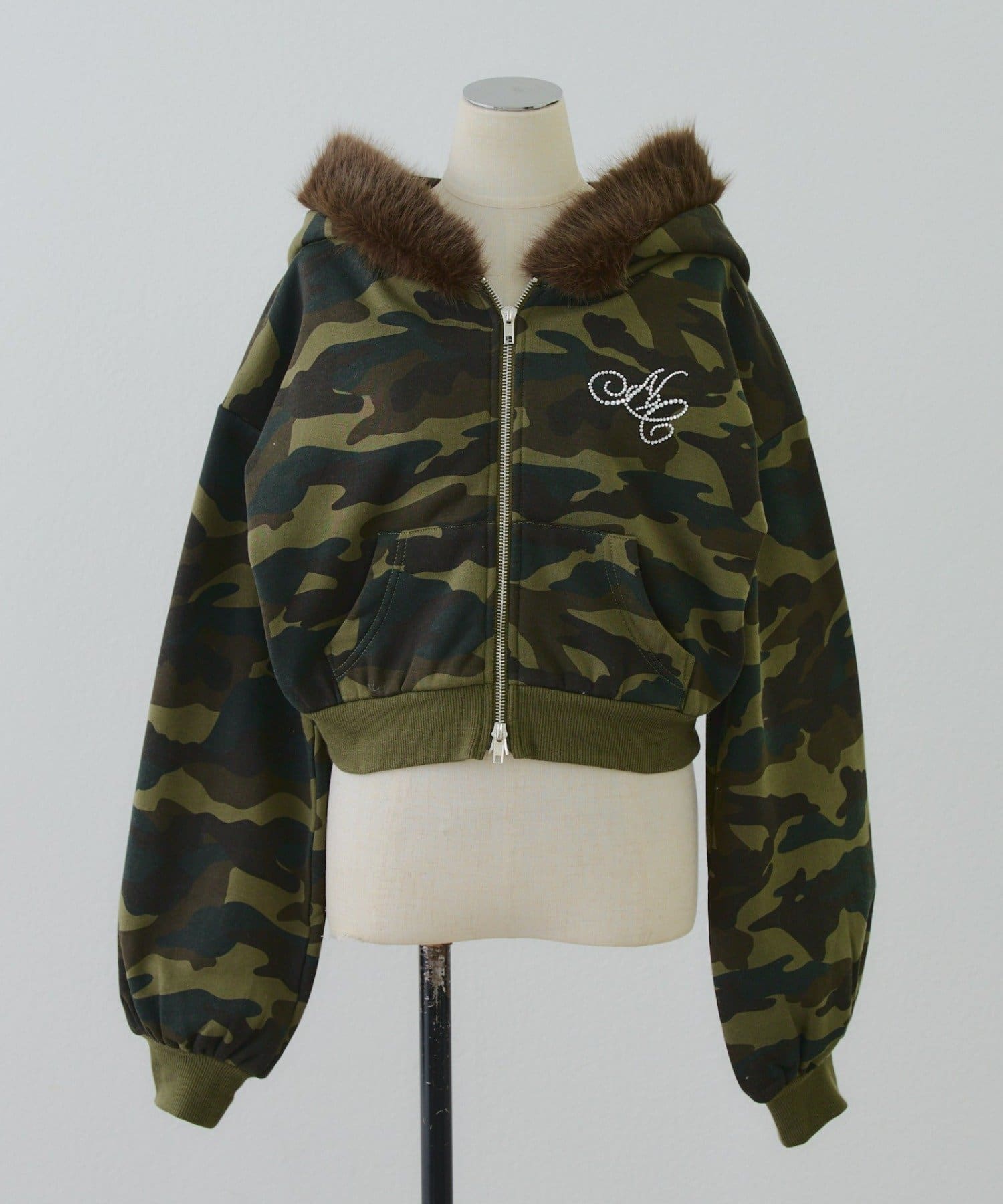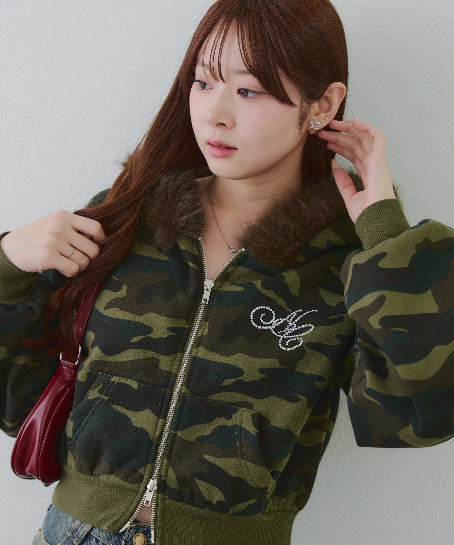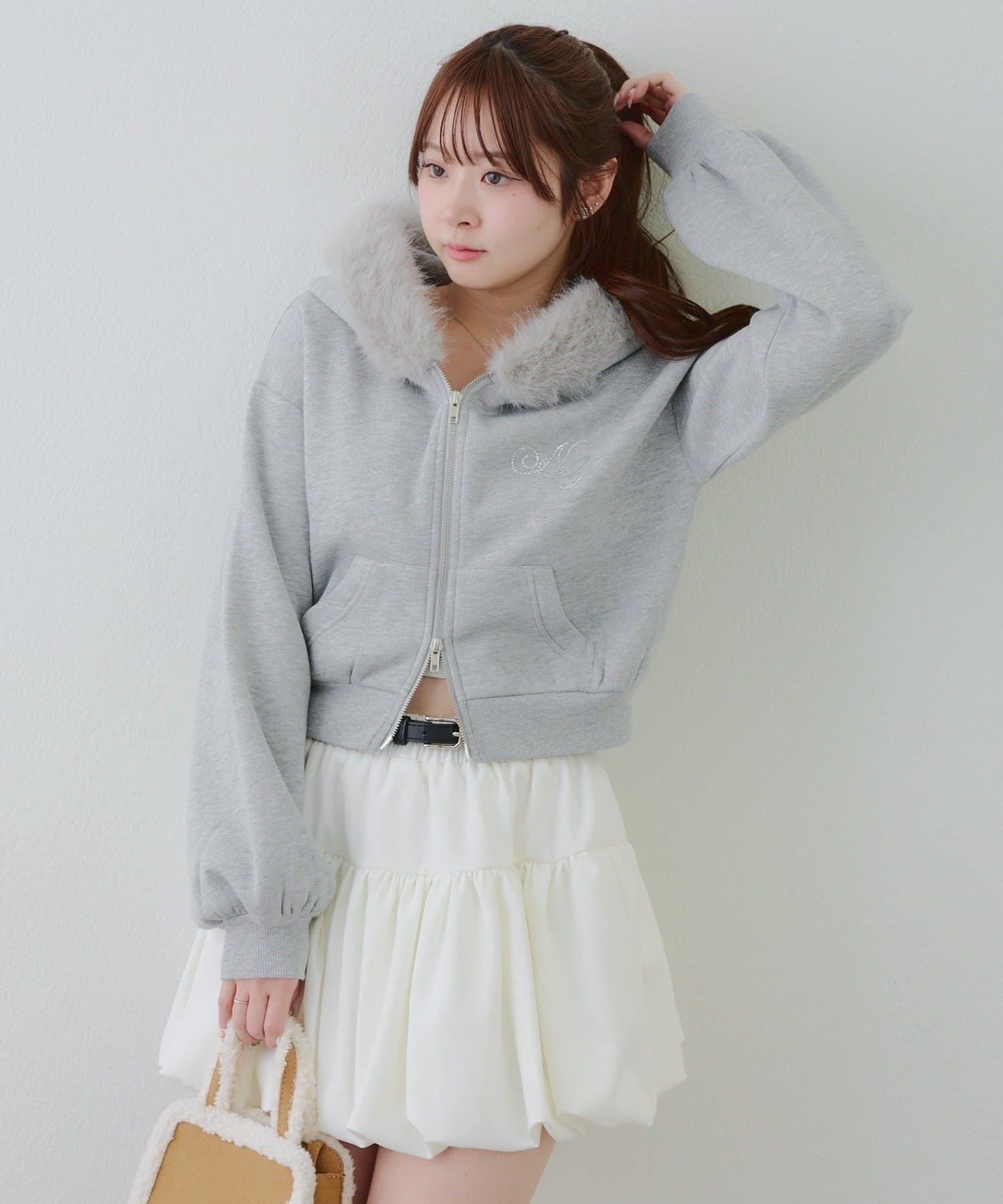 【SETUP対応アイテム】ラメロゴ裏起毛ファーパーカー