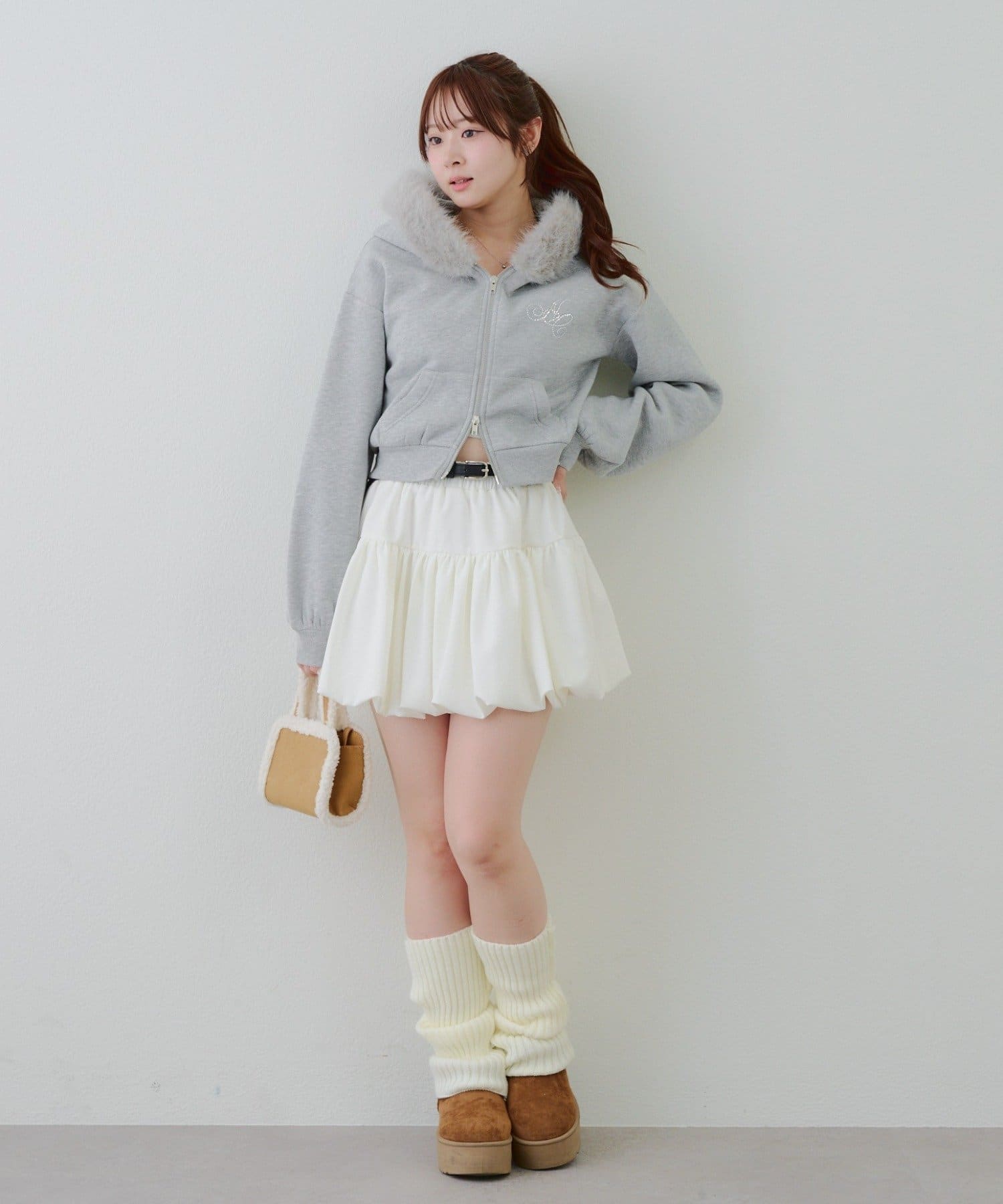 ・短丈シルエットなのでボリュームあるワイドパンツやバルーンスカートとも相性抜群です!