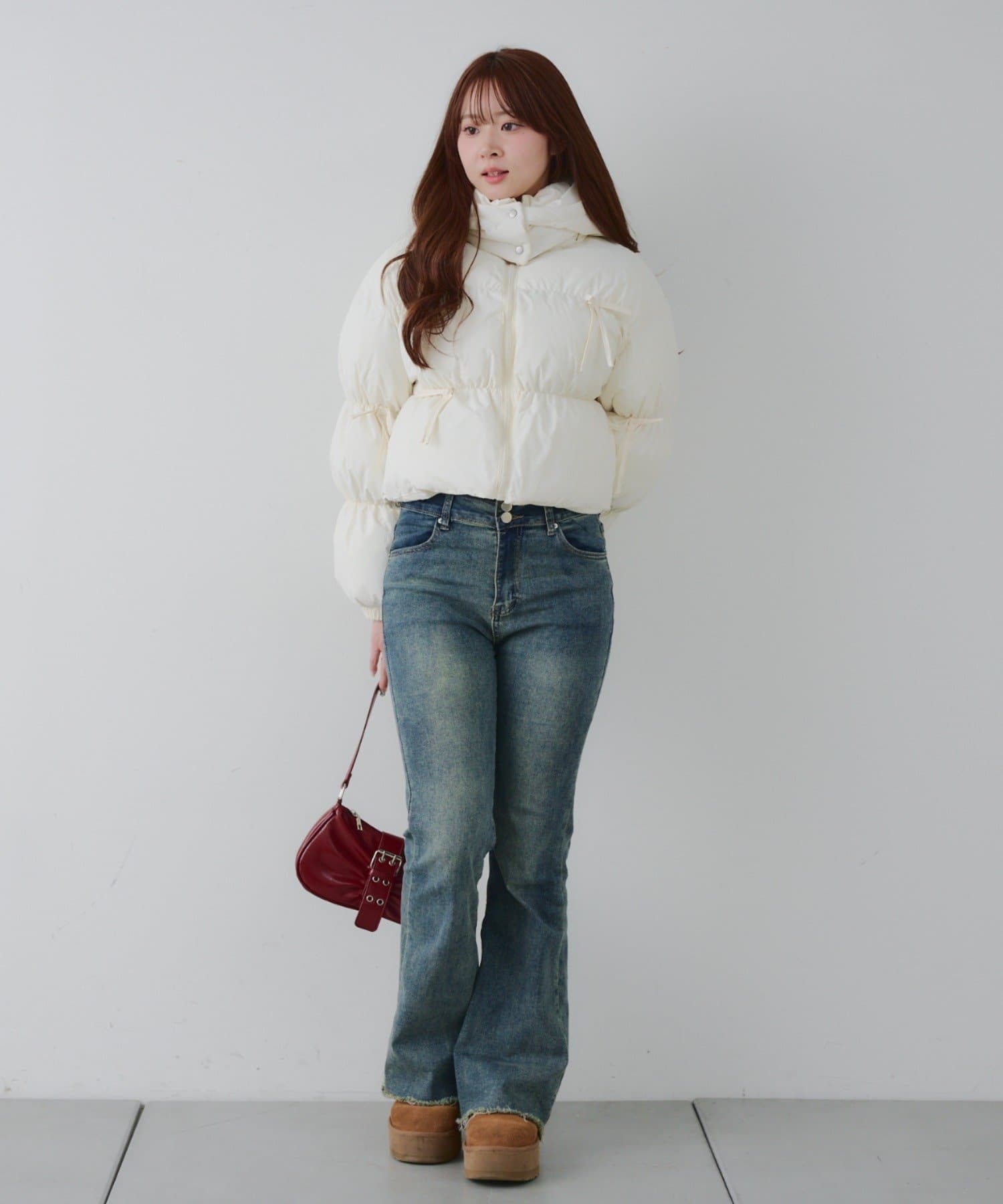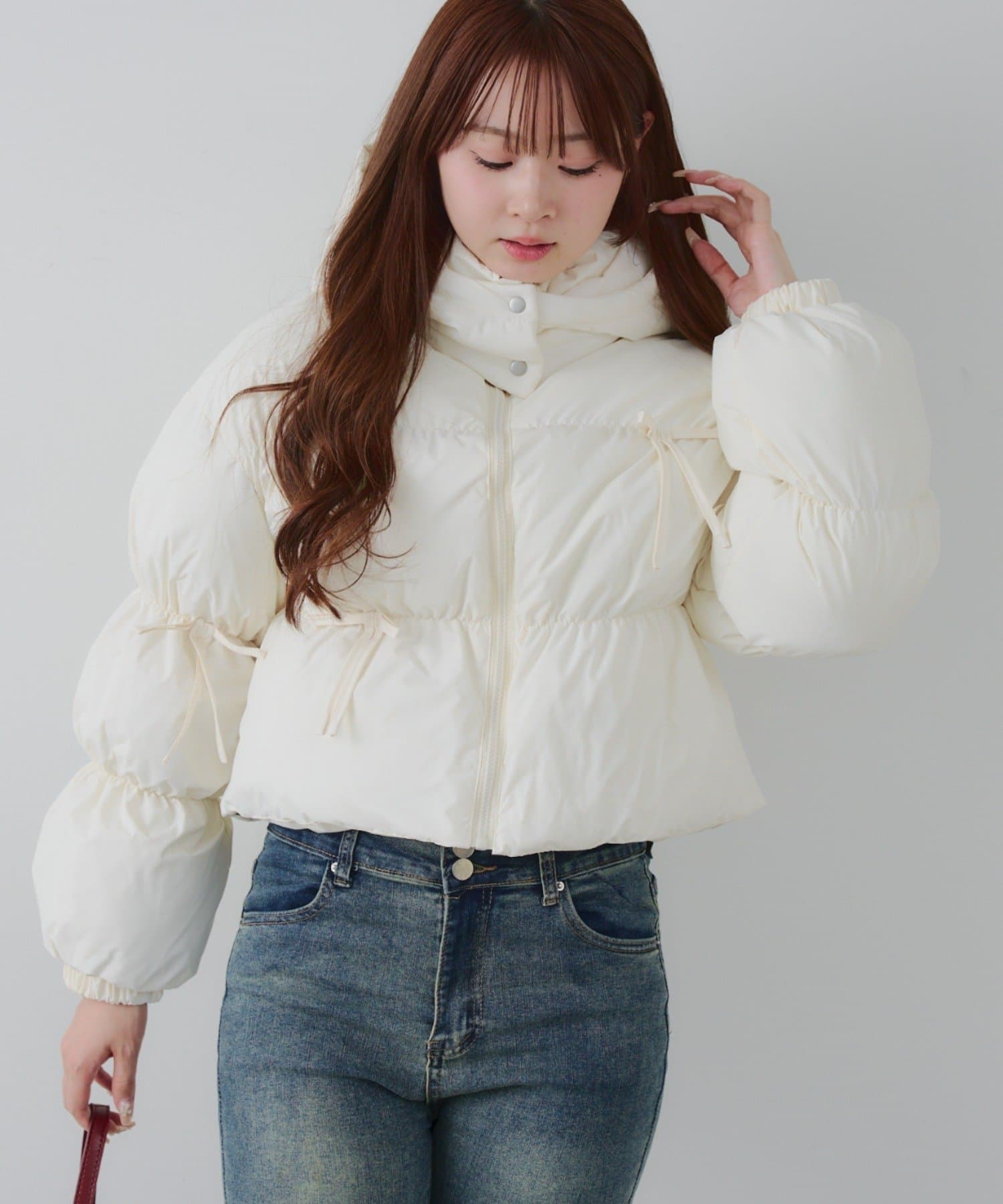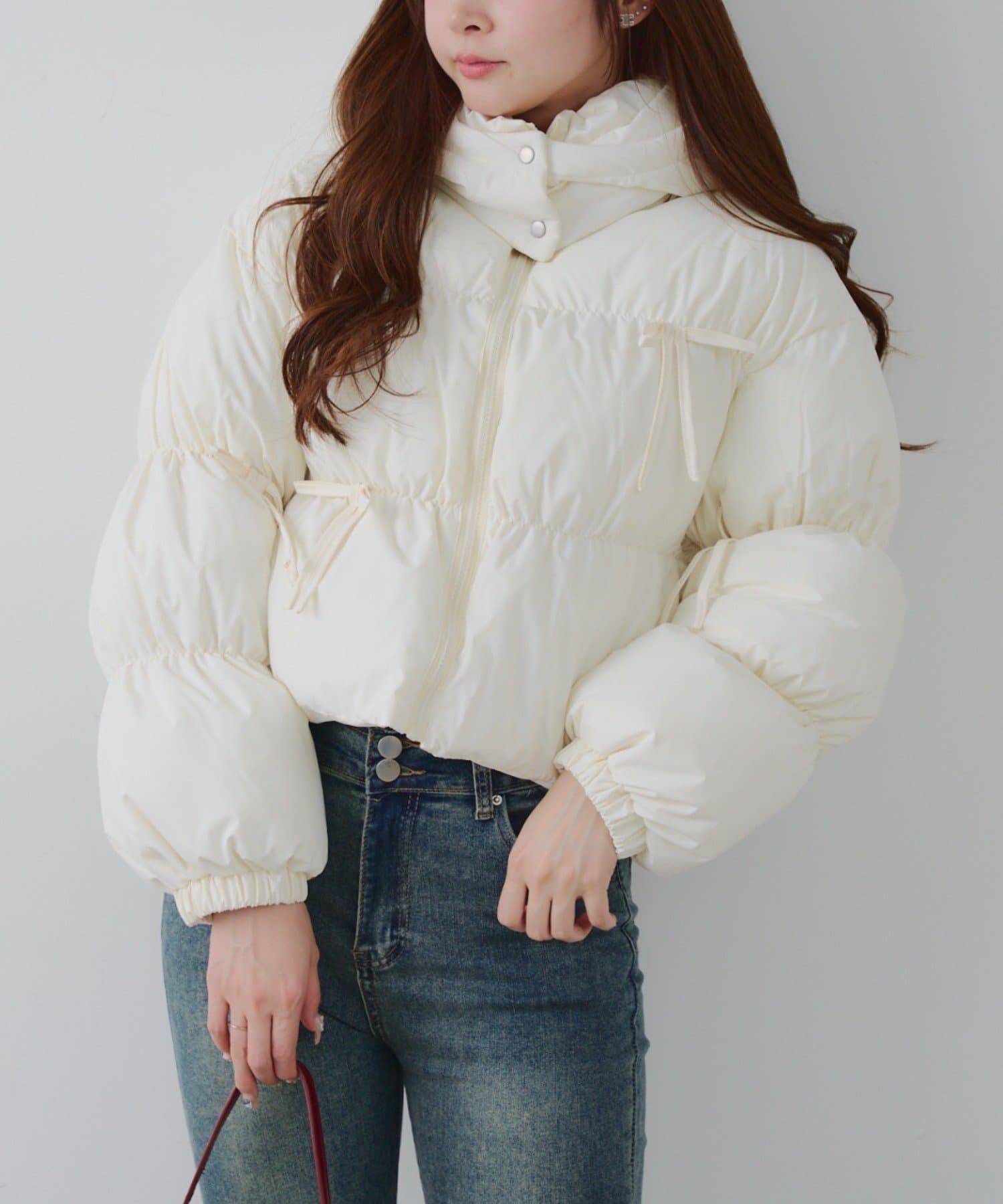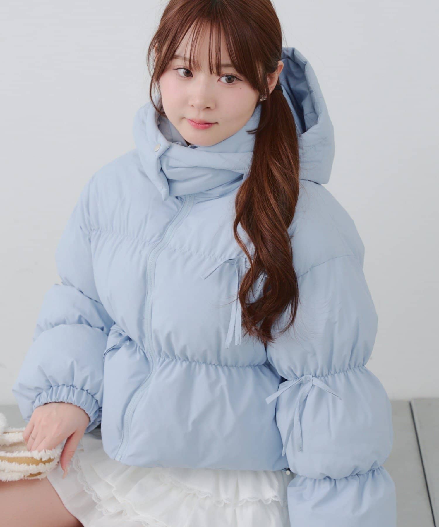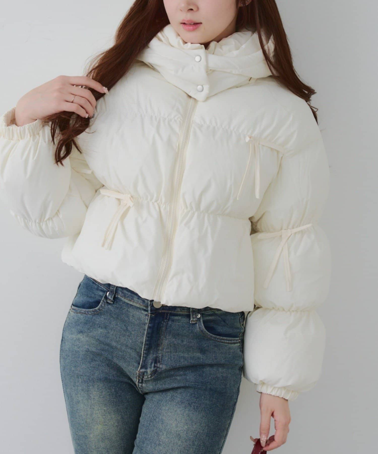 ・真冬でも可愛く防寒♪ボリュームのあるリボン中綿ブルゾン