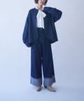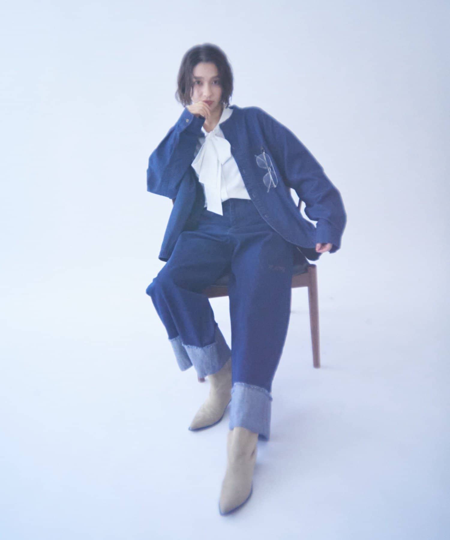 ・デニムパンツとのセットアップ風コーデや、レオパード柄やチェック柄のボトムスと合わせて秋冬ムードを高めても◎